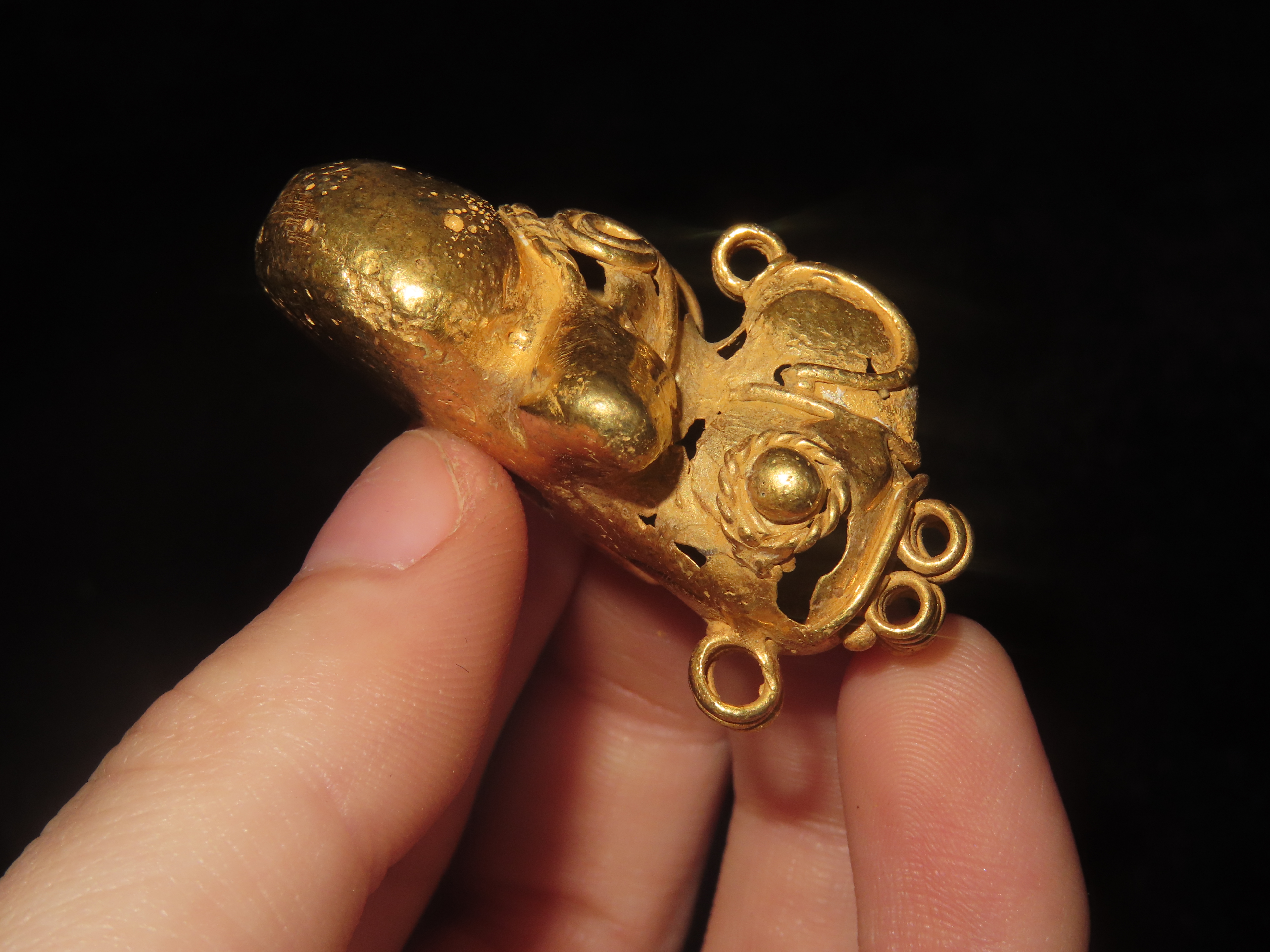 1 3/4″ Pre-Columbian Tairona Tumbaga Flying Parrot, Pendant Made from Gold/Copper Alloy