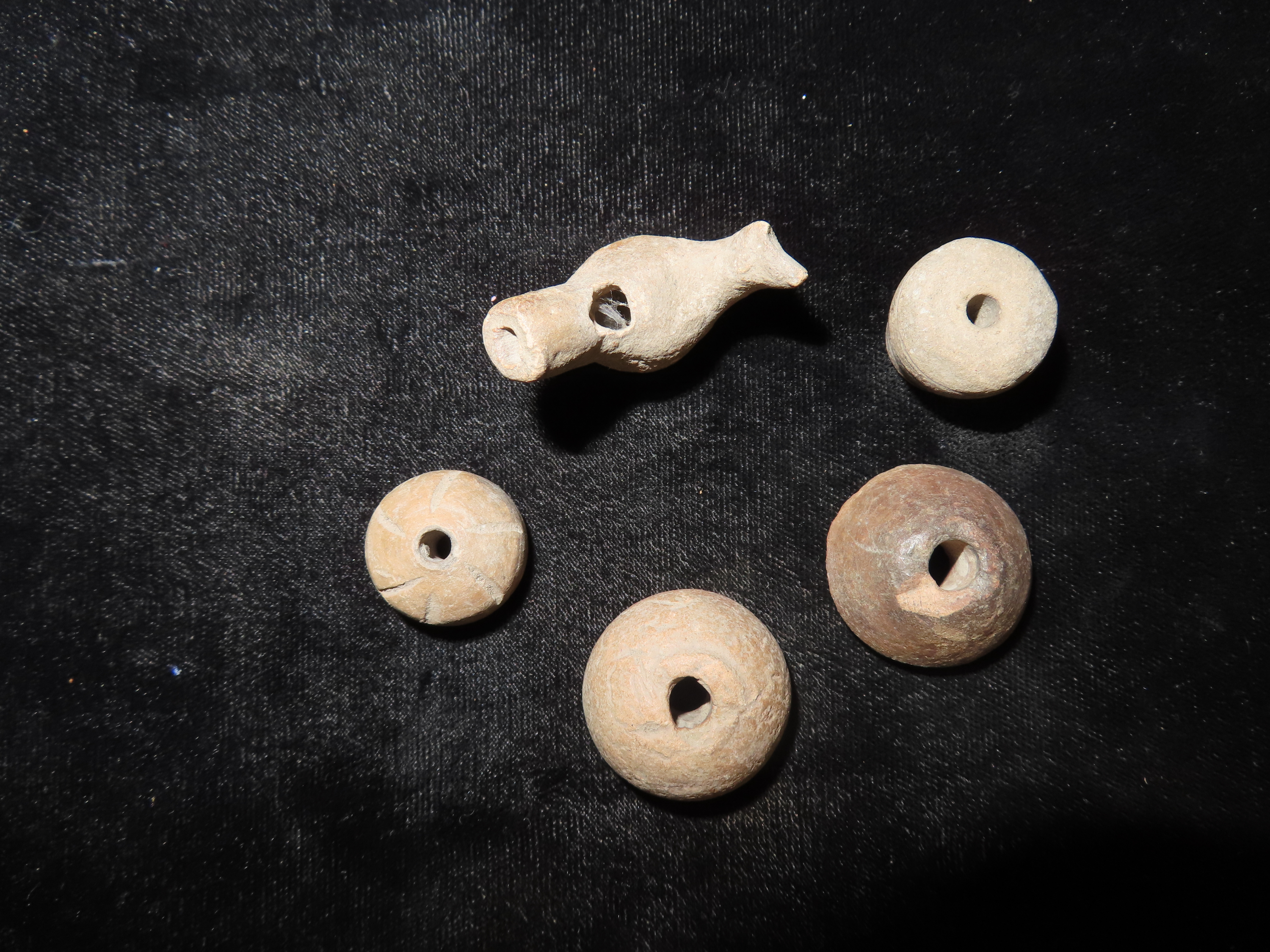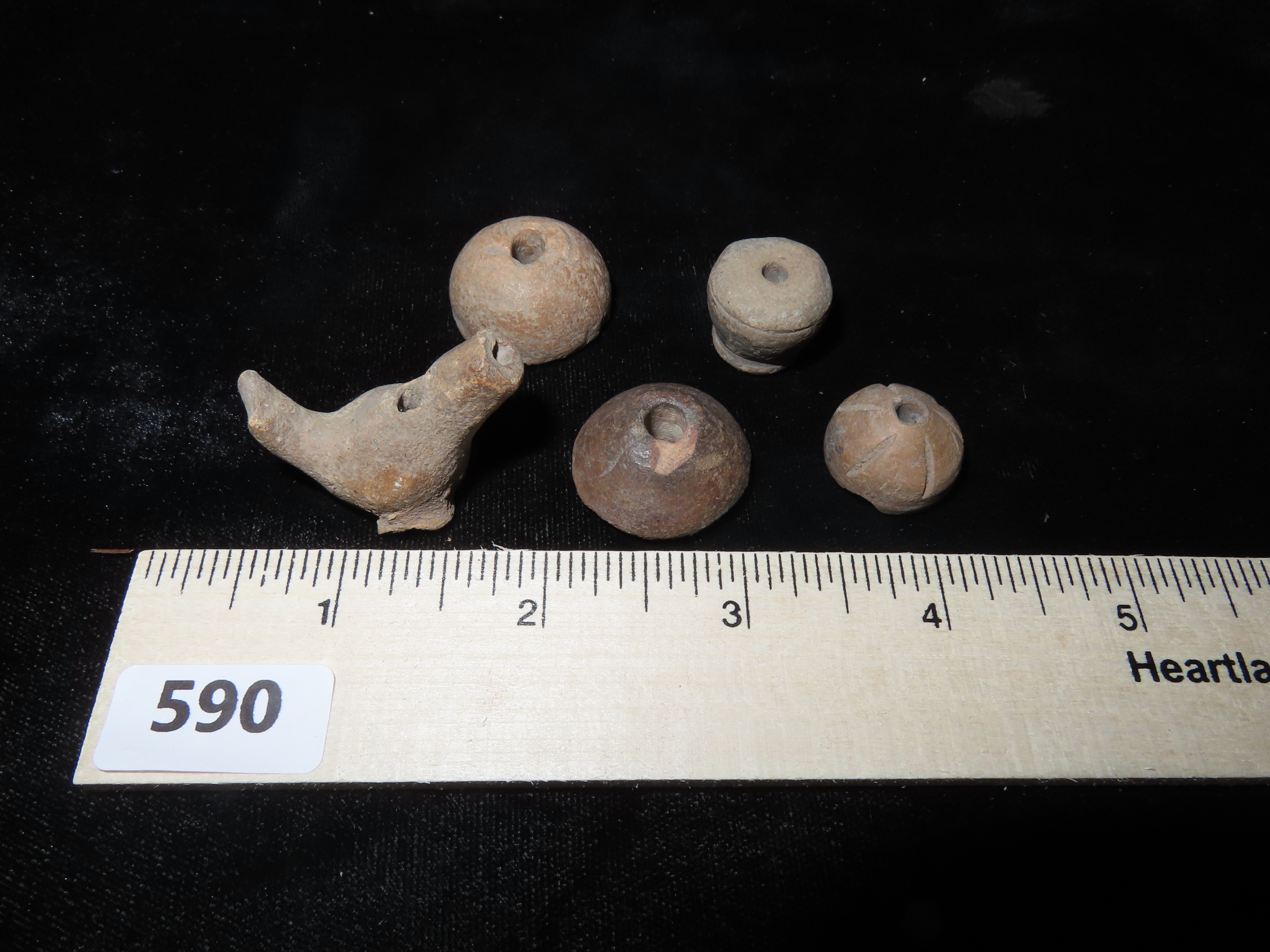Group of 5 Pre-Columbian Pottery Effigy Beads-Maya Culture, 2000BC-1697AD, found in Belize