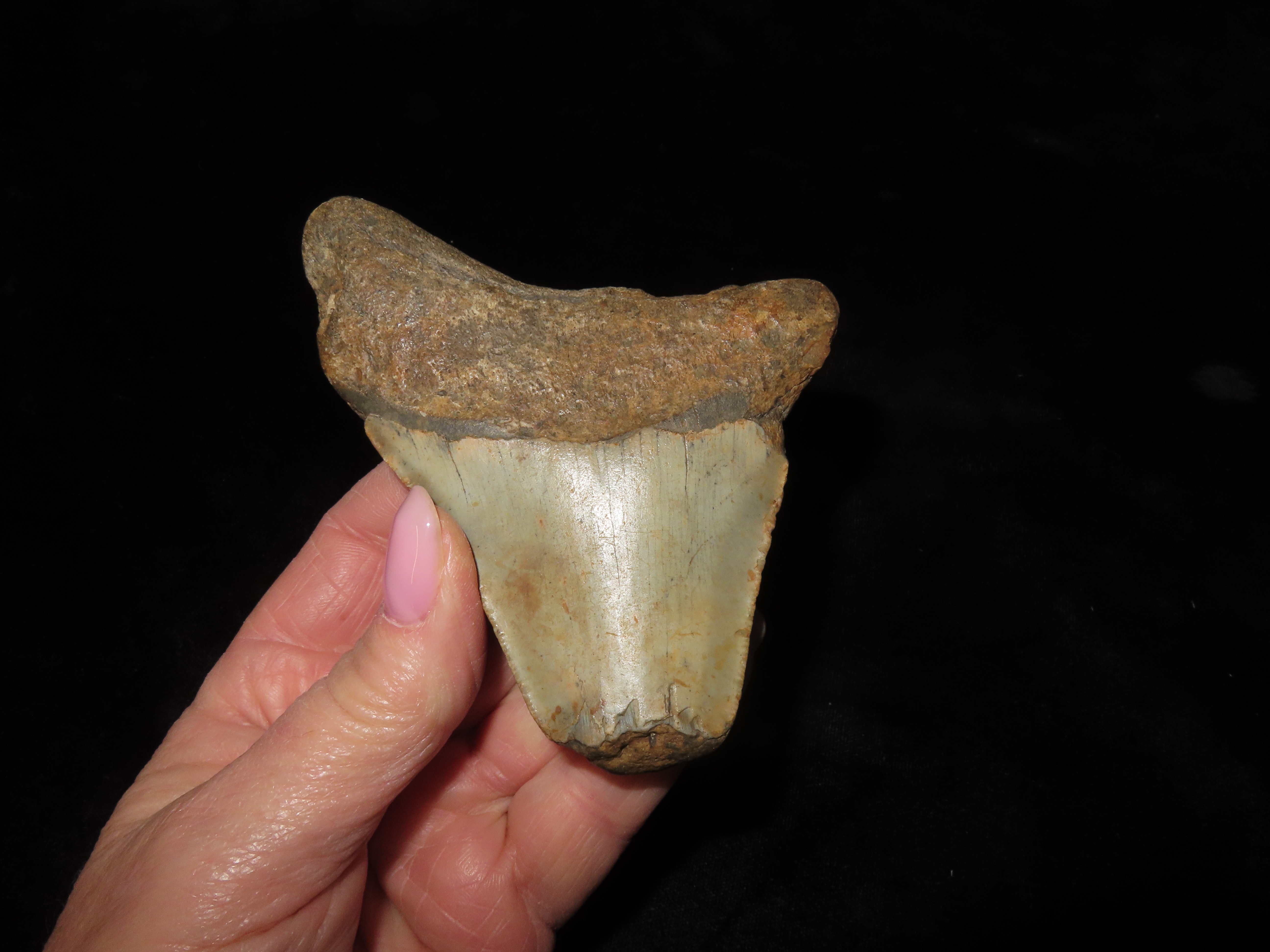 4 1/8″ Large Megalodon Shark Tooth Fossil Found In South Carolina