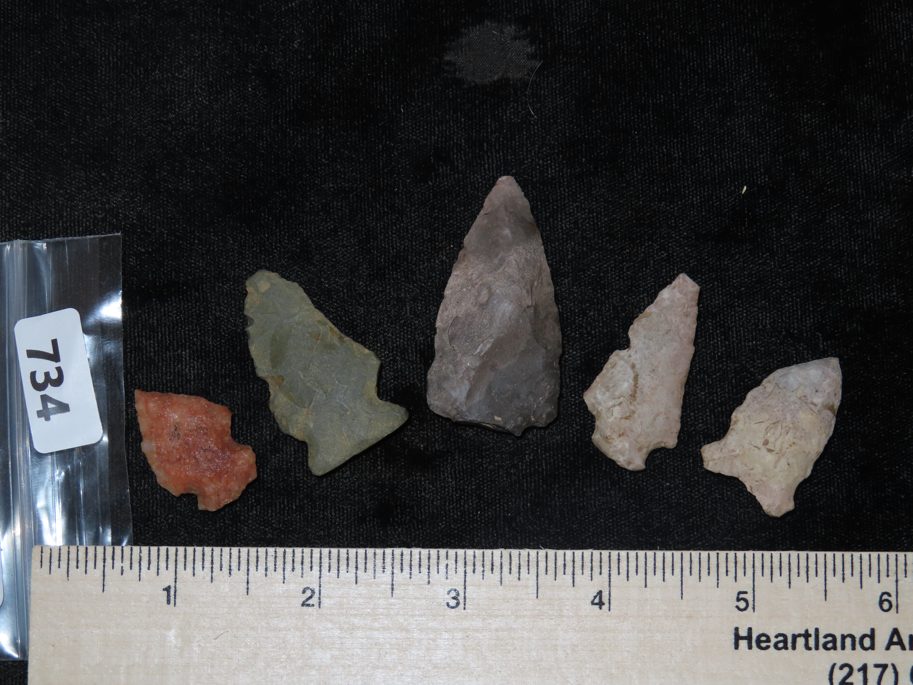 Lot of 5 Midwest Arrowheads, Ex Jeff Thompson Collection
