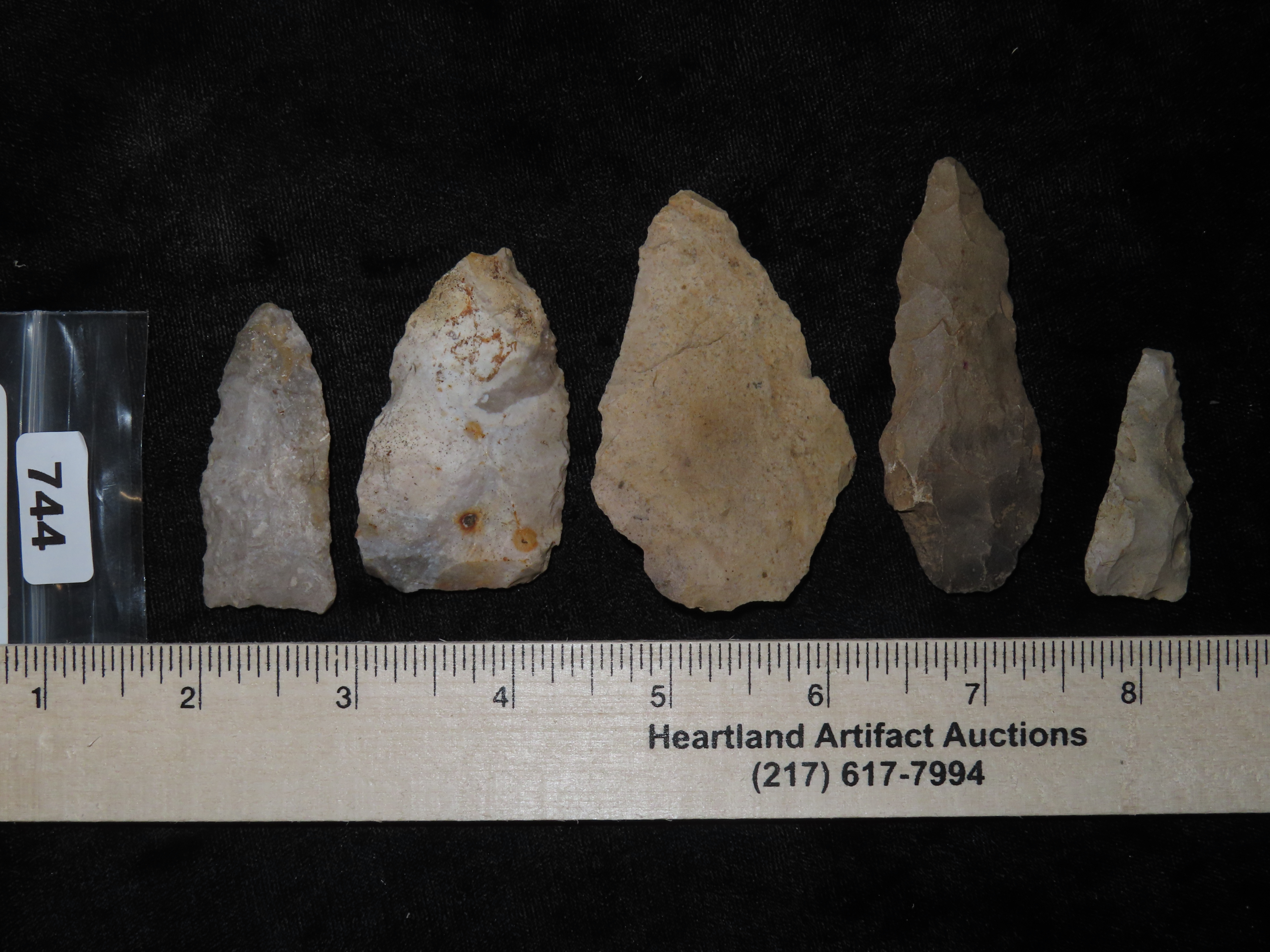 Lot of 5 Midwest Arrowheads, Ex Jeff Thompson Collection