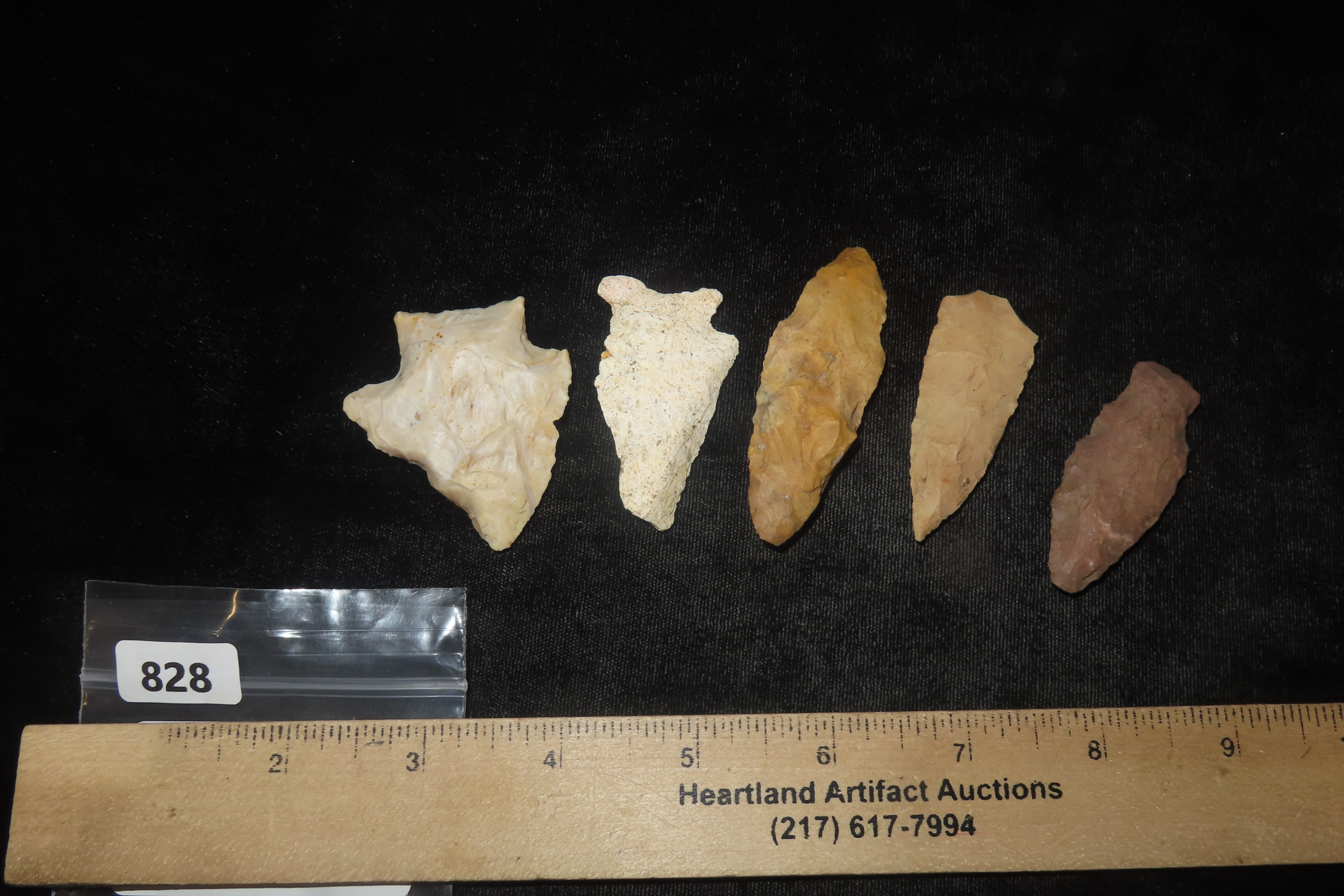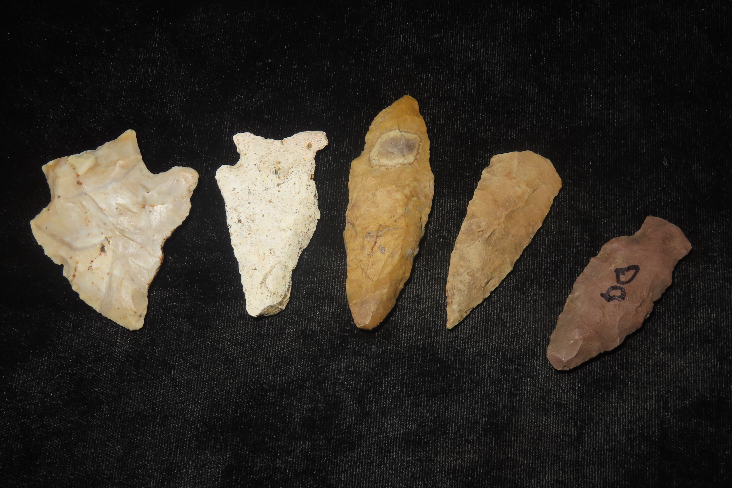 Lot of 5 Midwest Arrowheads, Ex Jeff Thompson Collection