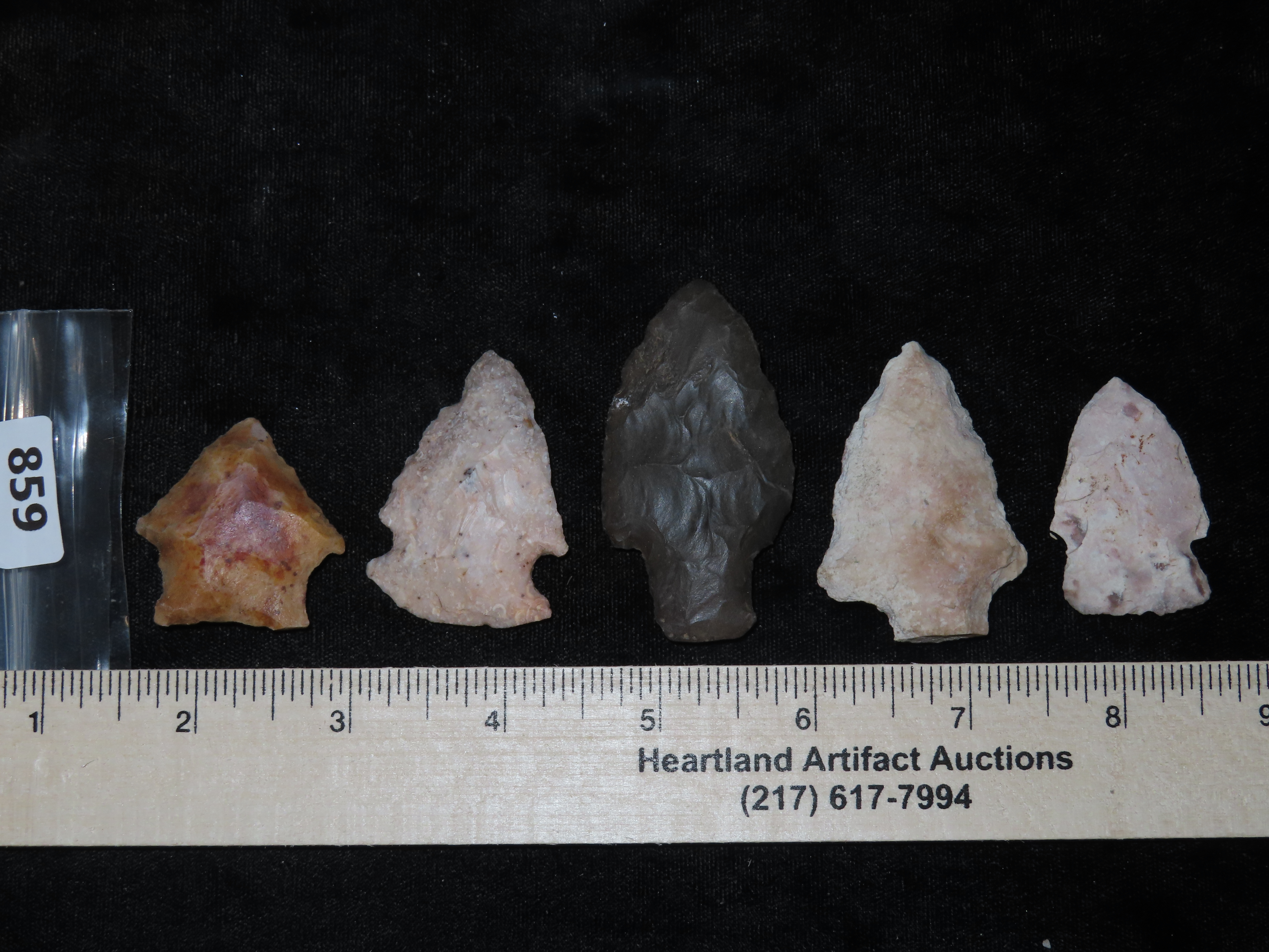 Lot of 5 Midwestern Arrowheads, Ex Jeff Thompson Collection