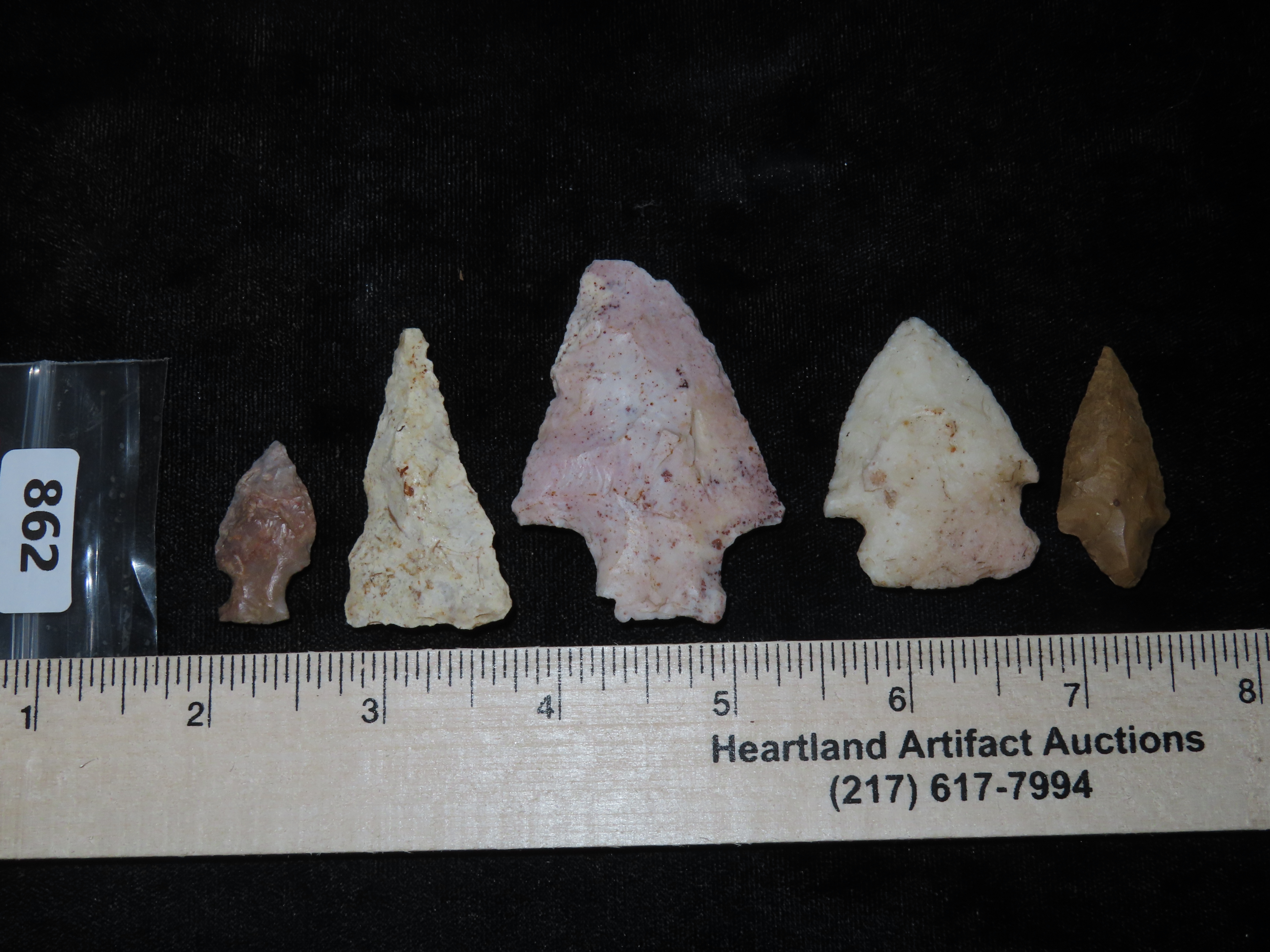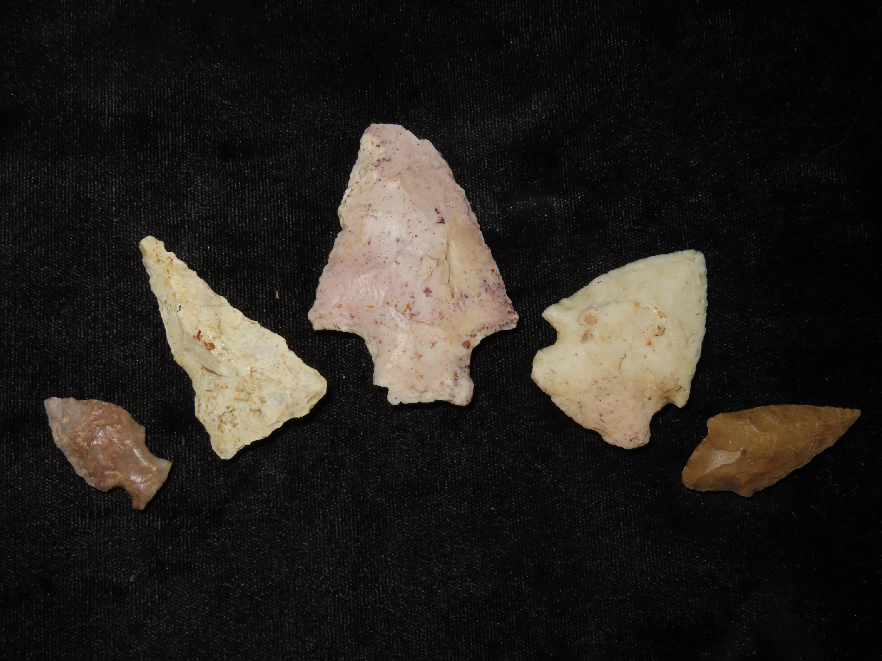 Lot of 5 Midwestern Arrowheads, Ex Jeff Thompson Collection