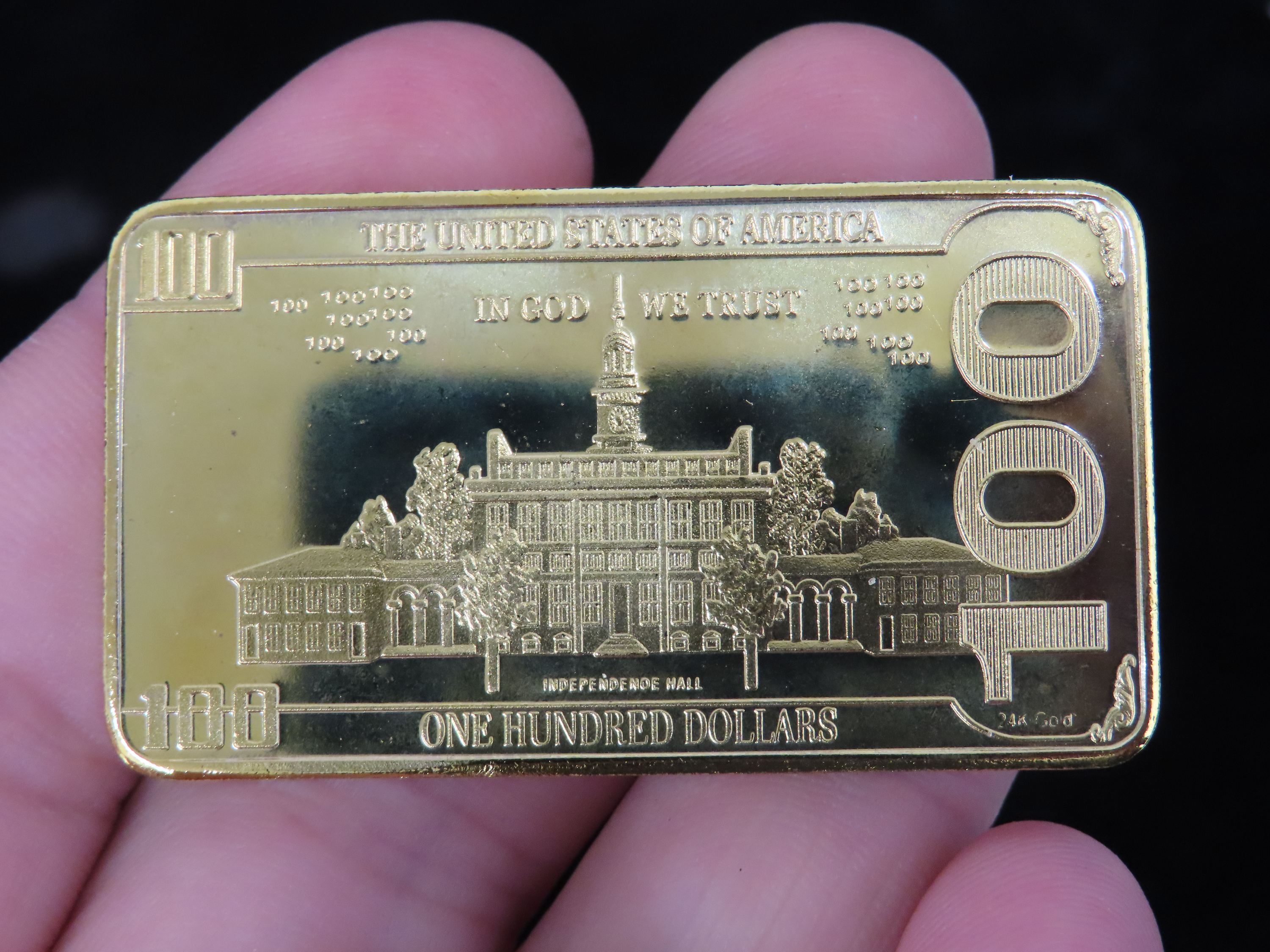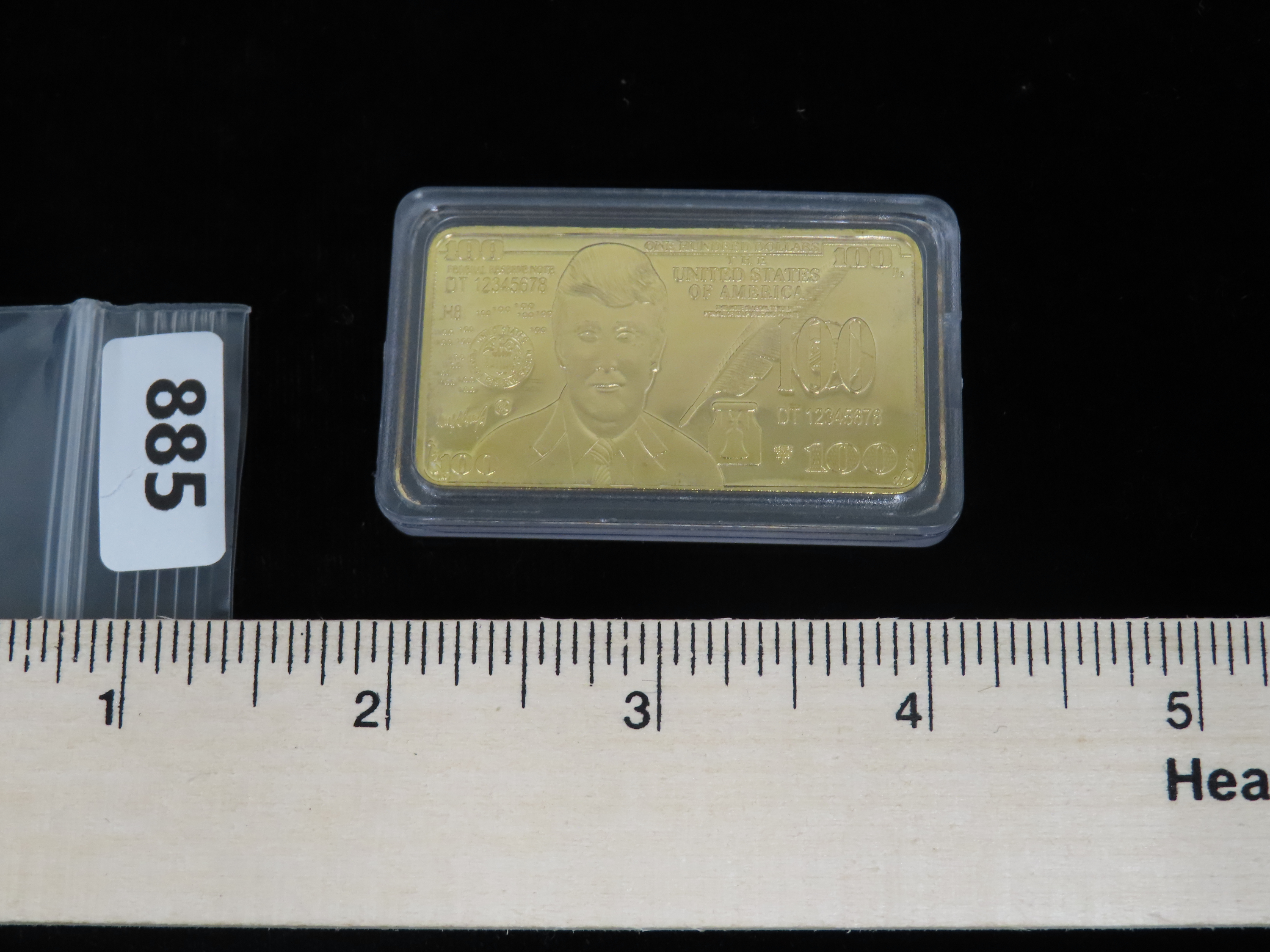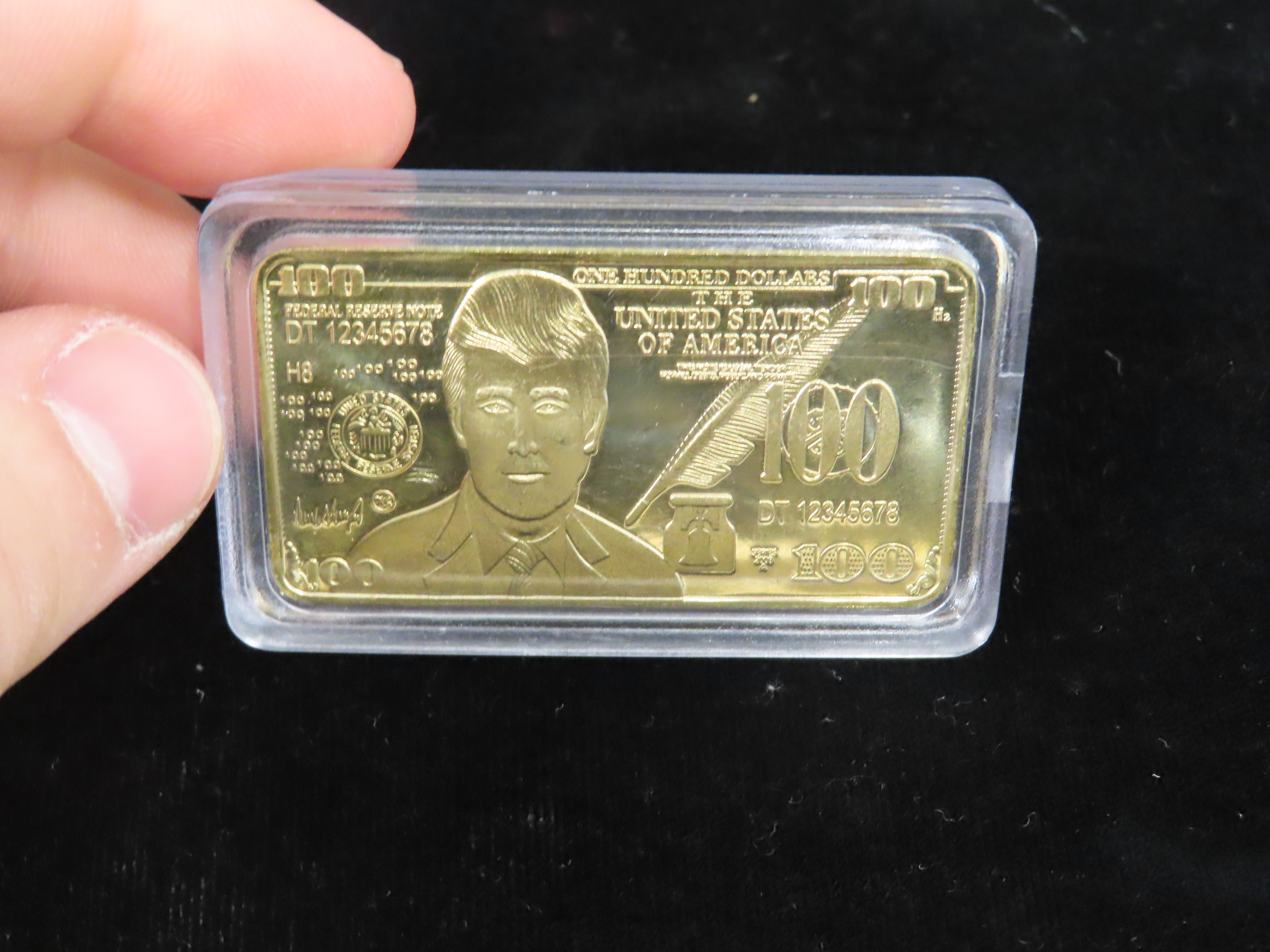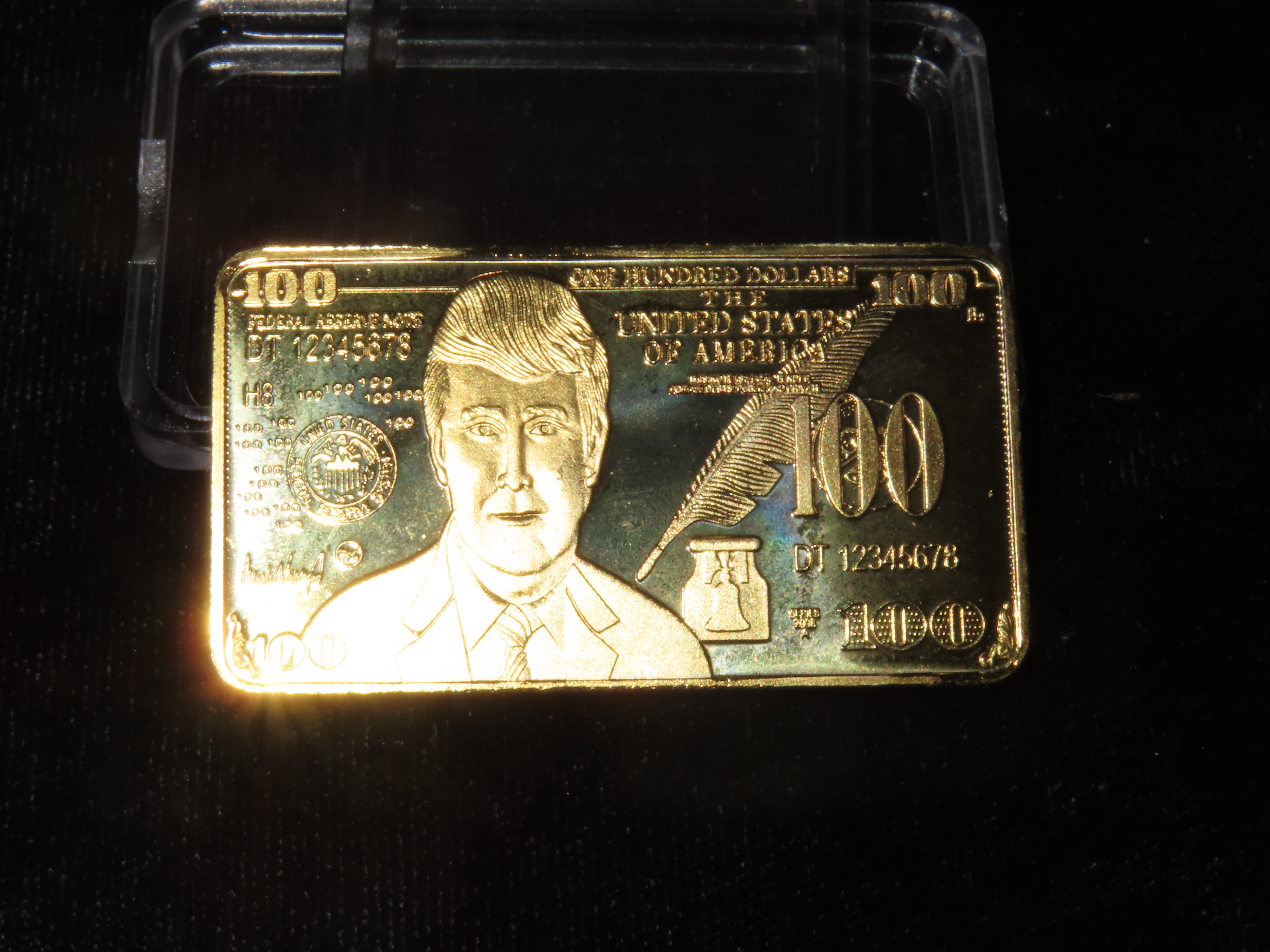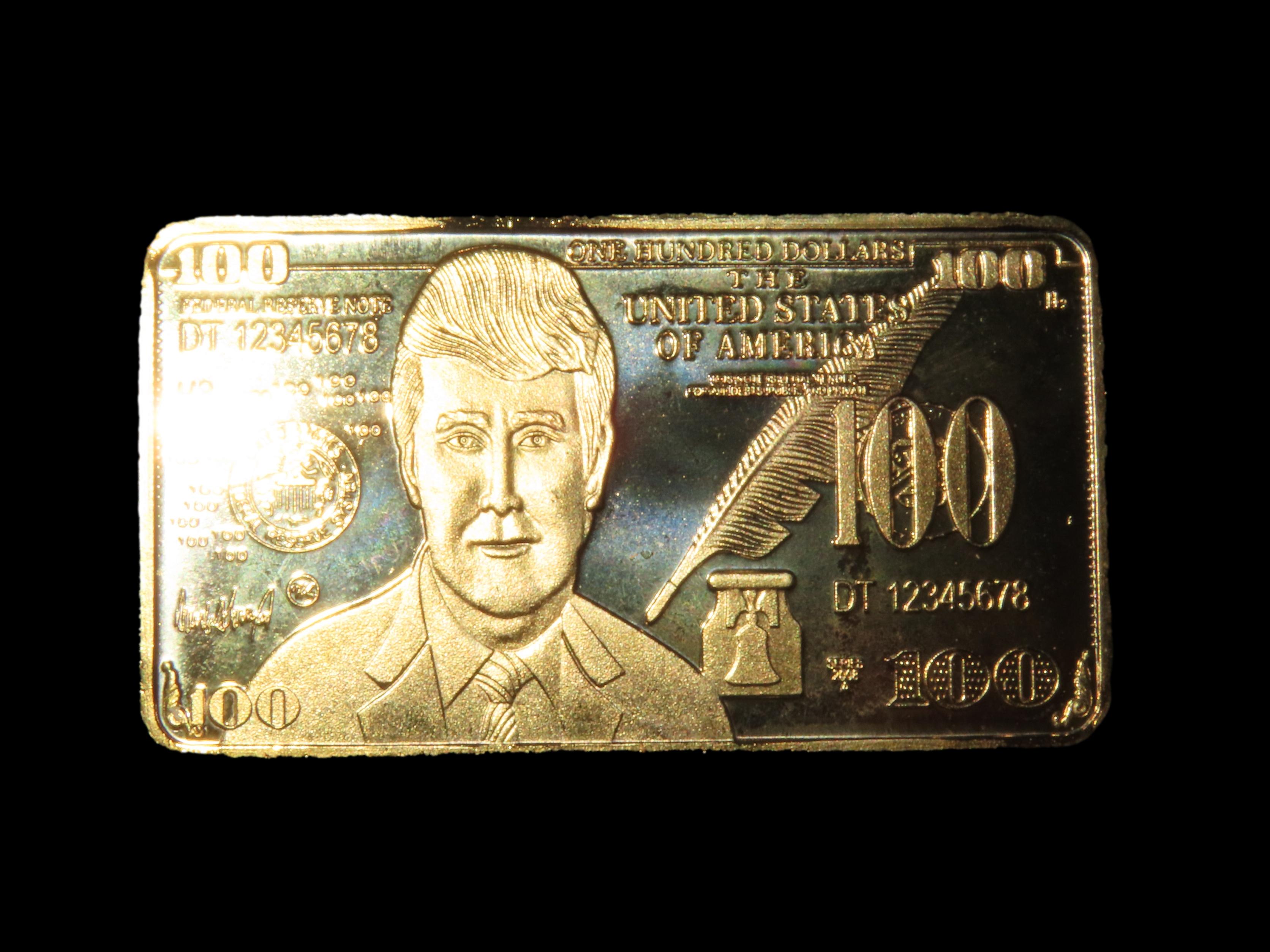 Gold-plated Donald Trump commemorative $100 bill bar ingot coin in plastic case