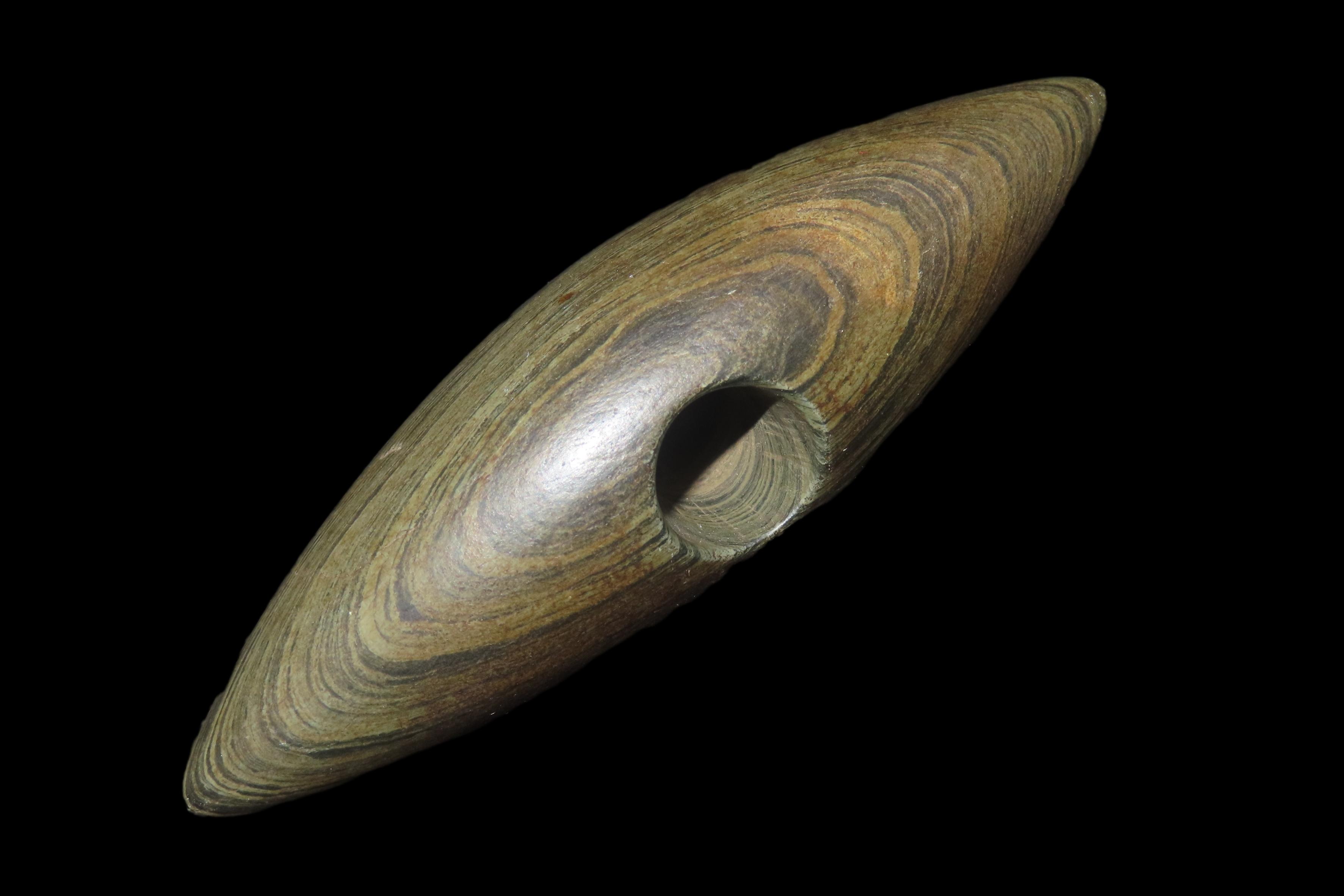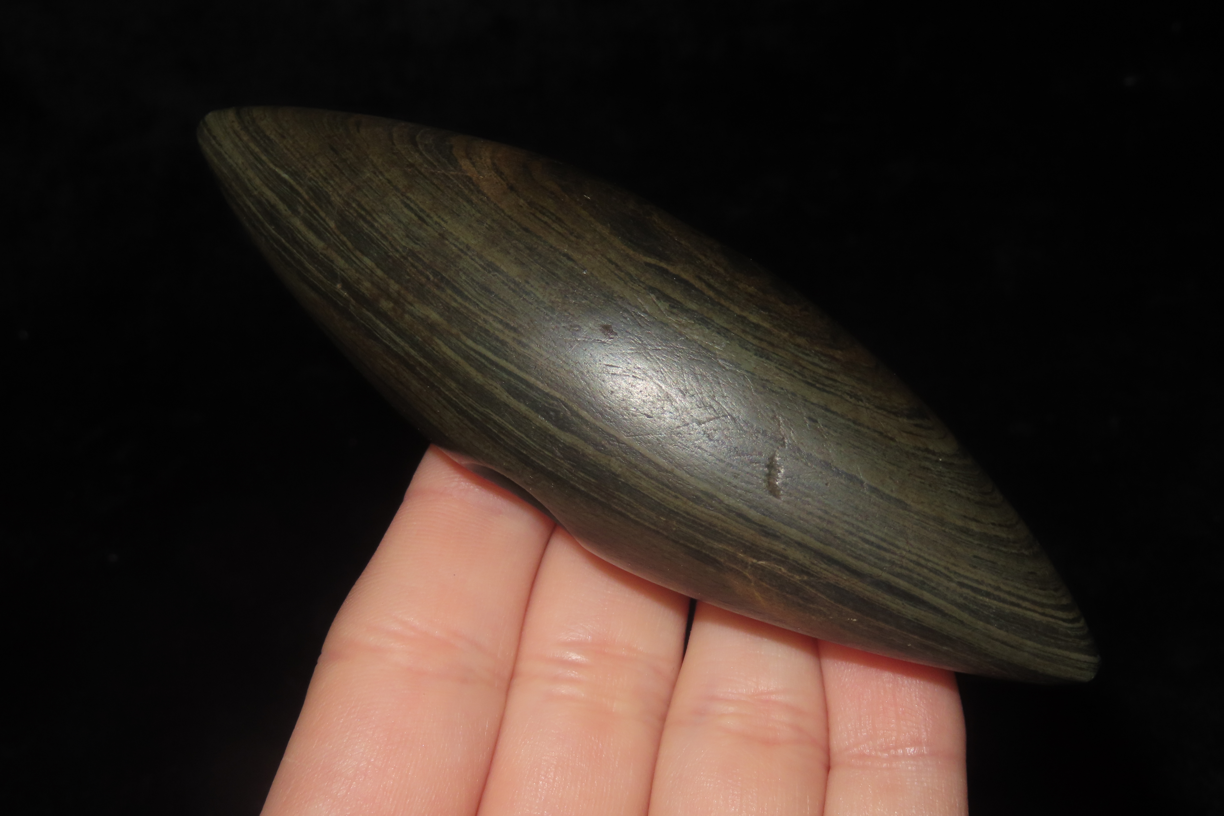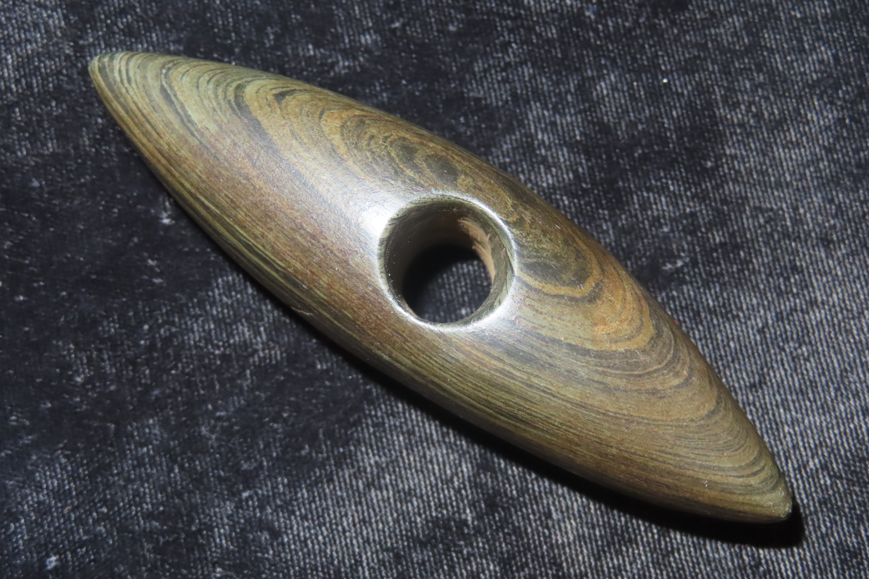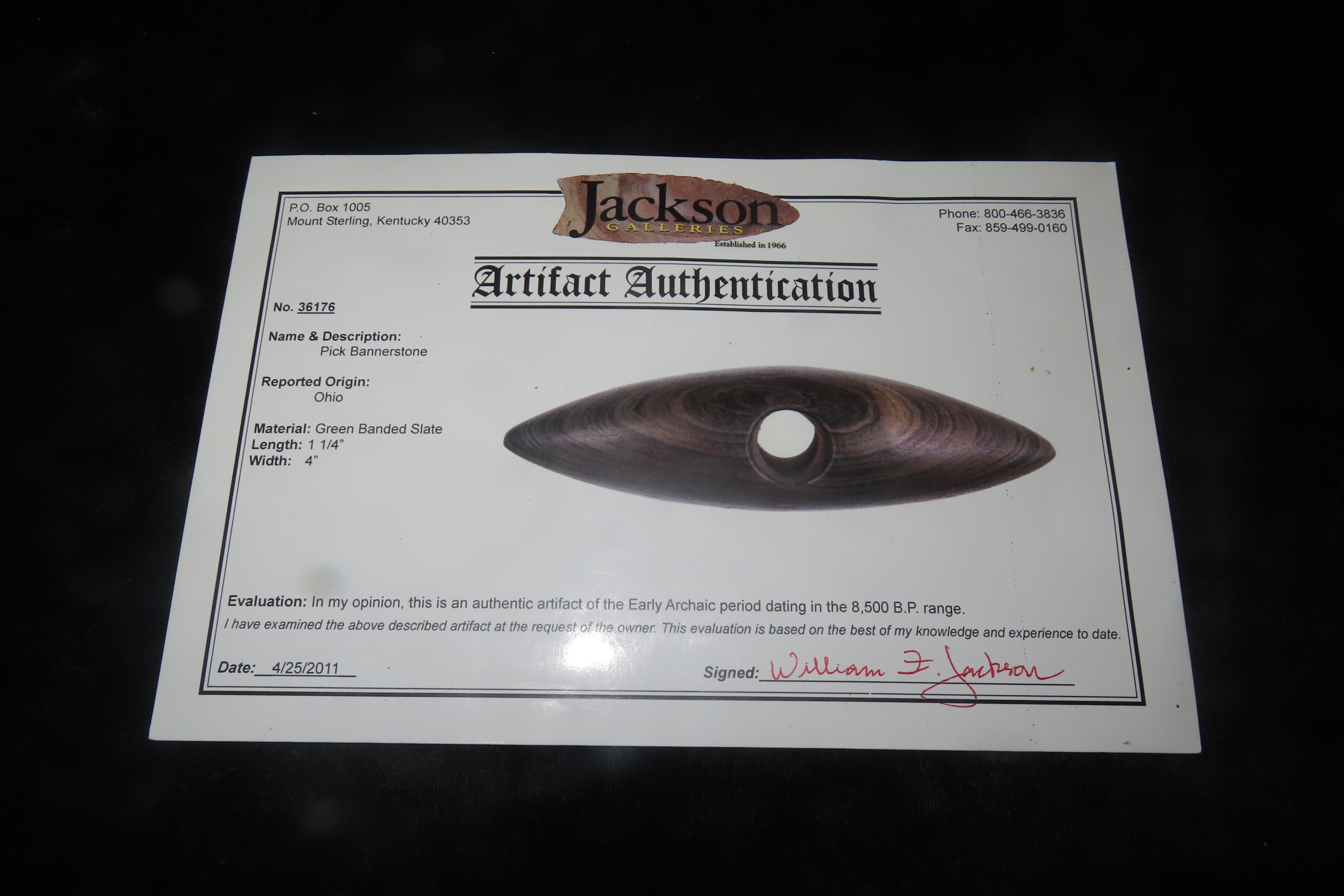 1 1/4″ x 4″ Pick Bannerstone, Jackson COA, Green Banded Slate, Ohio