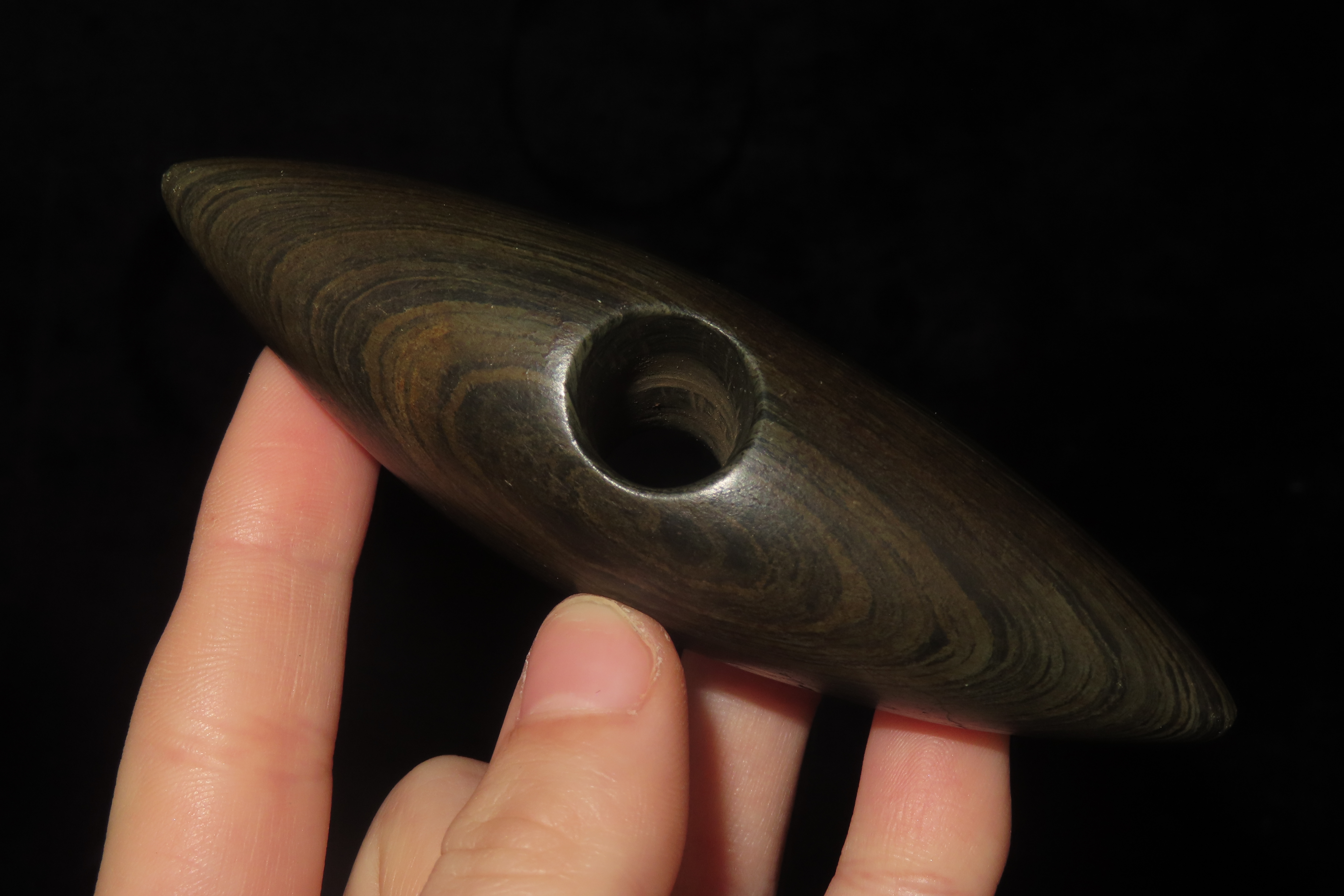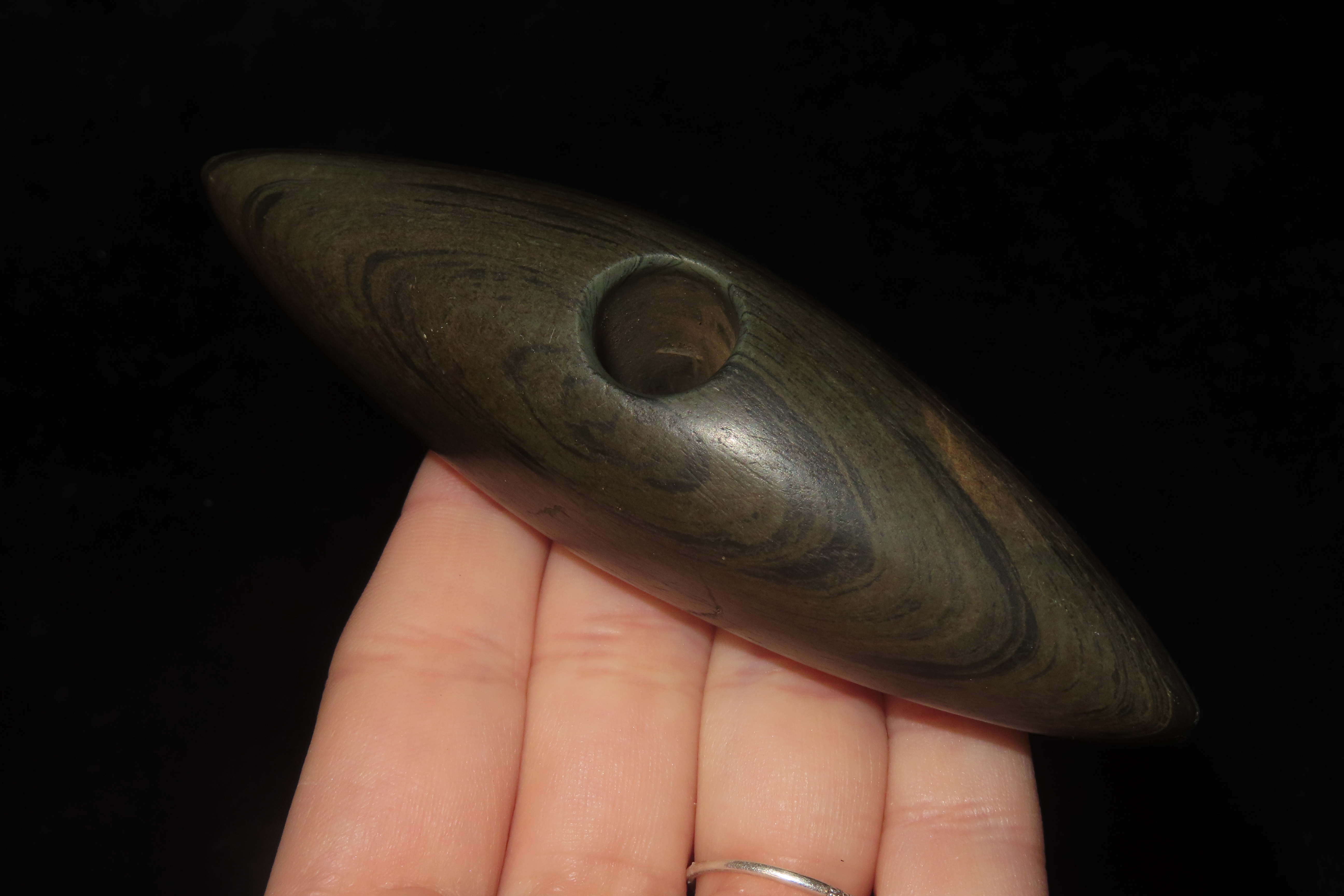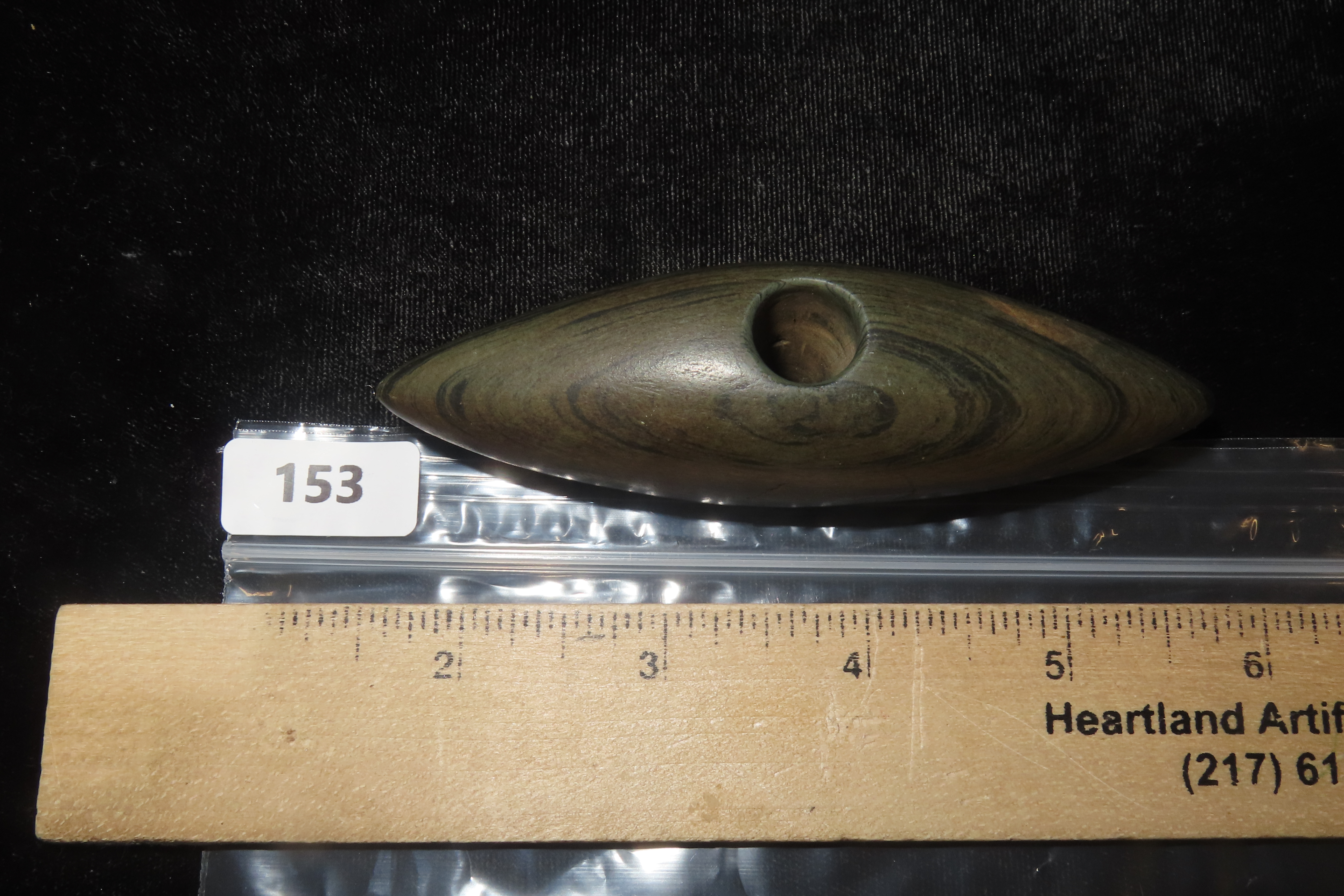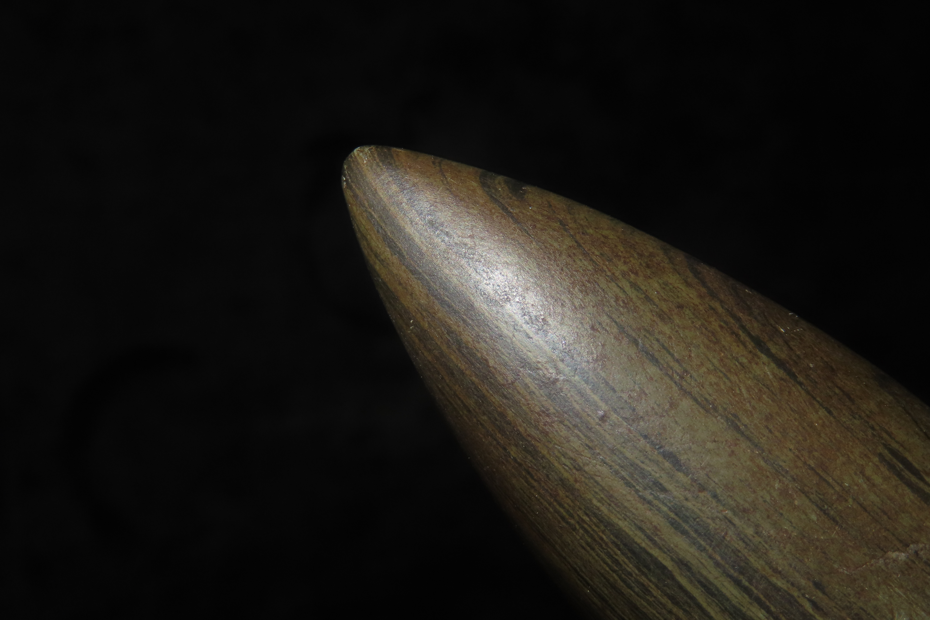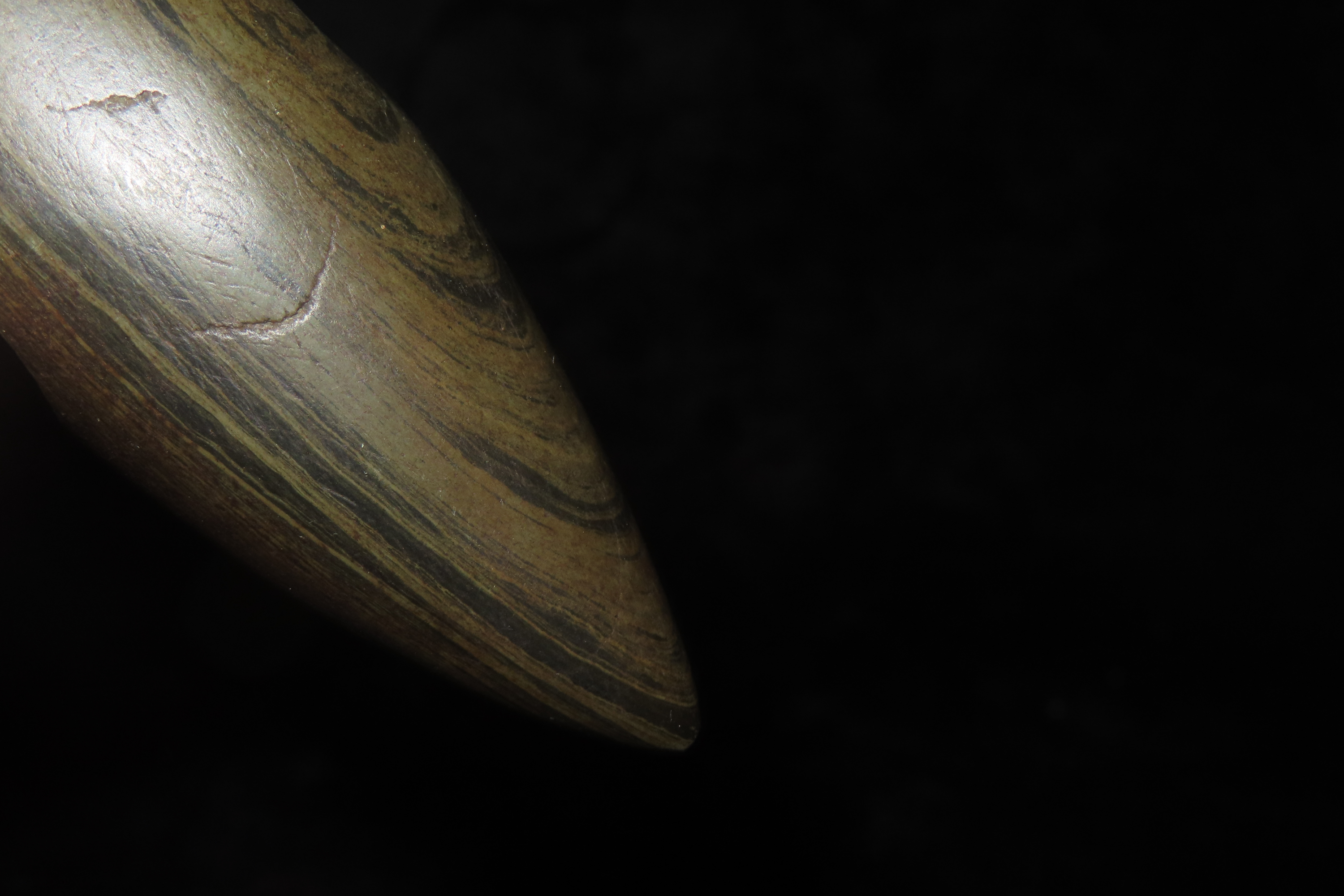 1 1/4″ x 4″ Pick Bannerstone, Jackson COA, Green Banded Slate, Ohio