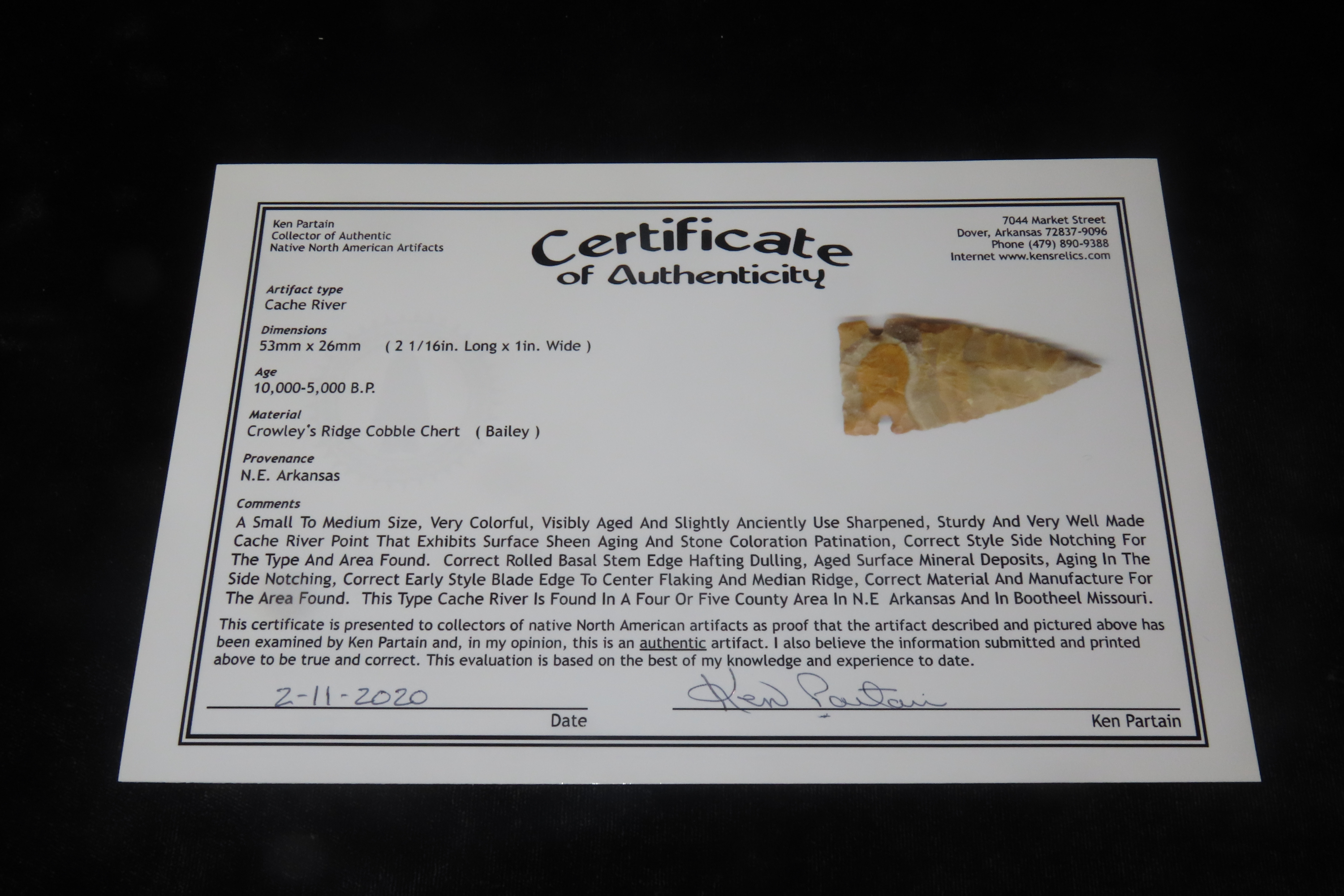 2 1/16″ x 1″ Cache River, Partain COA, Crowley’s Ridge Cobble Chert (Bailey), NE Arkansas