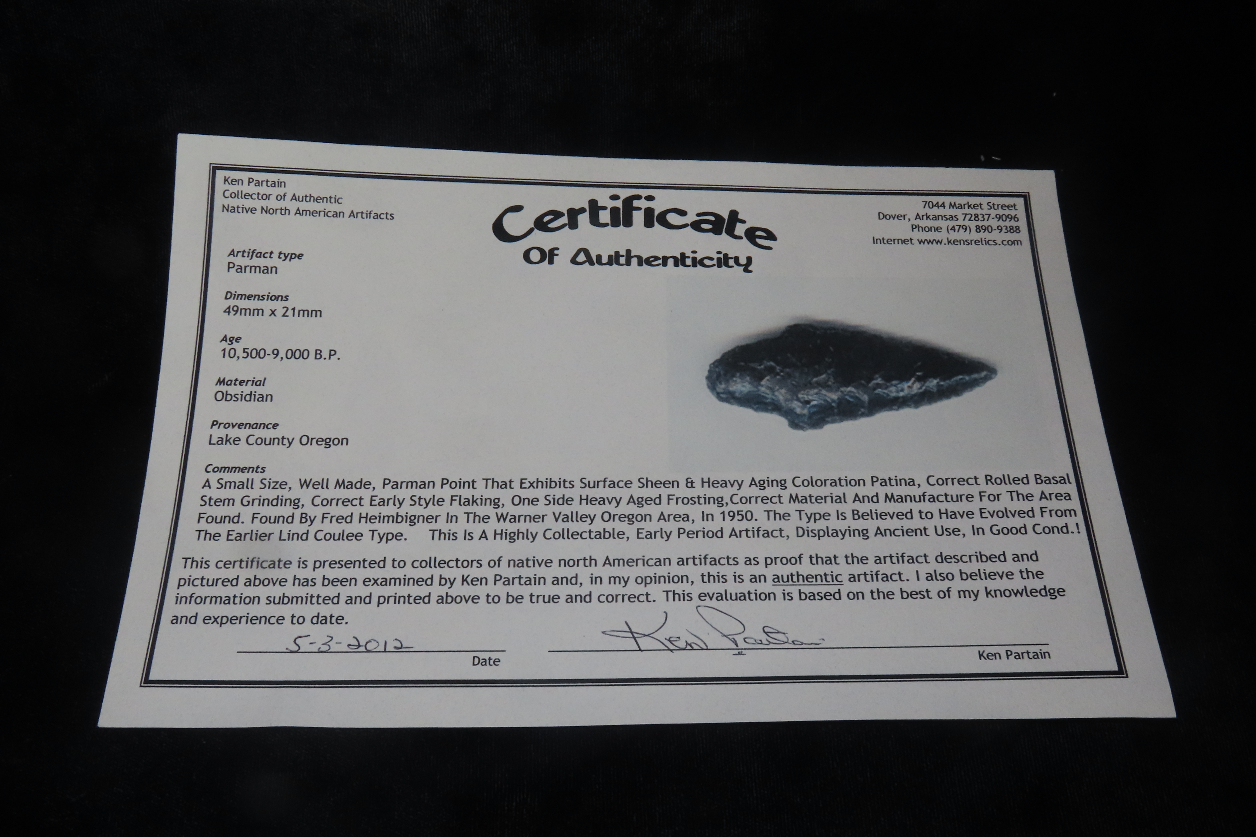 1 7/8″ x 7/8″ Parman, Partain COA, Obsidian, Lake County Oregon