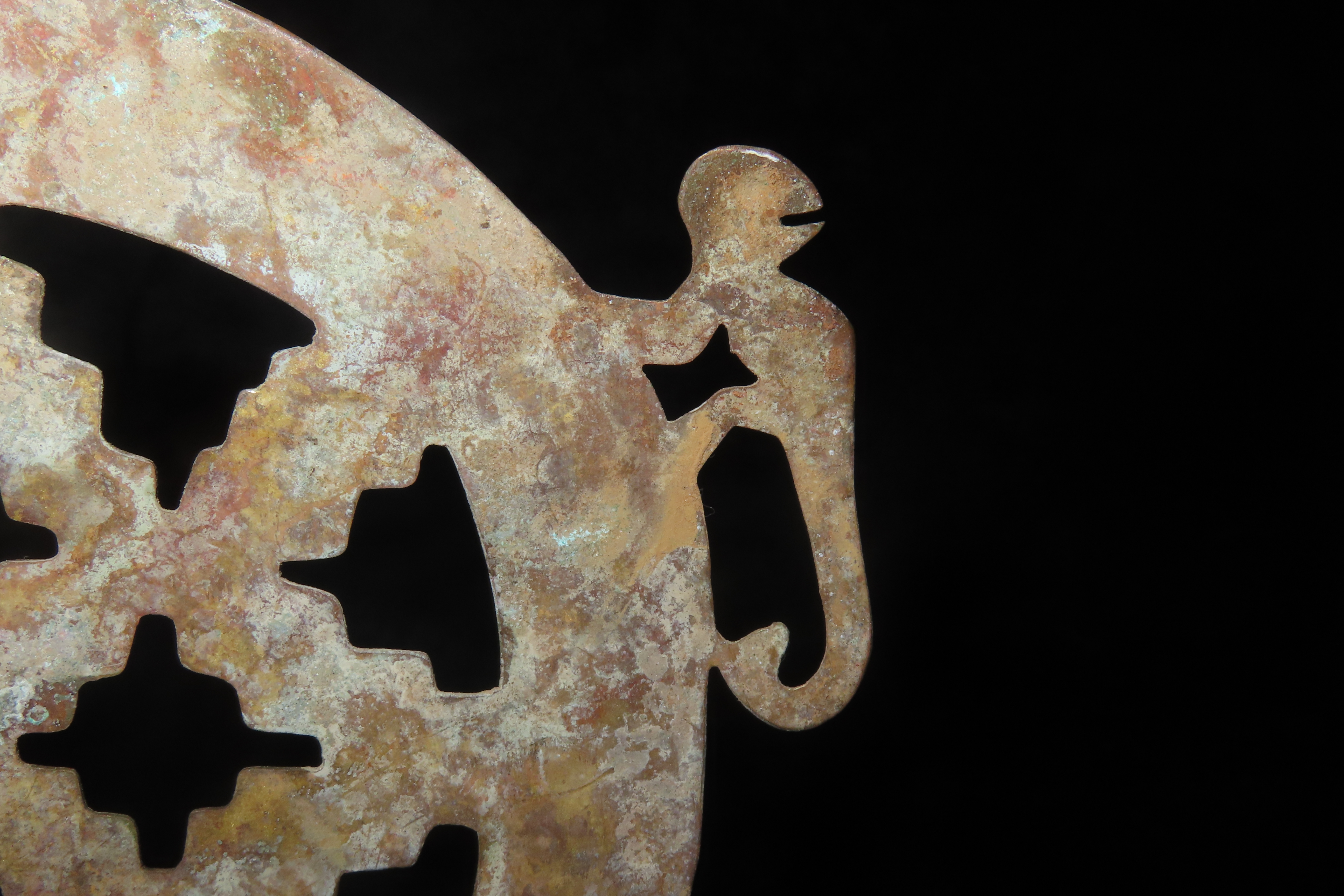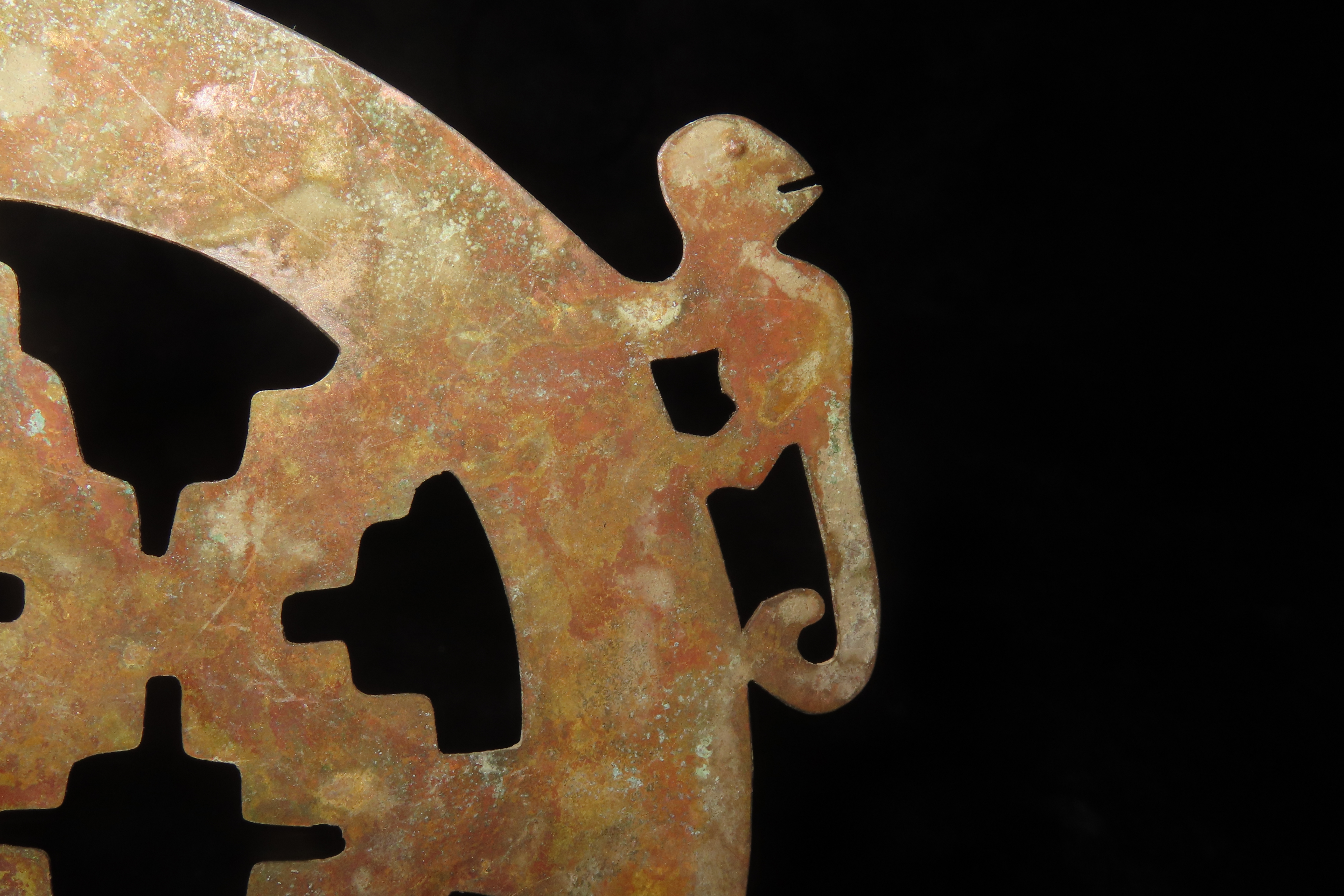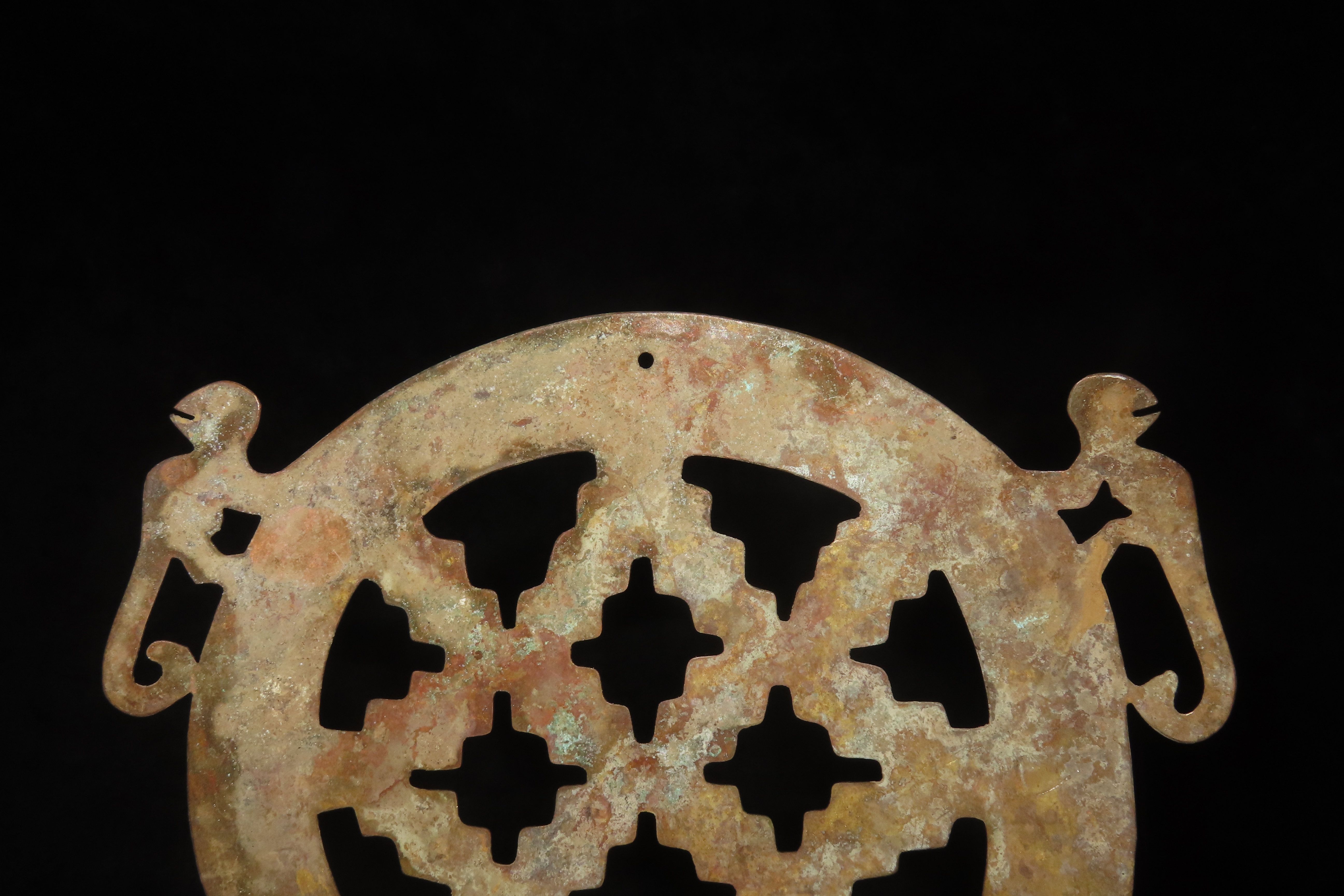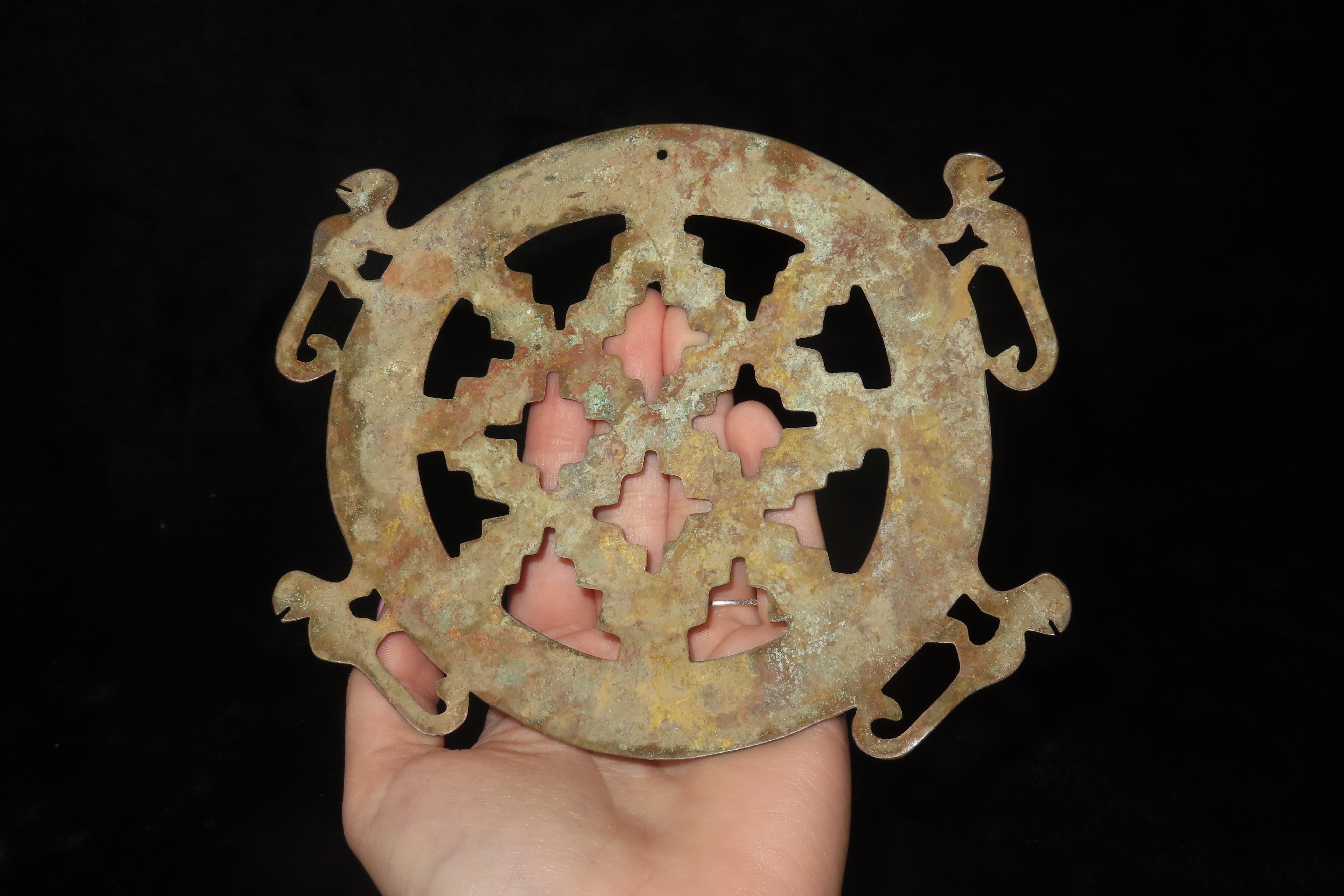 6″ x 5 1/8″ Ornamental Shamanistic Pendant, Pre-Columbian Moche Culture, Copper, Peru, COA Roy Motley & John Leithoff