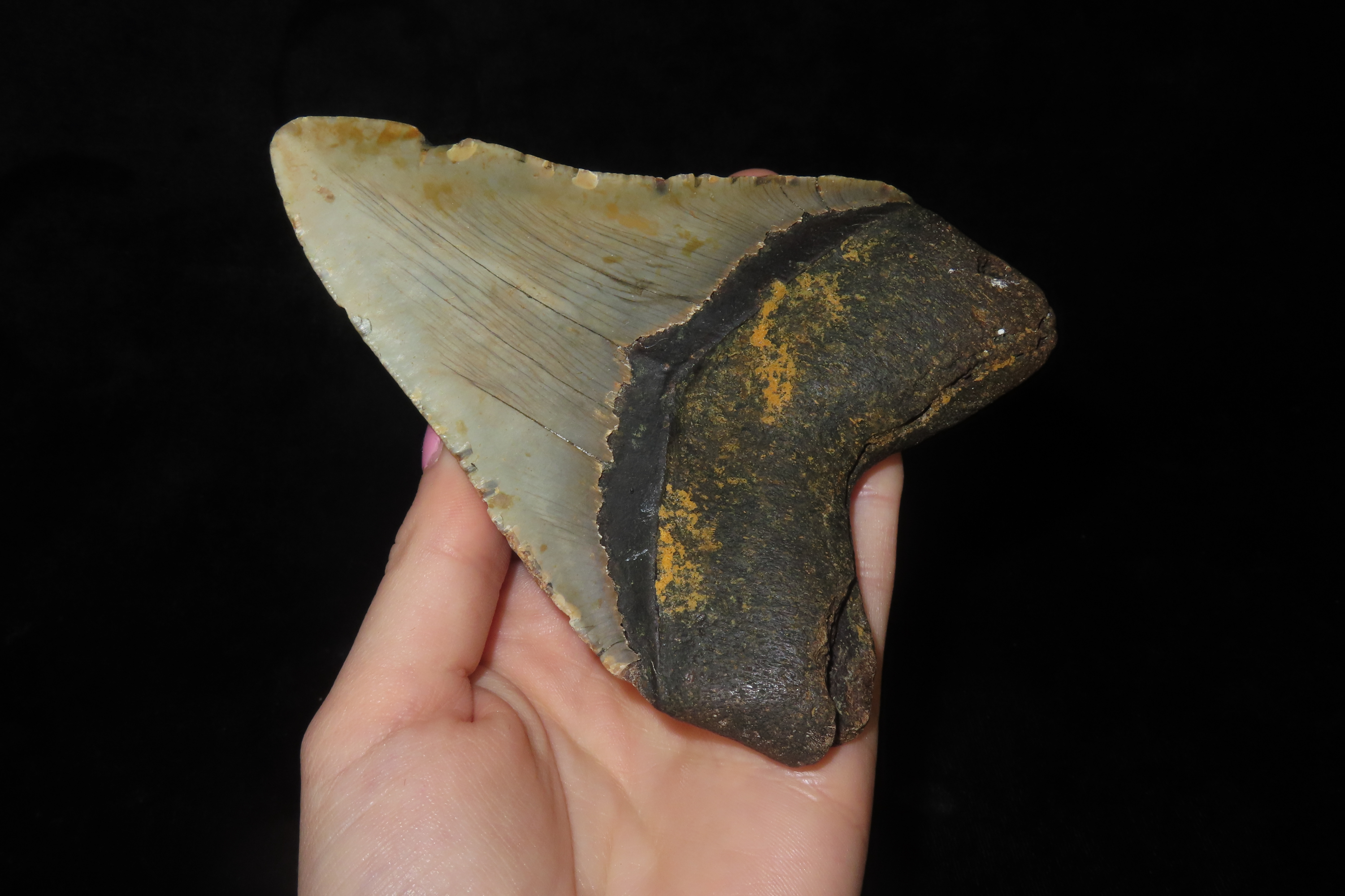 4.675″ Megalodon Fossilized Sharks Tooth, South Carolina