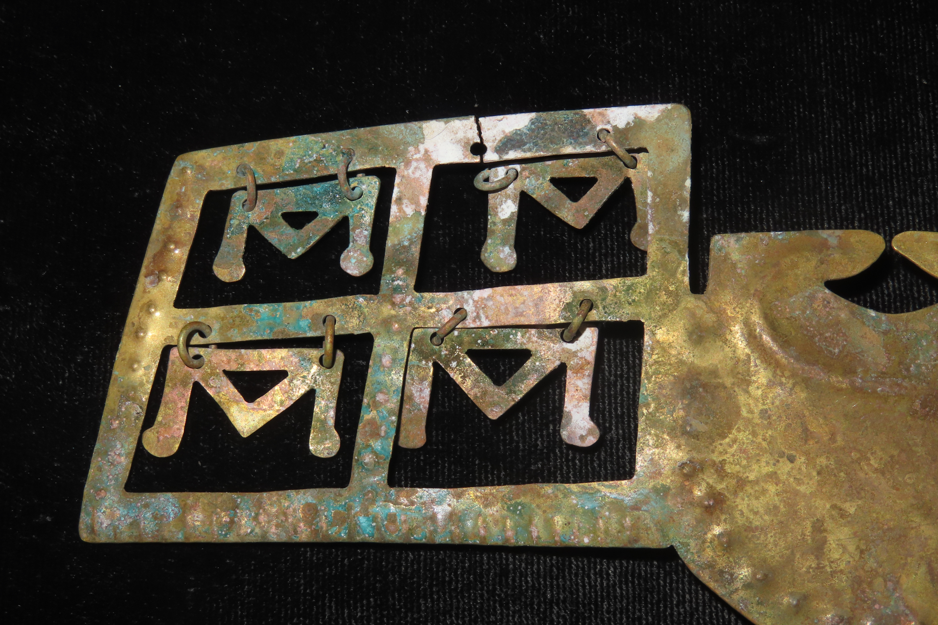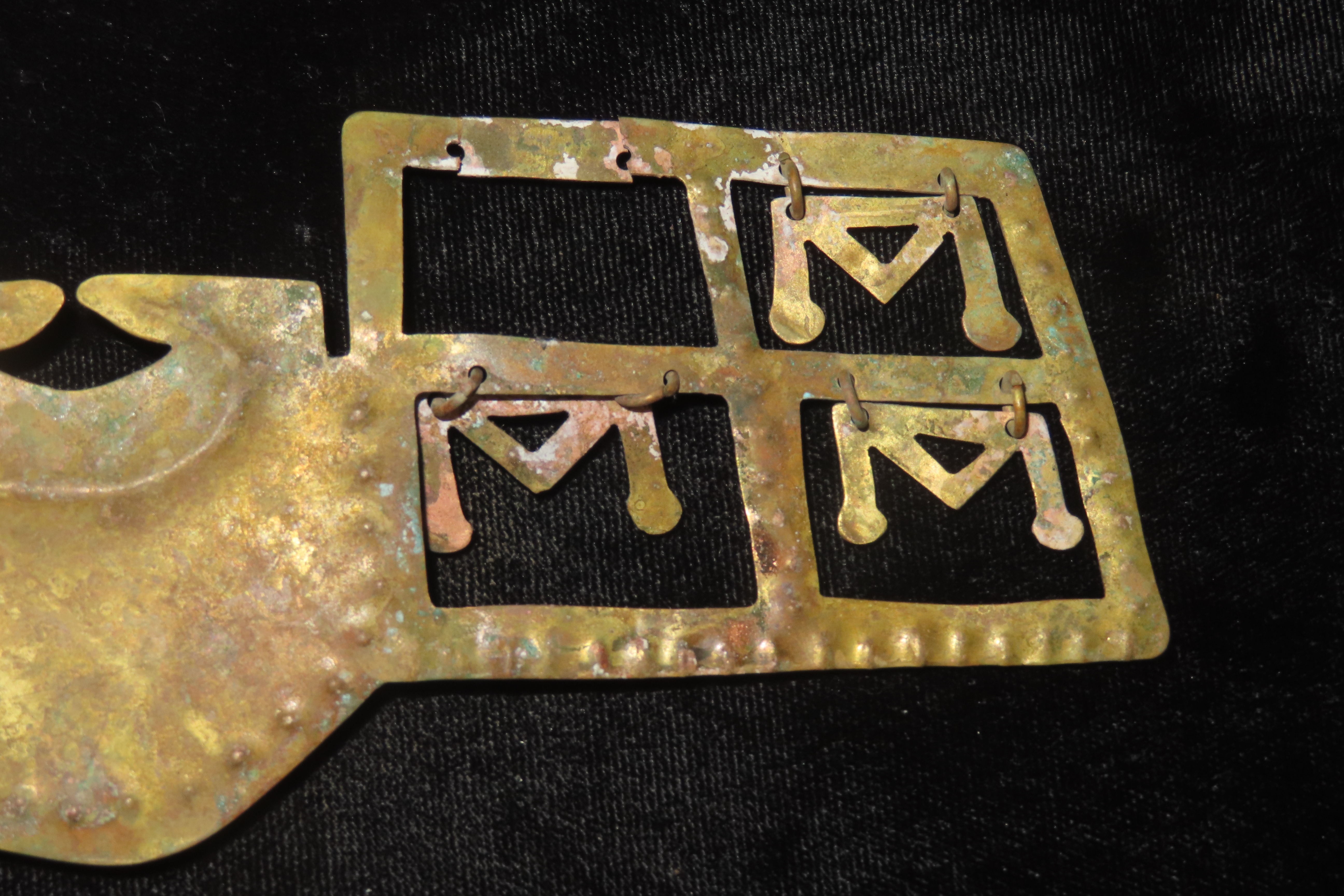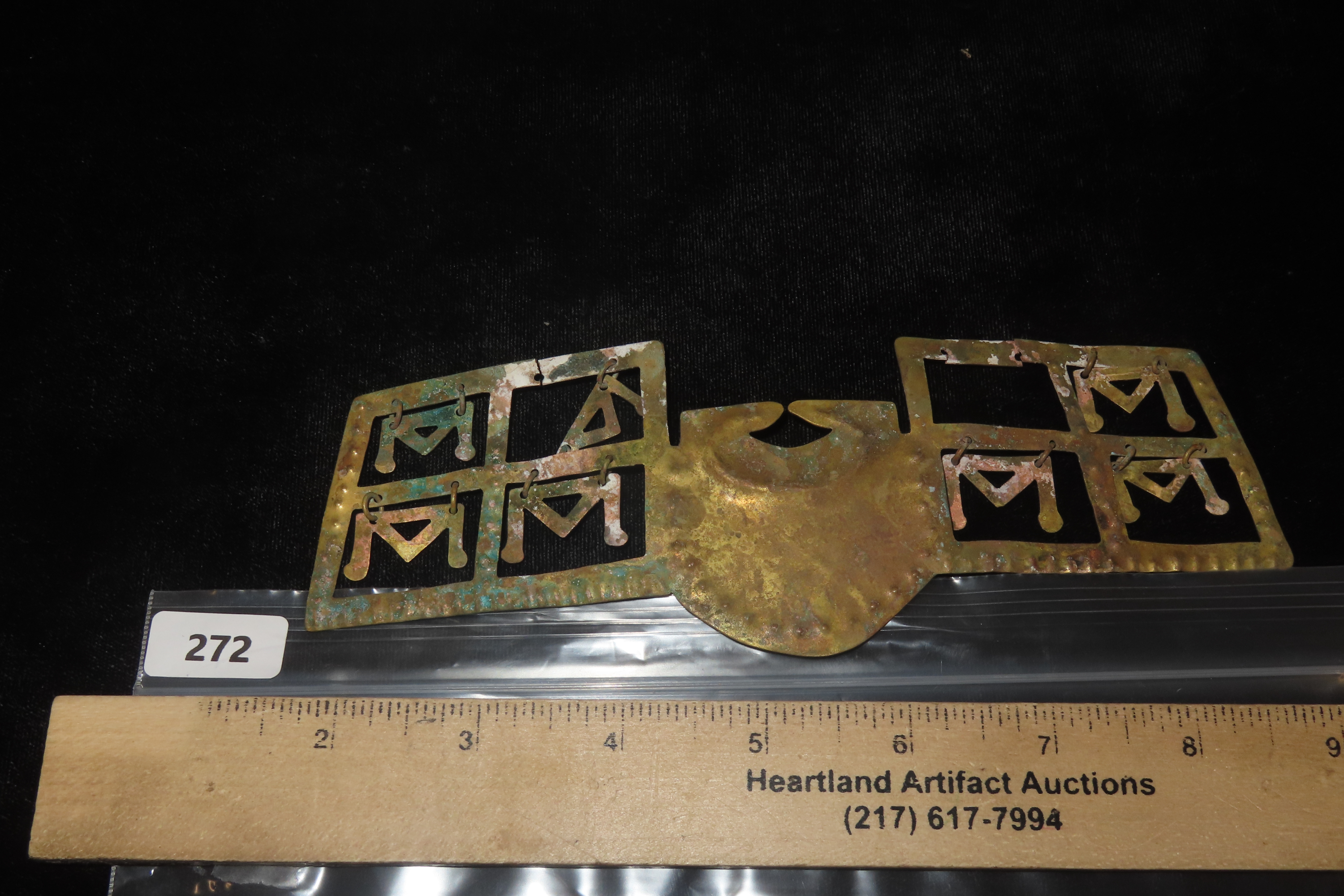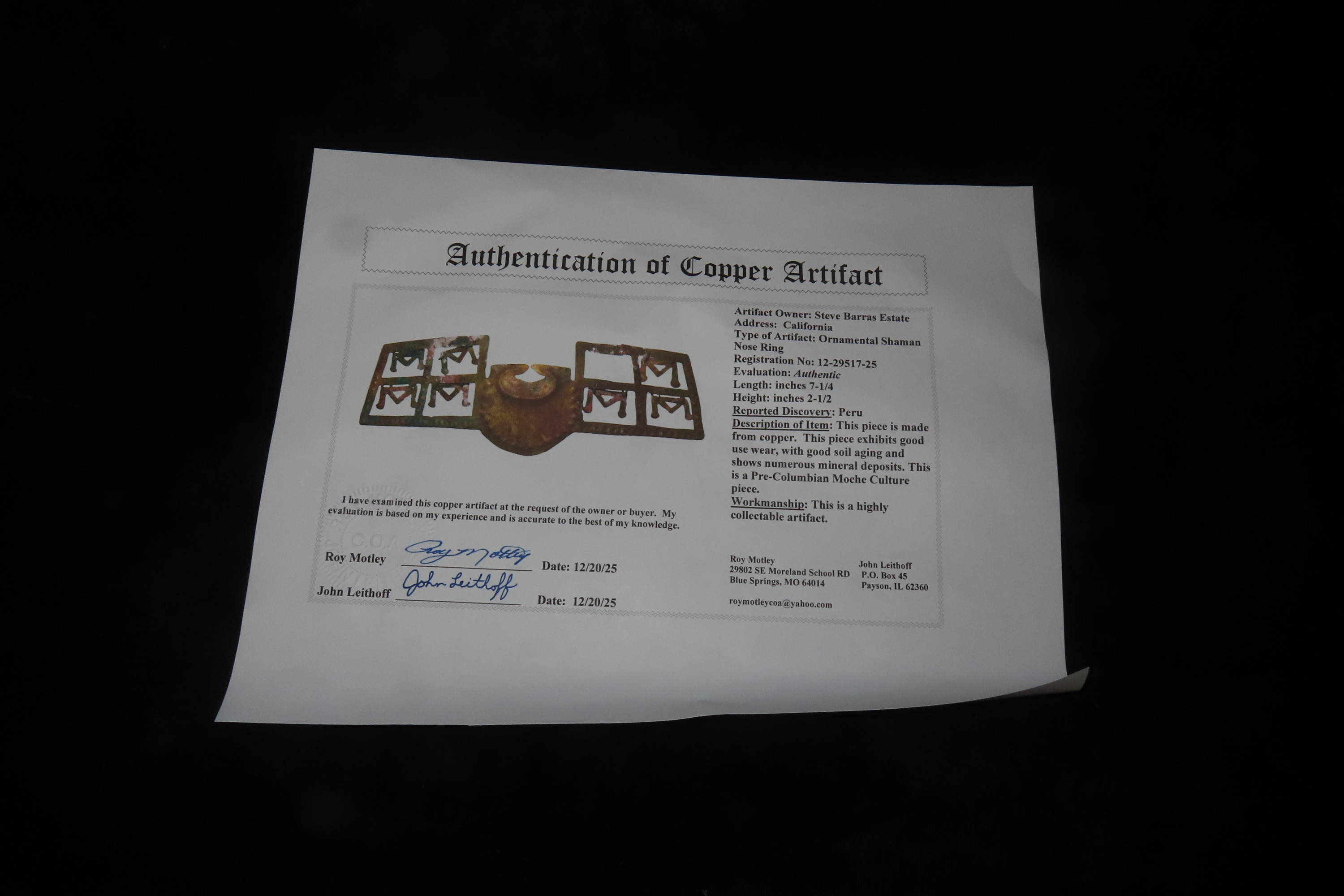 7 1/4″ x 2 1/2″ Ornamental Shaman Nose Ring, Copper, Peru, COA Roy Motley & John Leithoff