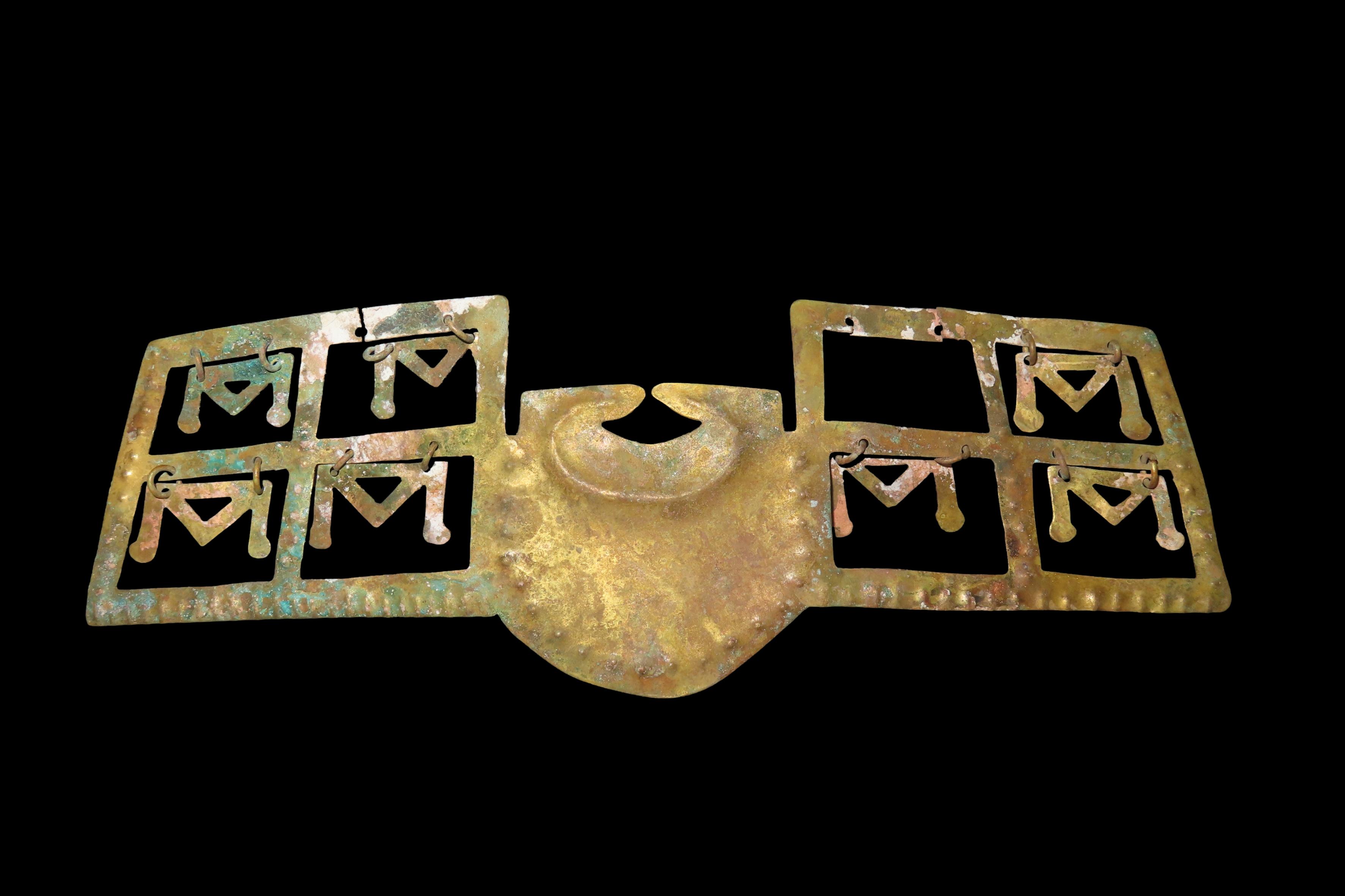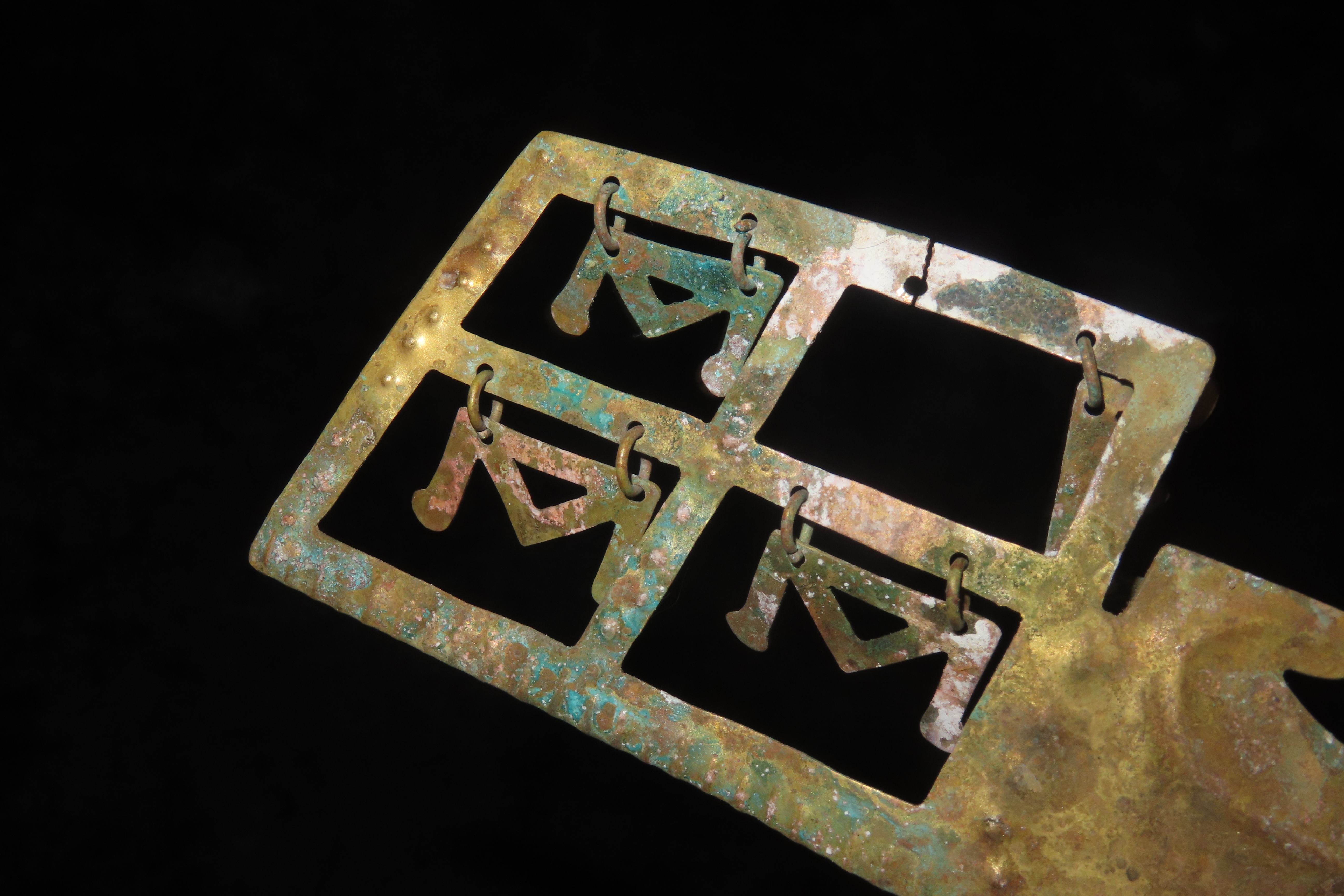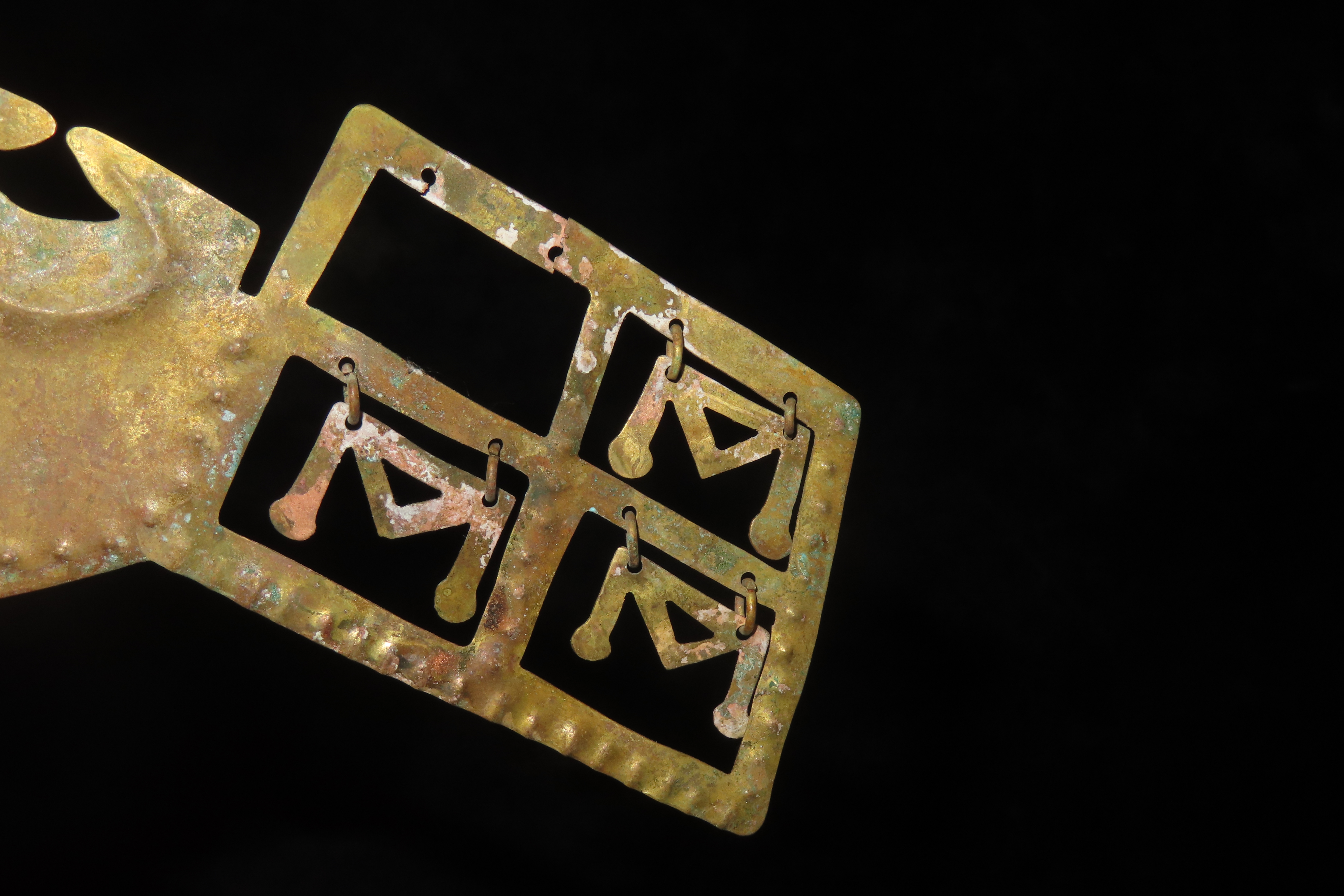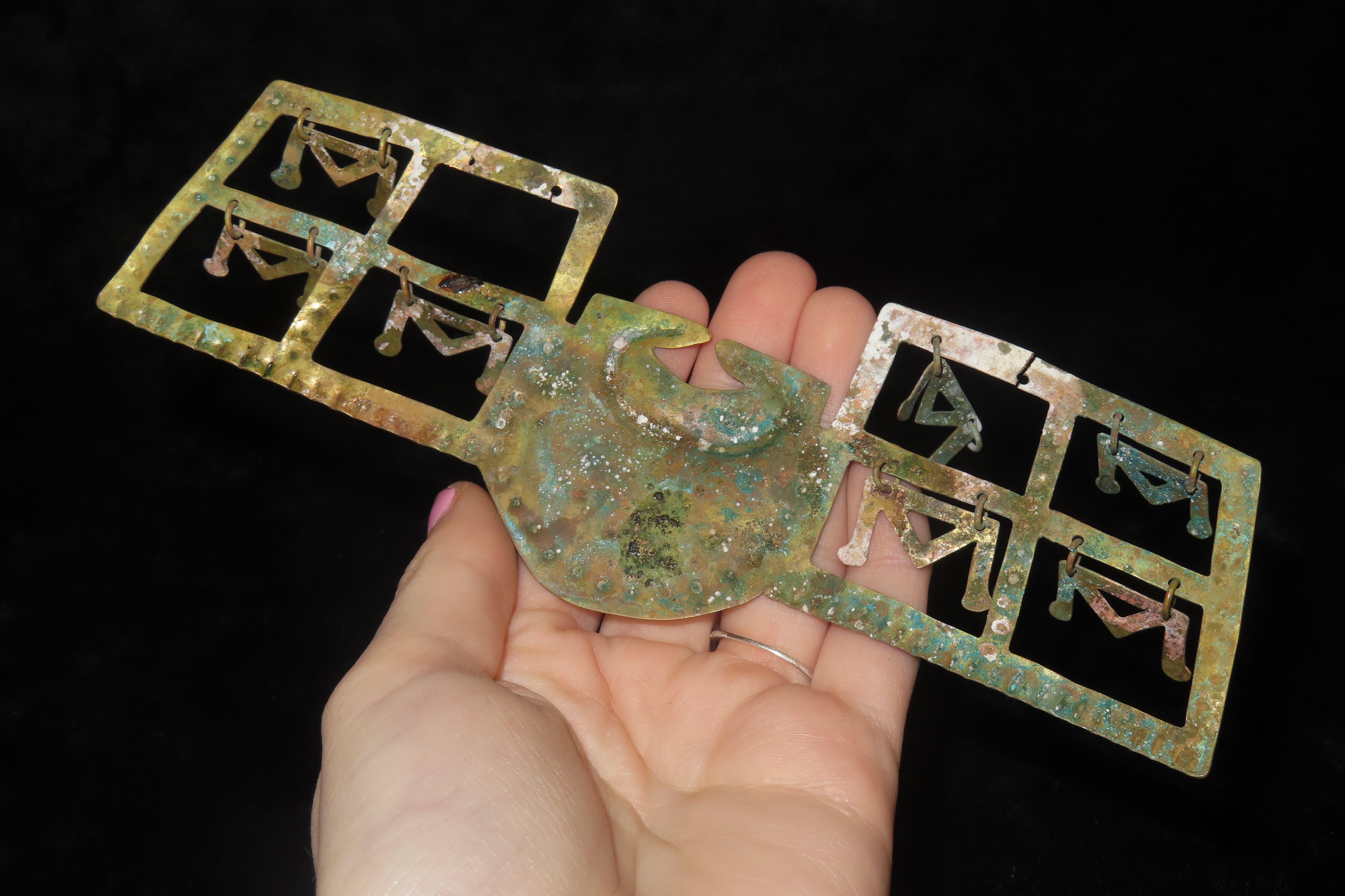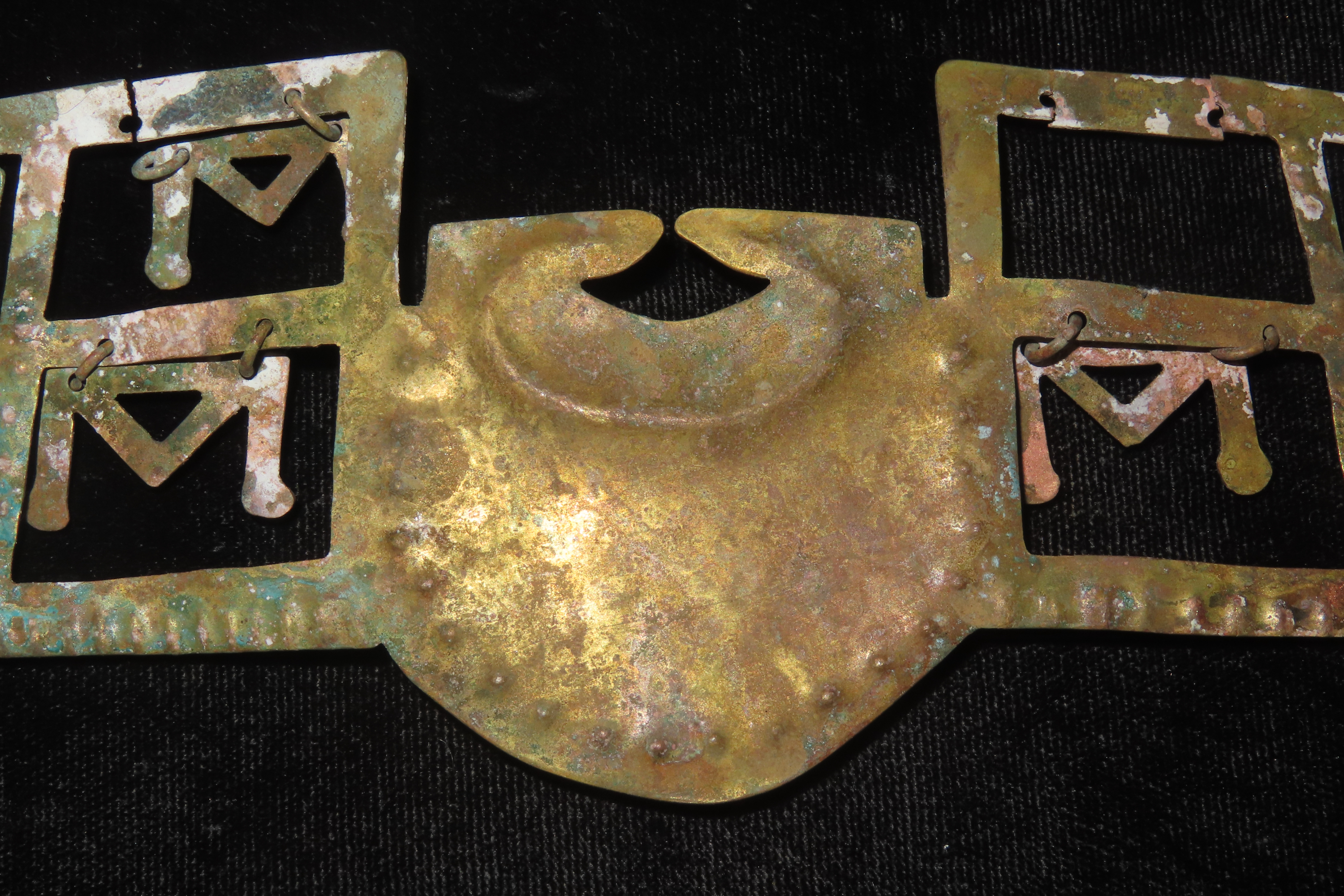 7 1/4″ x 2 1/2″ Ornamental Shaman Nose Ring, Copper, Peru, COA Roy Motley & John Leithoff