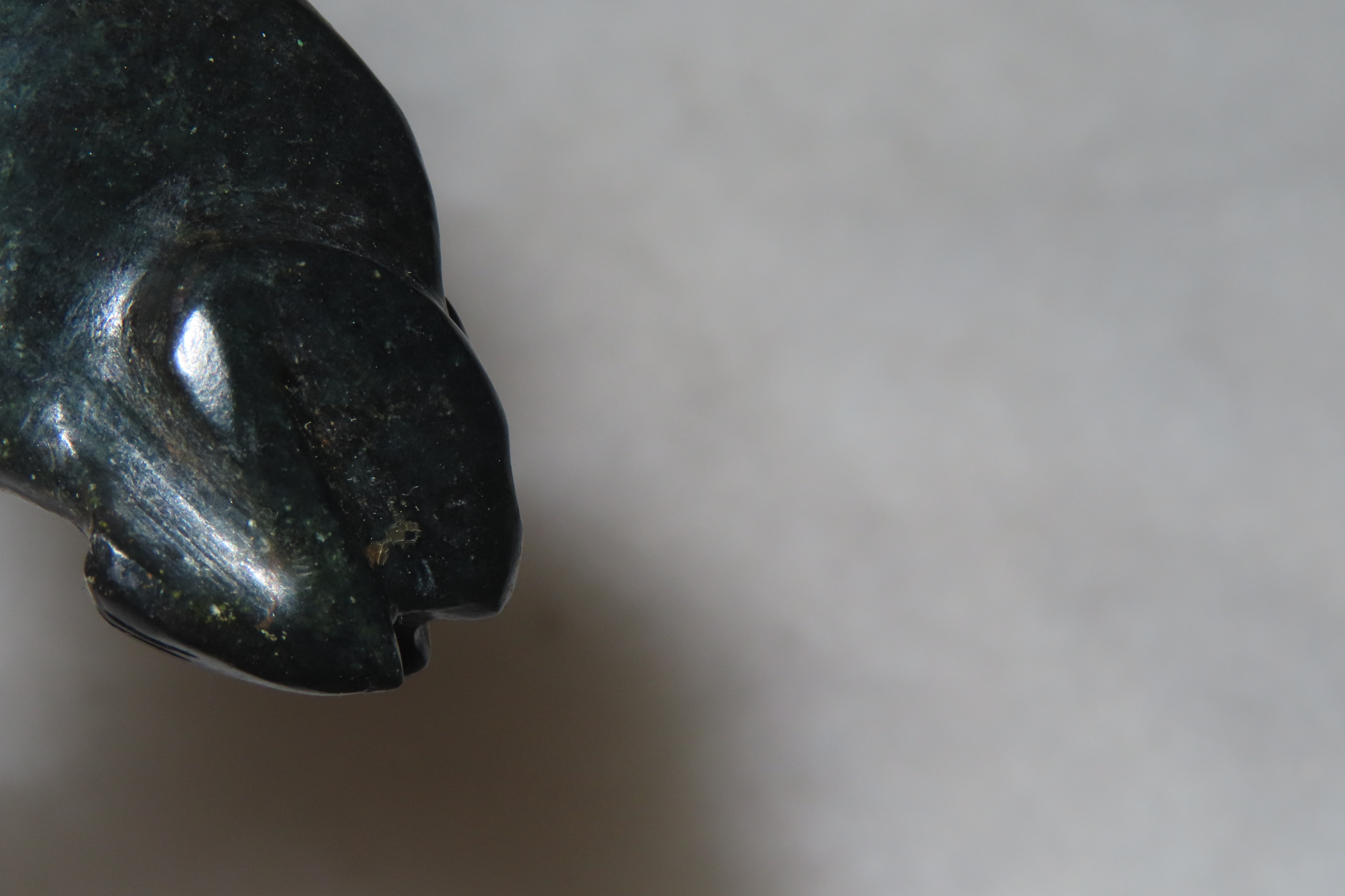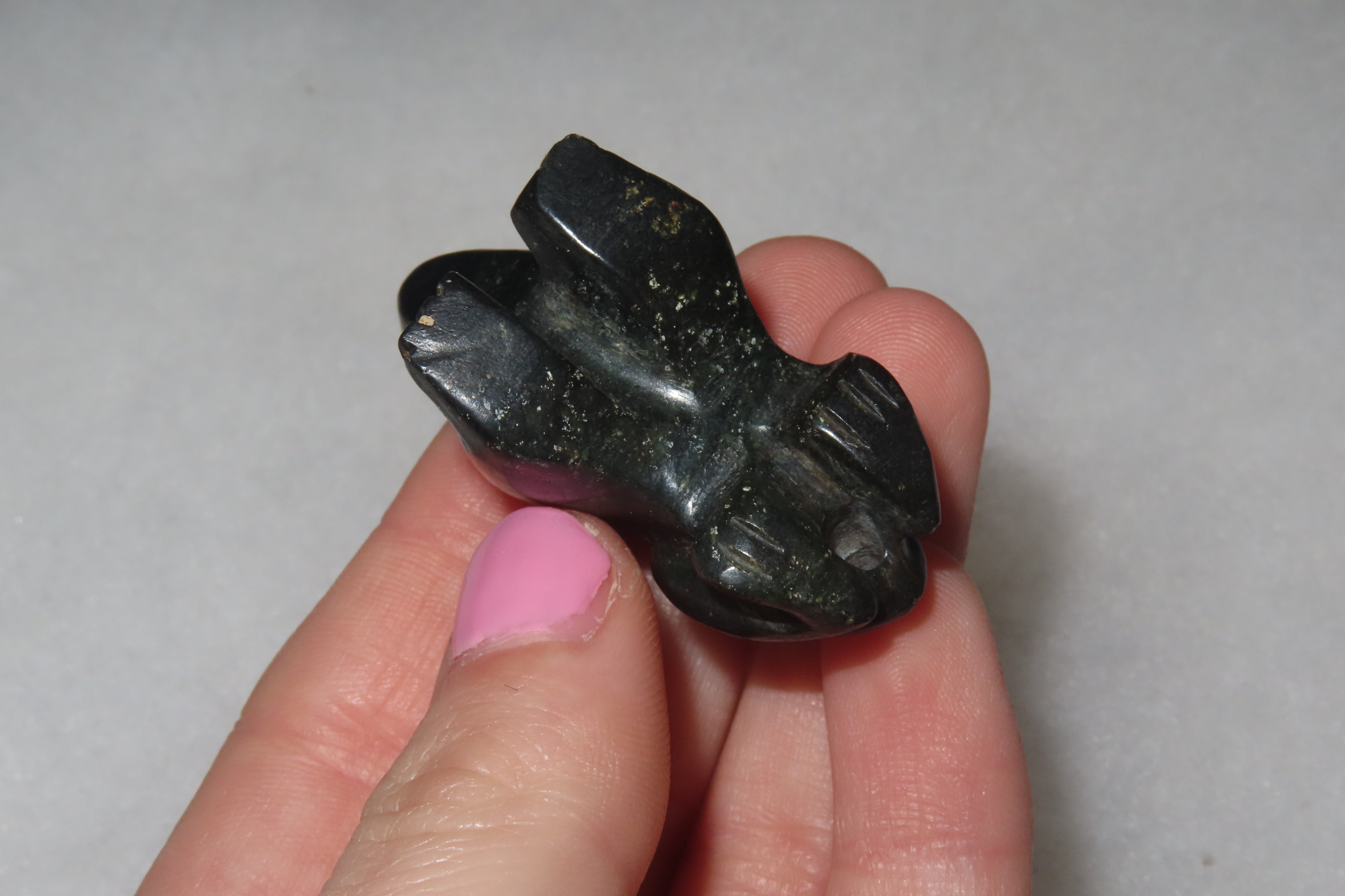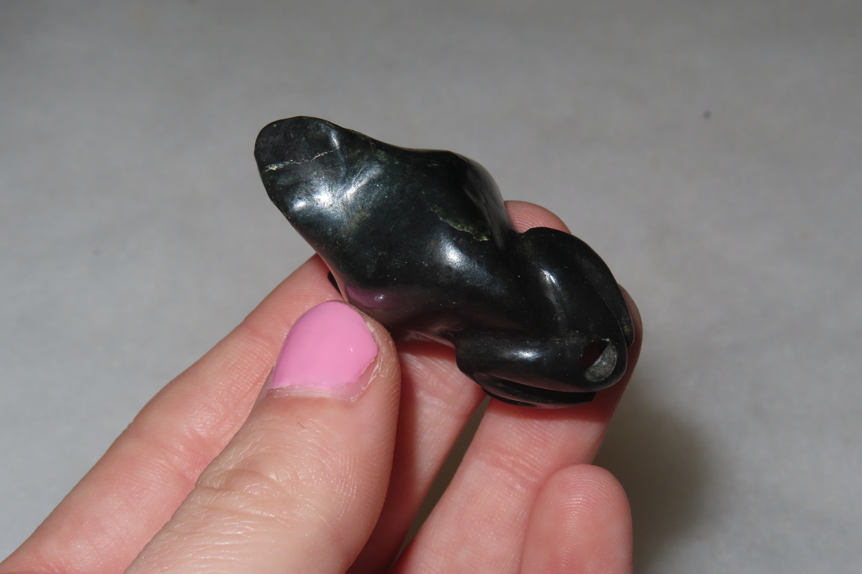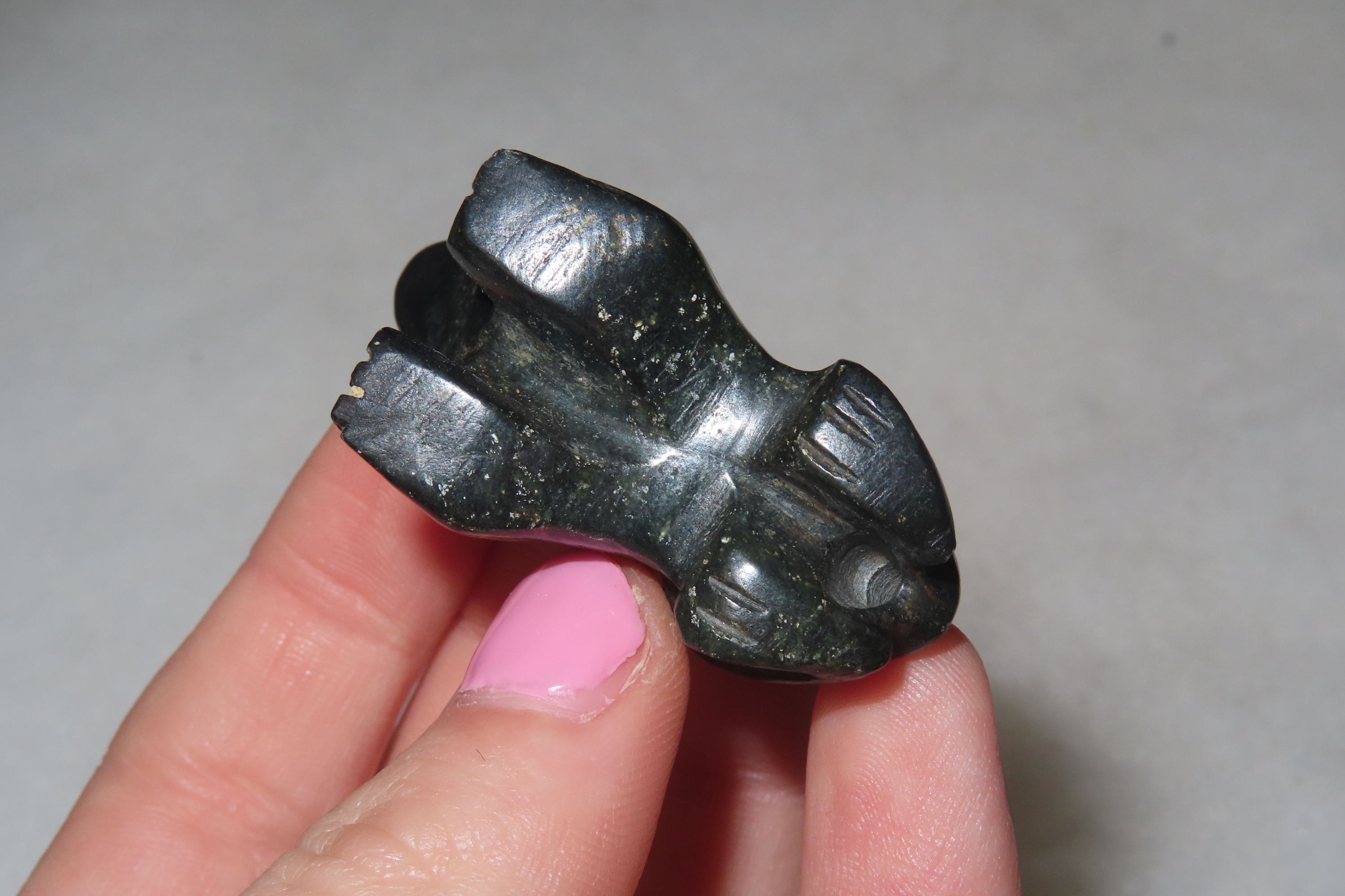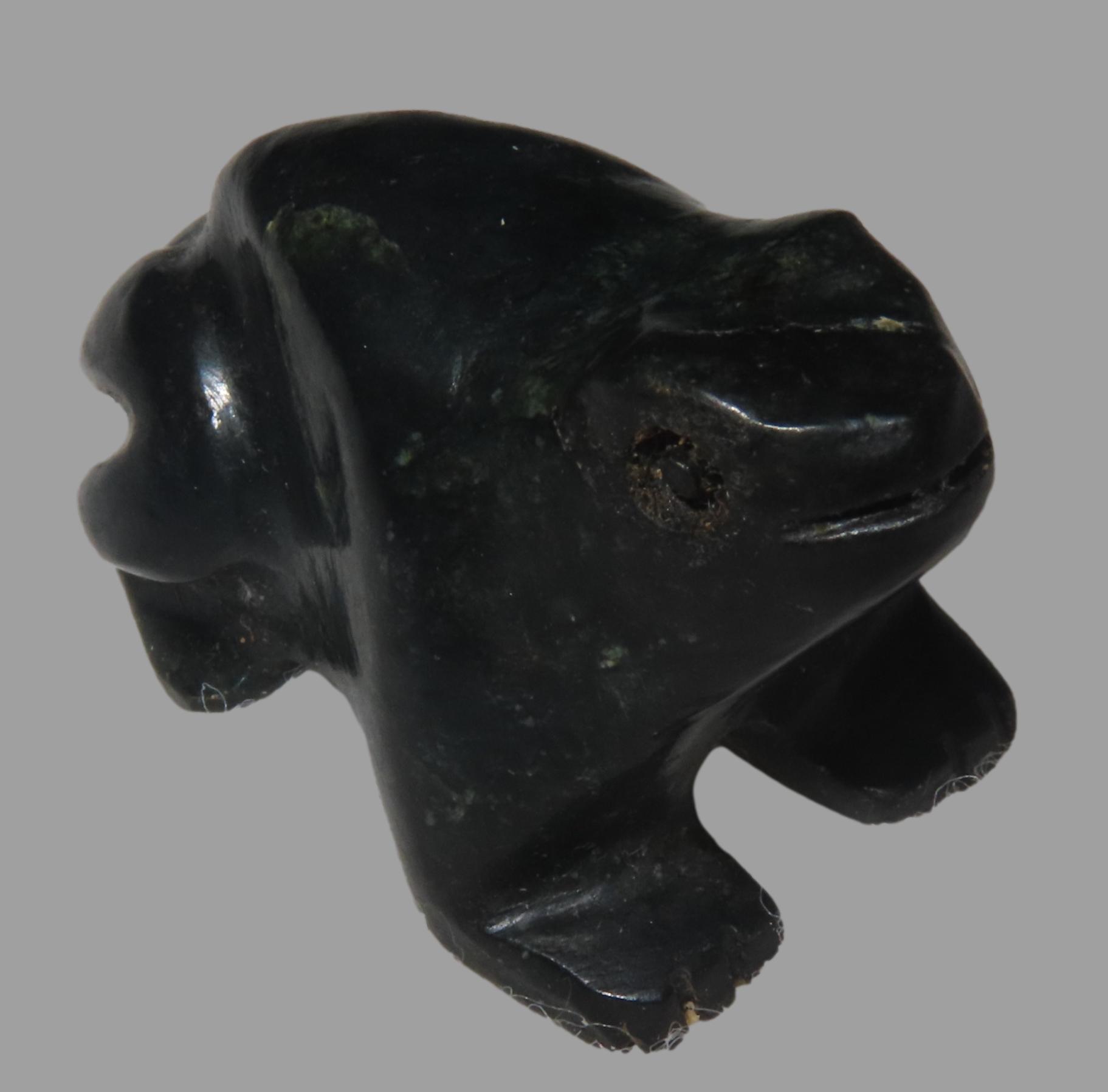 1 9/16" x 1 1/16" Pre-Columbian Frog Effigy Pendant, Green Jadeite, Belize, COA Roy Motley & John Leithoff