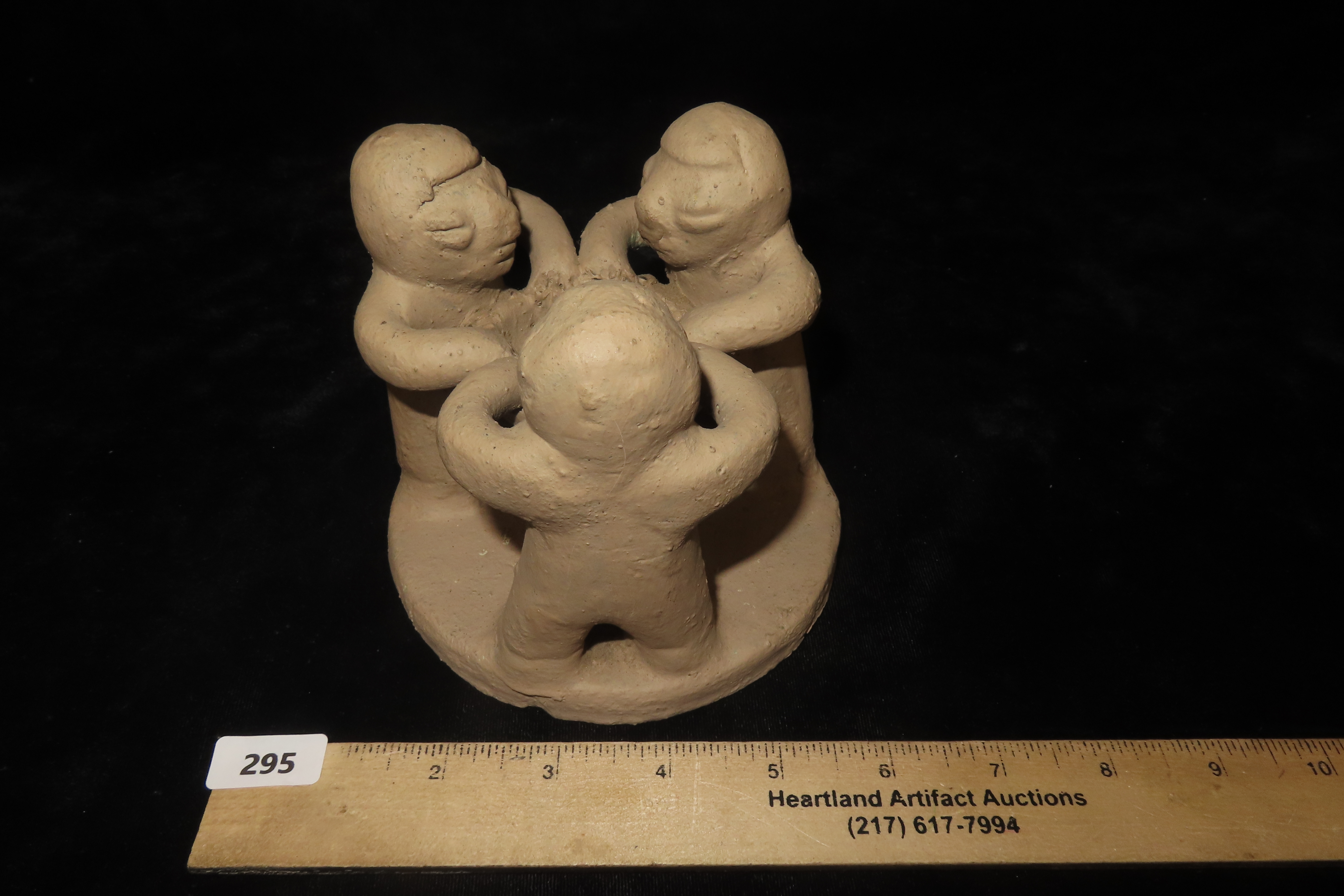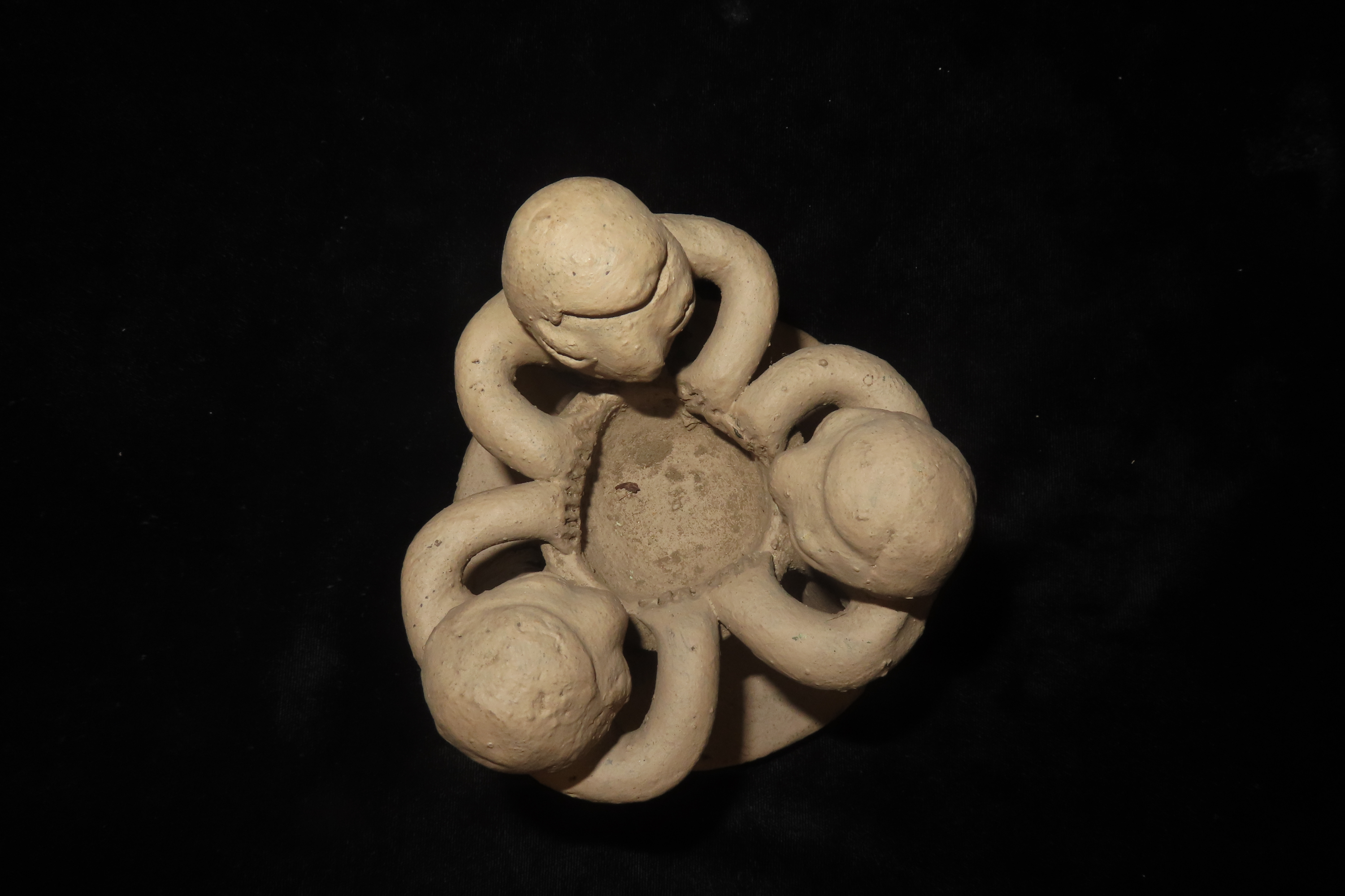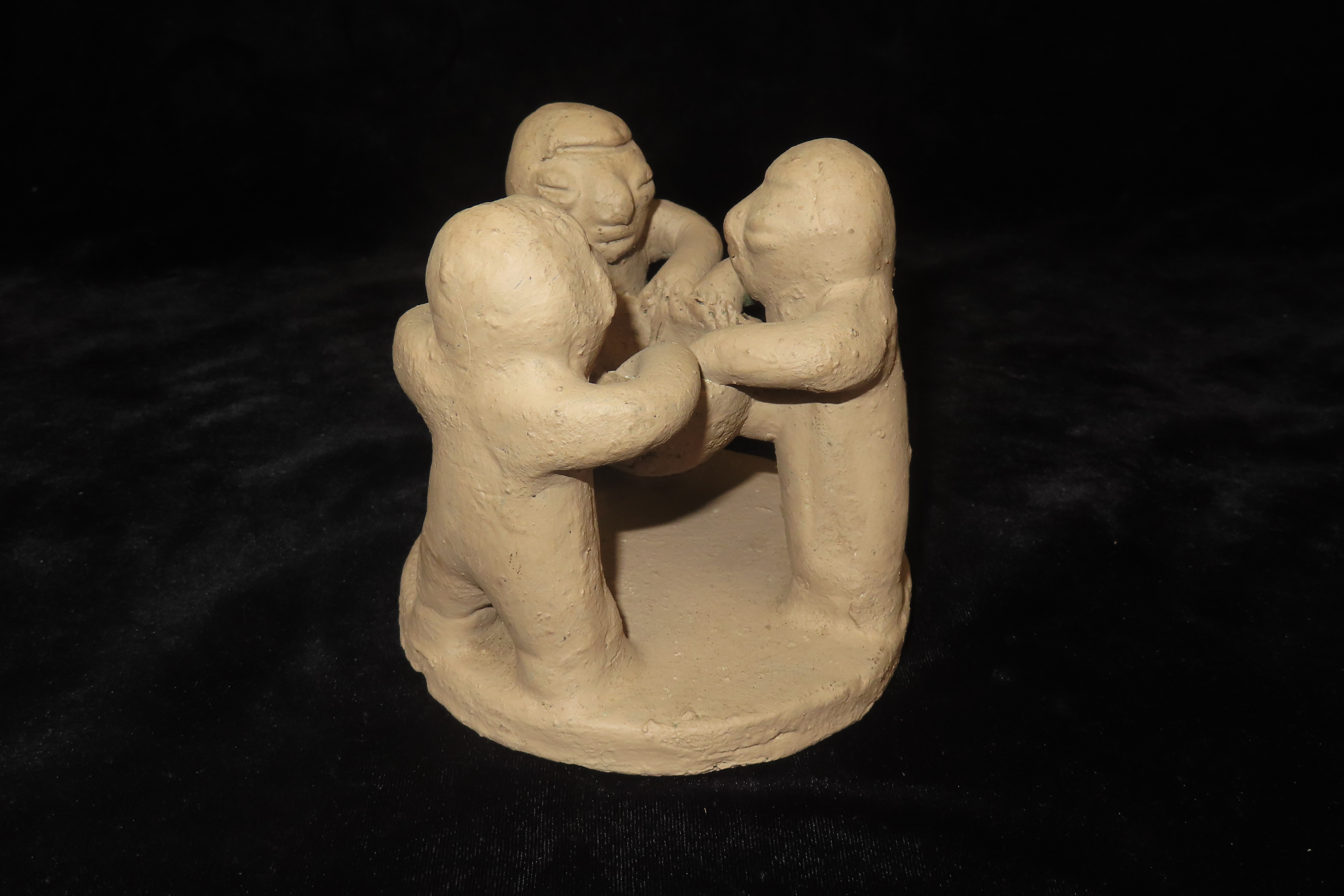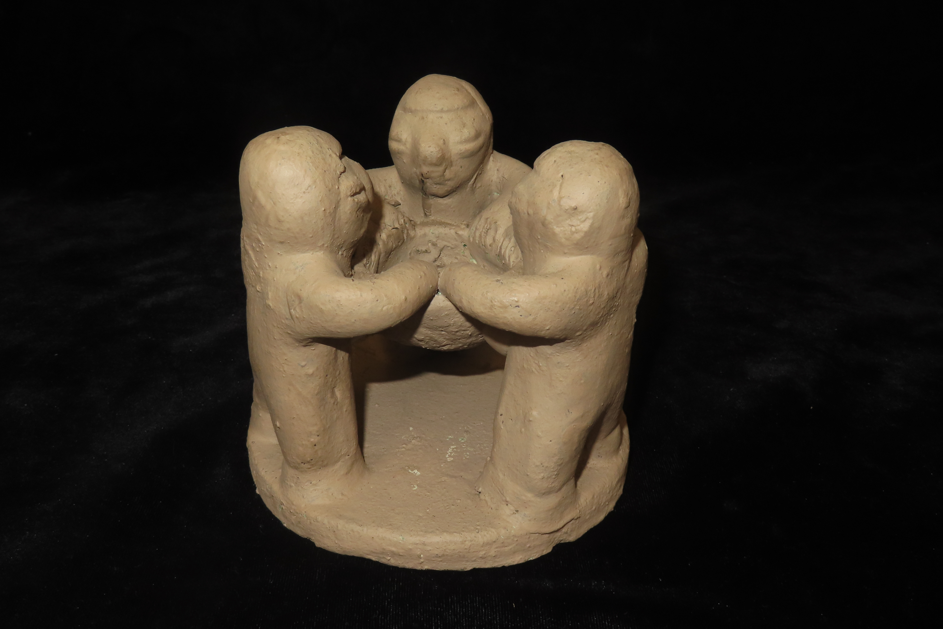4 1/2″ x 5″ Antique 1900 Clay Sculpture Circle of Friends Candle Holder