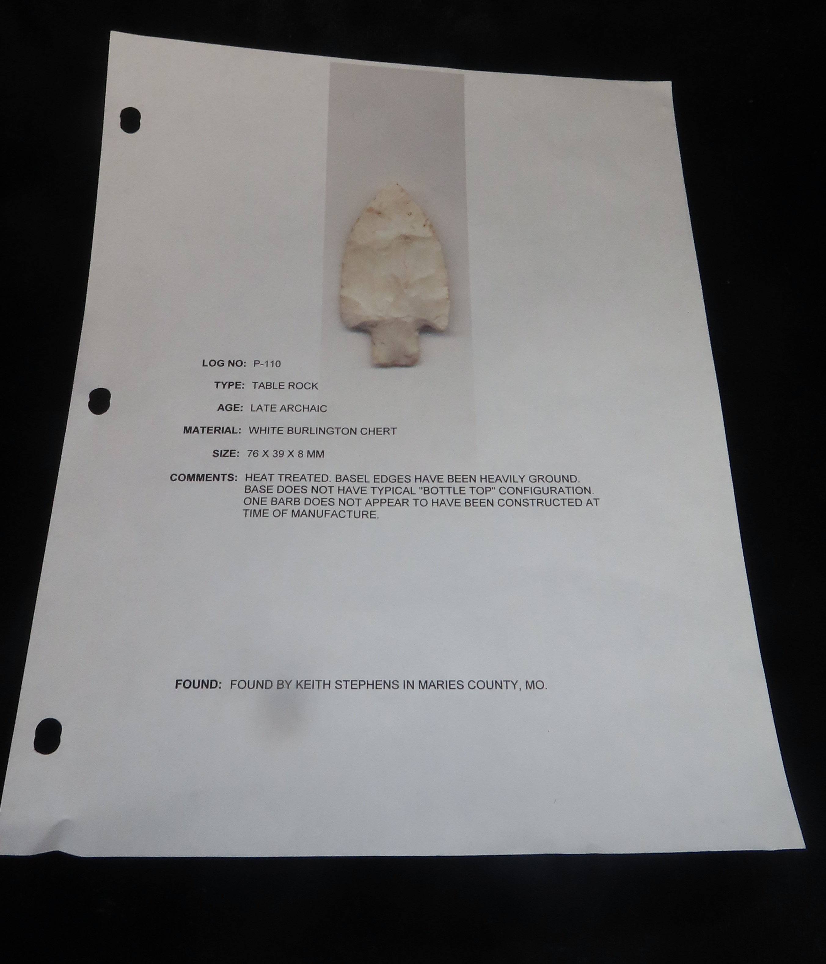 76mm x 39mm x 8mm Table Rock, White Burlington Chert, Maries County Missouri