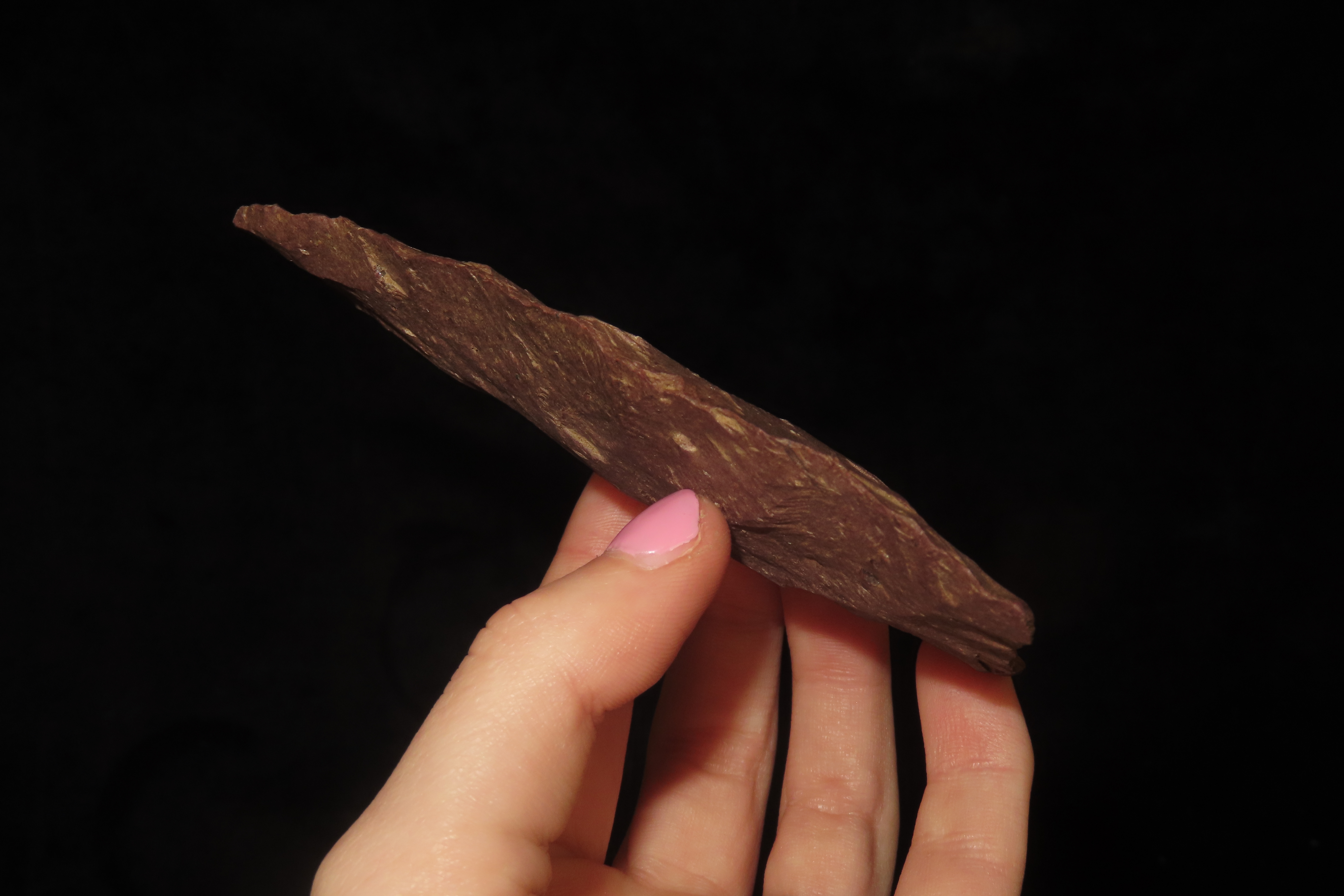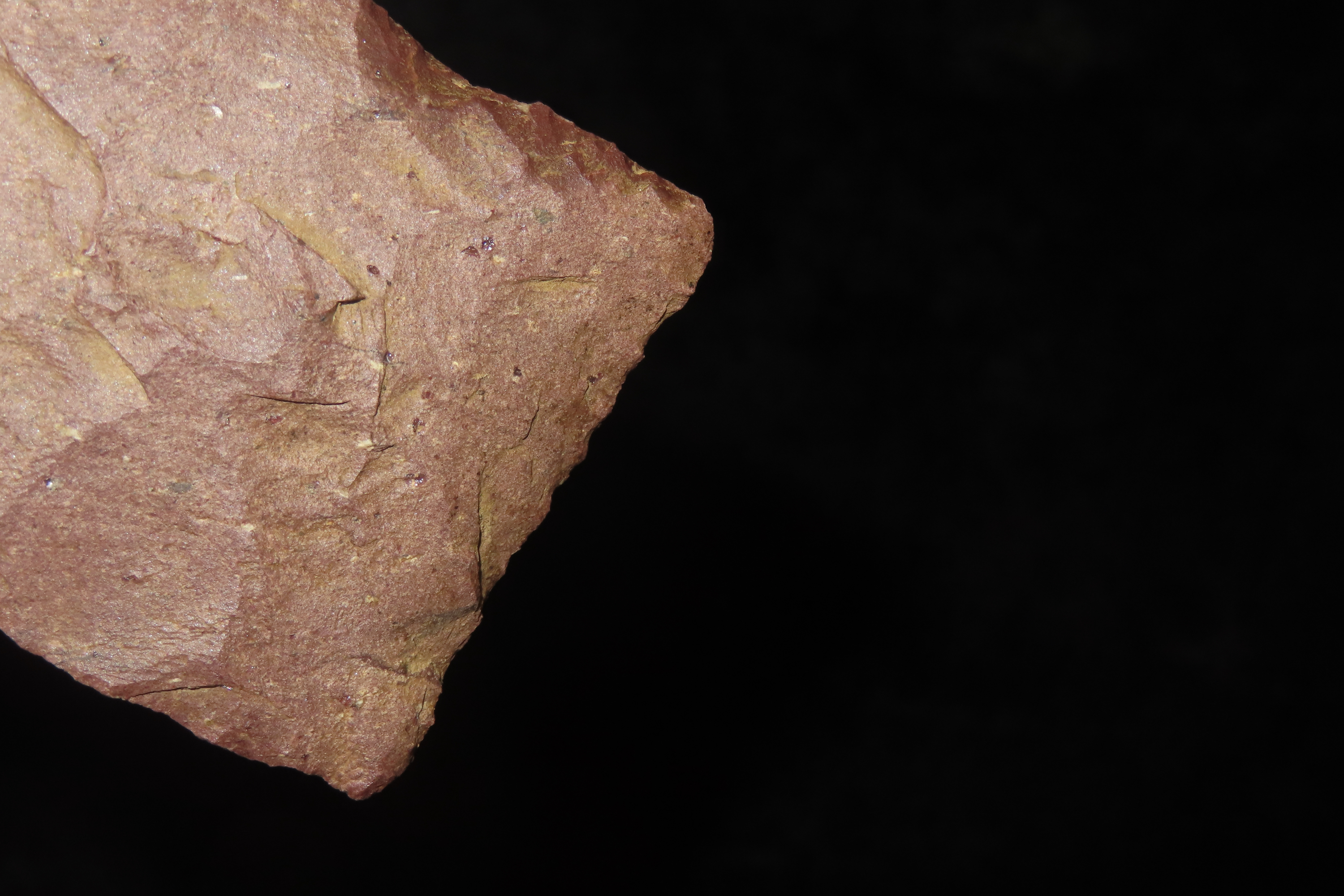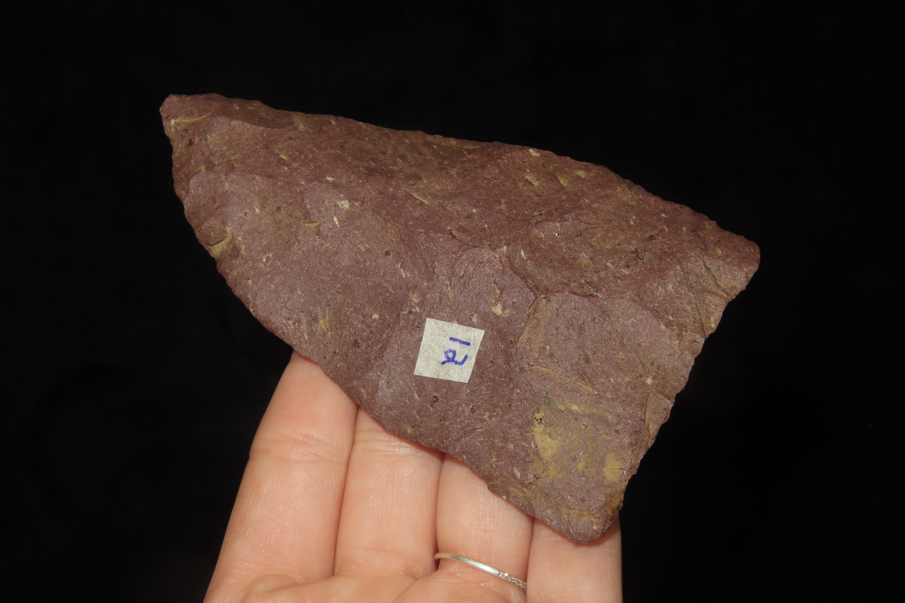 4 1/2″ Triangle, Made of Red Rhyolite, Found in S.E. Missouri, Ex George Robertson