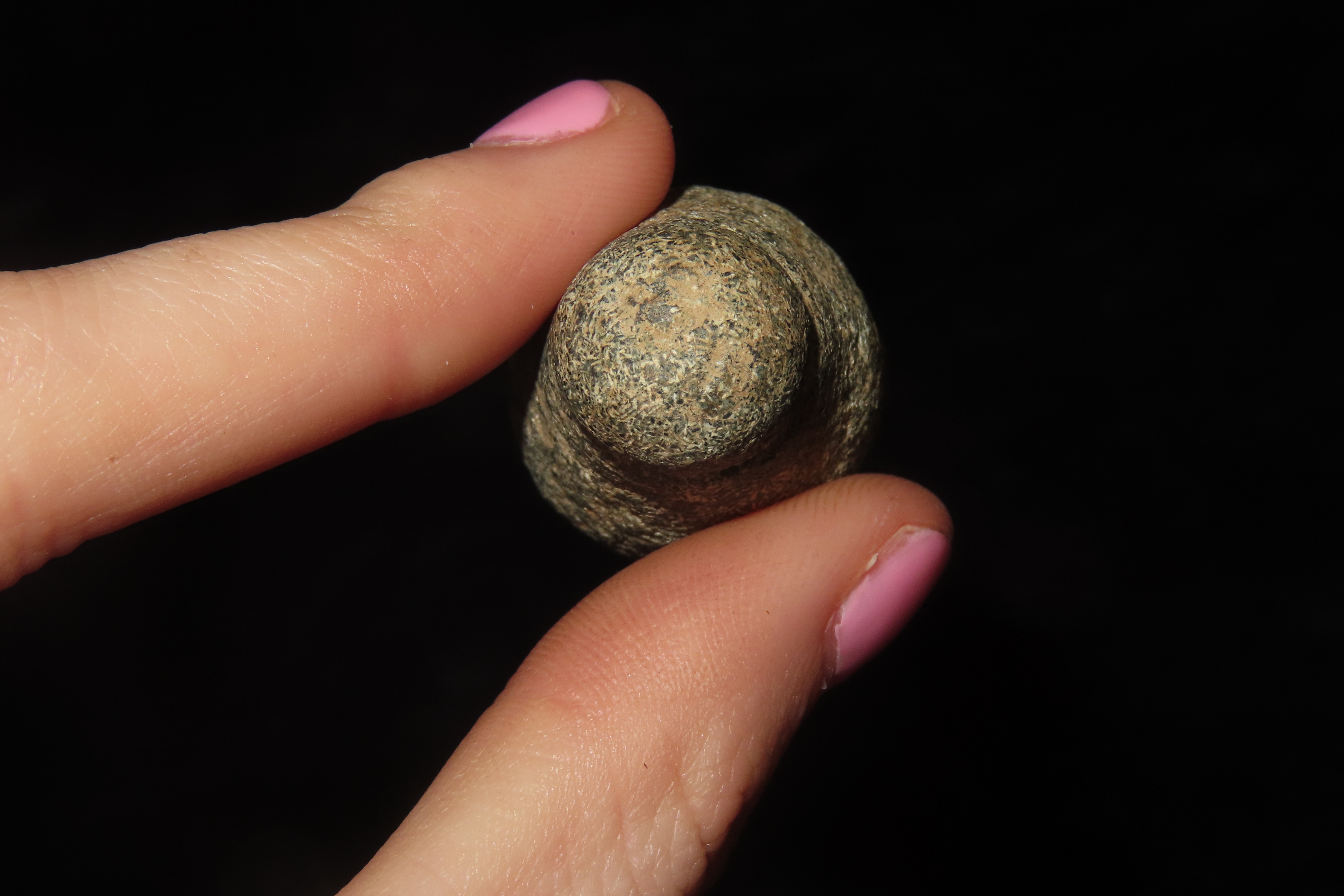1 11/16″ Granite Plummet, Grooved, Found in Randolph Co. Arkansas, Ex George Robertson
