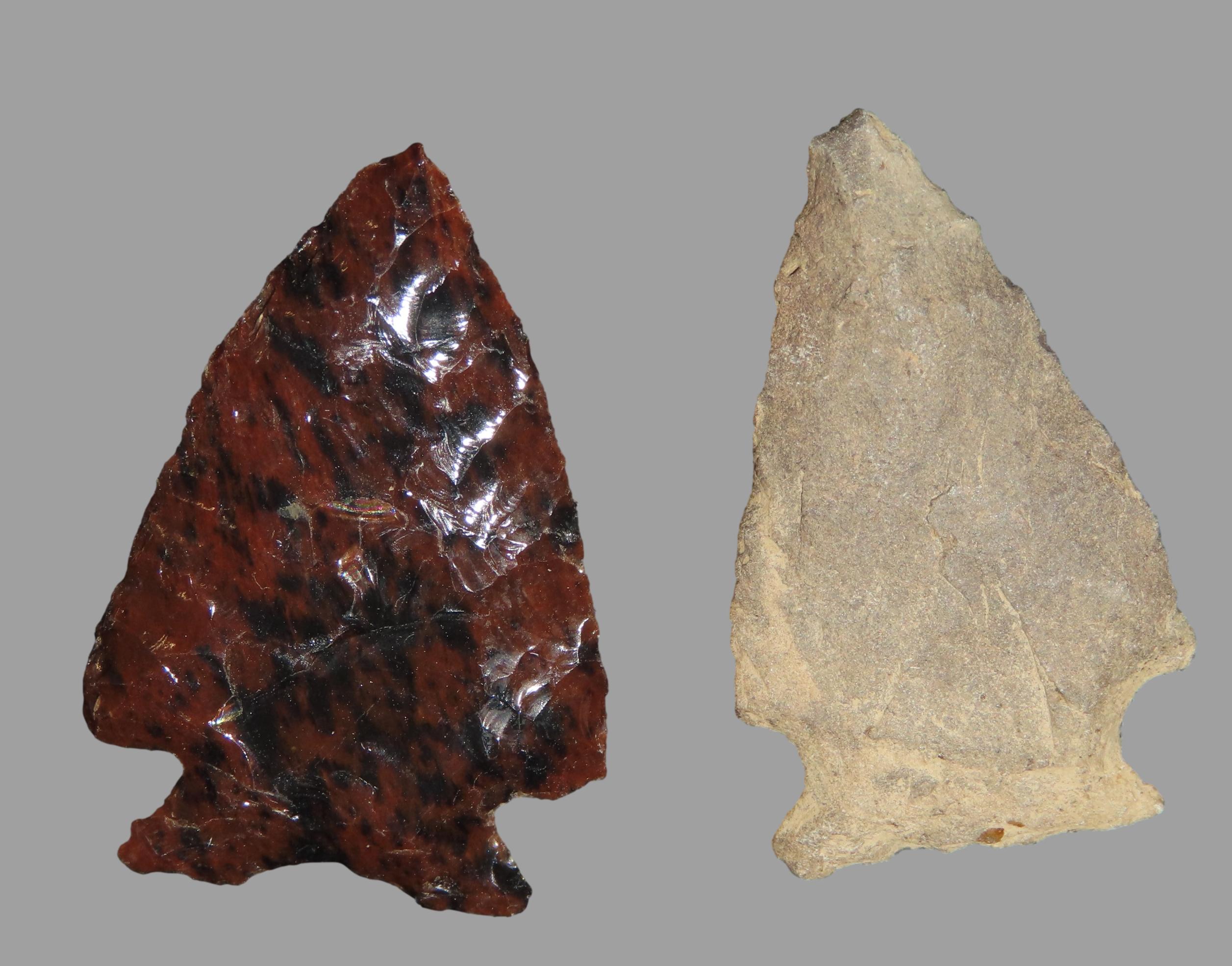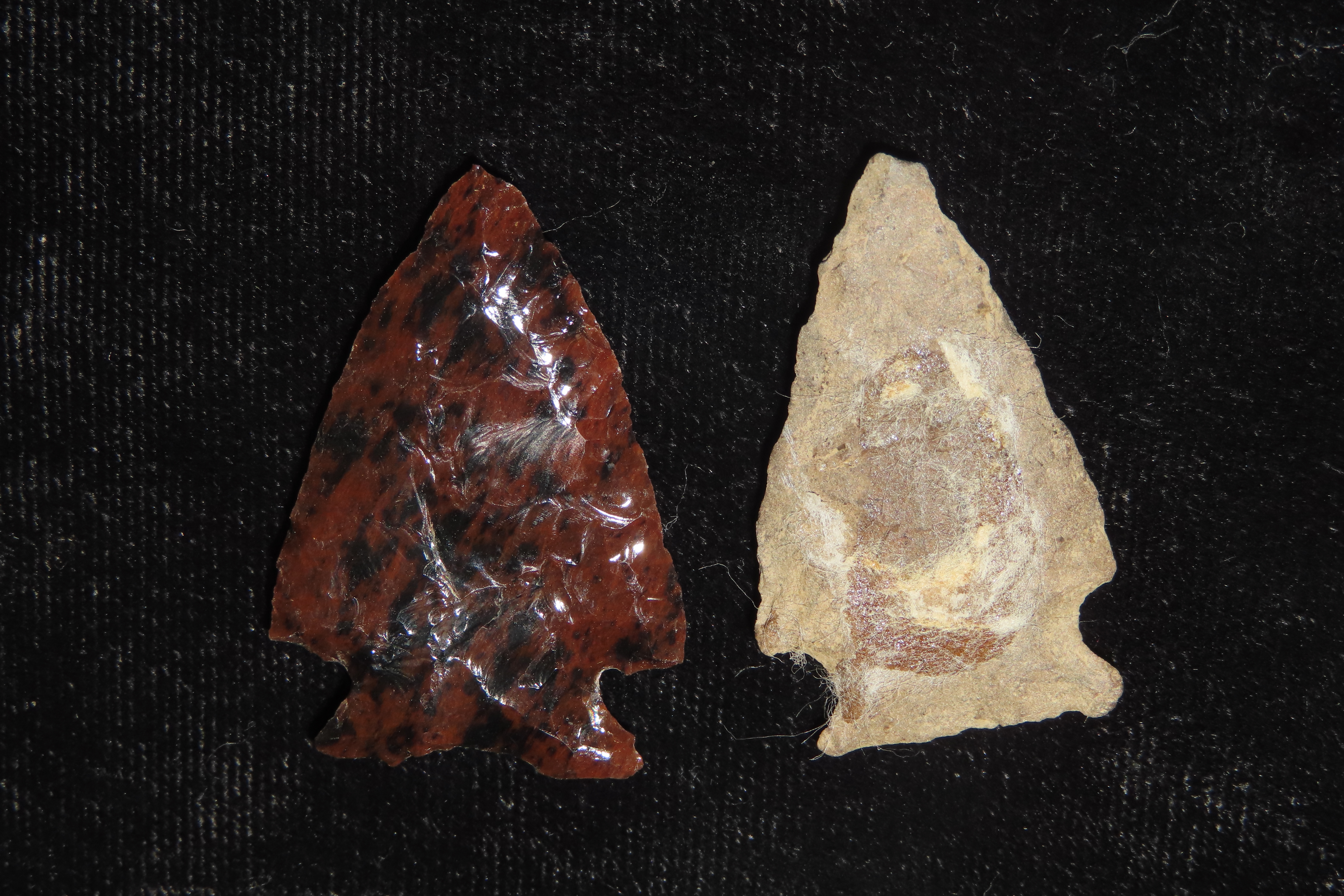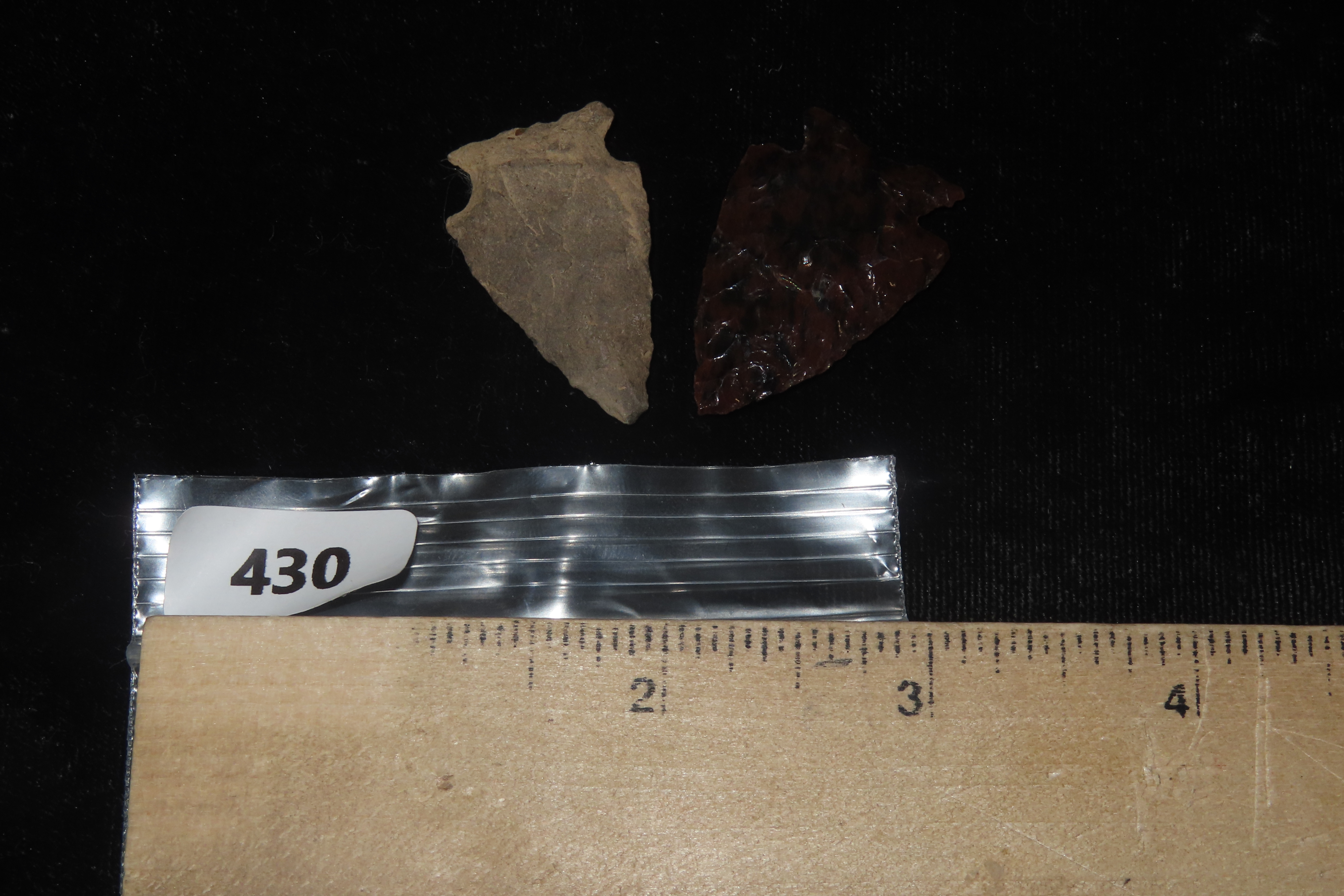 Group of 2 Fine Pelican Lake Arrowheads, Found in South Dakota, For Identification Reference Overstreet 10th or 12th Edition Pg.942