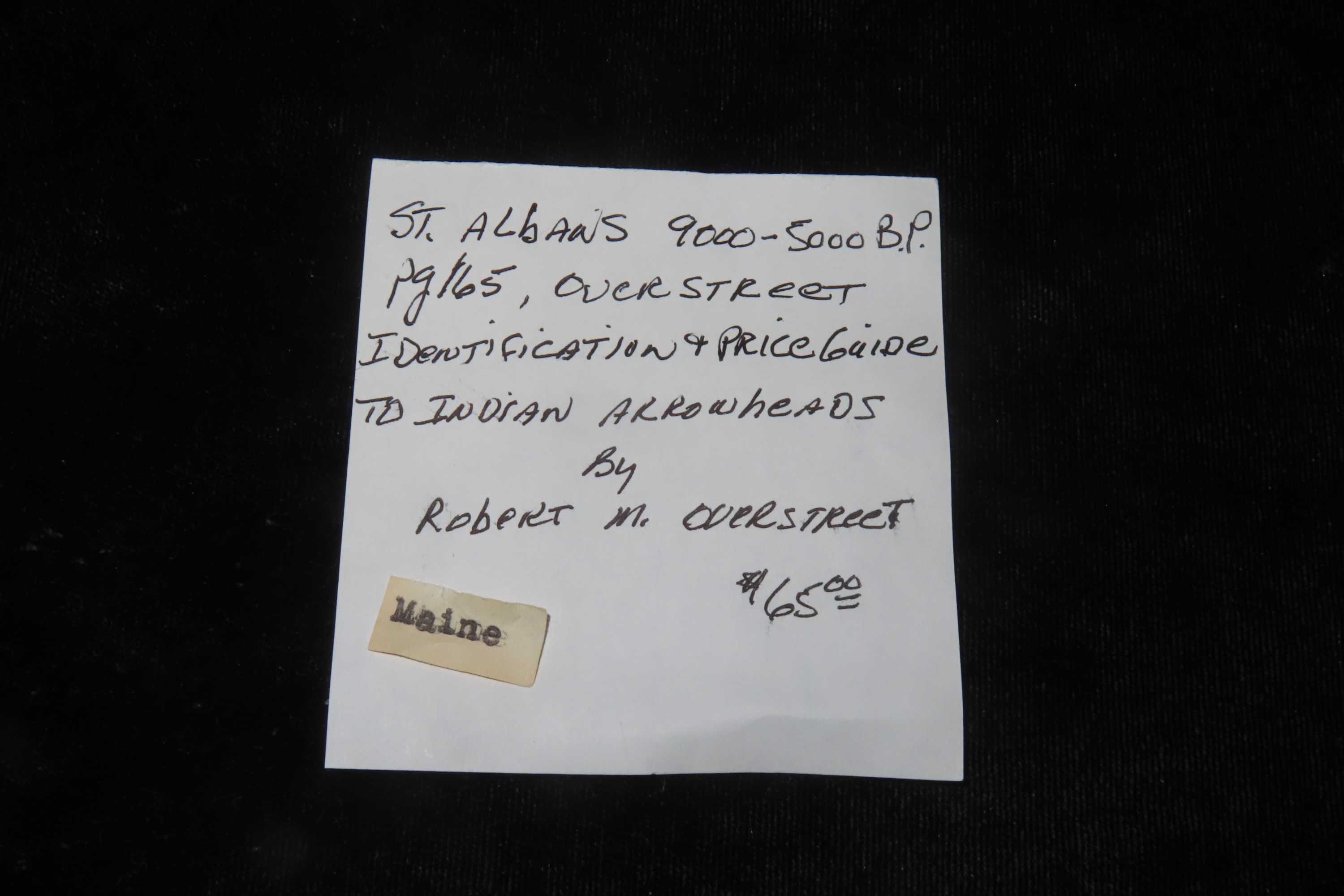 2 1/8″ Saint Albans Arrowhead, Found in Maine, For Identification Reference Overstreet 10th Edition Pg. 165