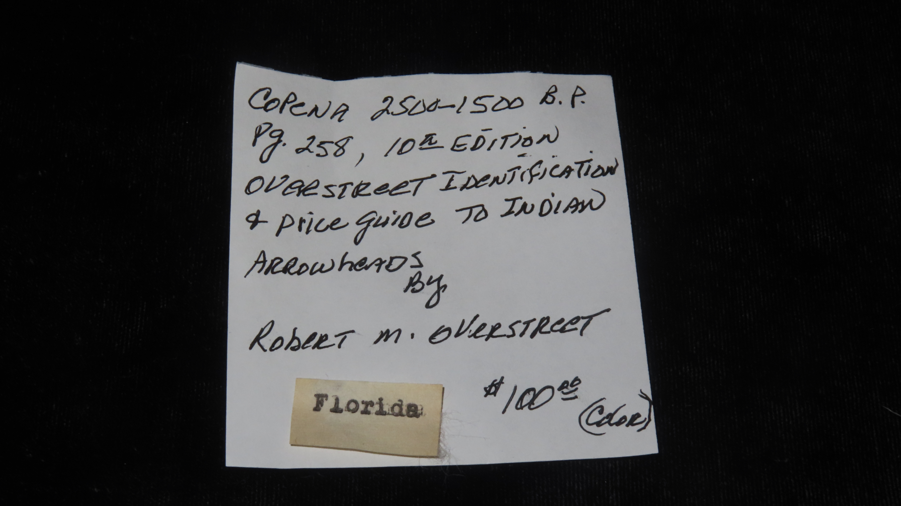 2 1/8″ Copena, found in Florida, 2500-1500 BP, For Identification Reference Overstreet 10th Edition Pg. 258