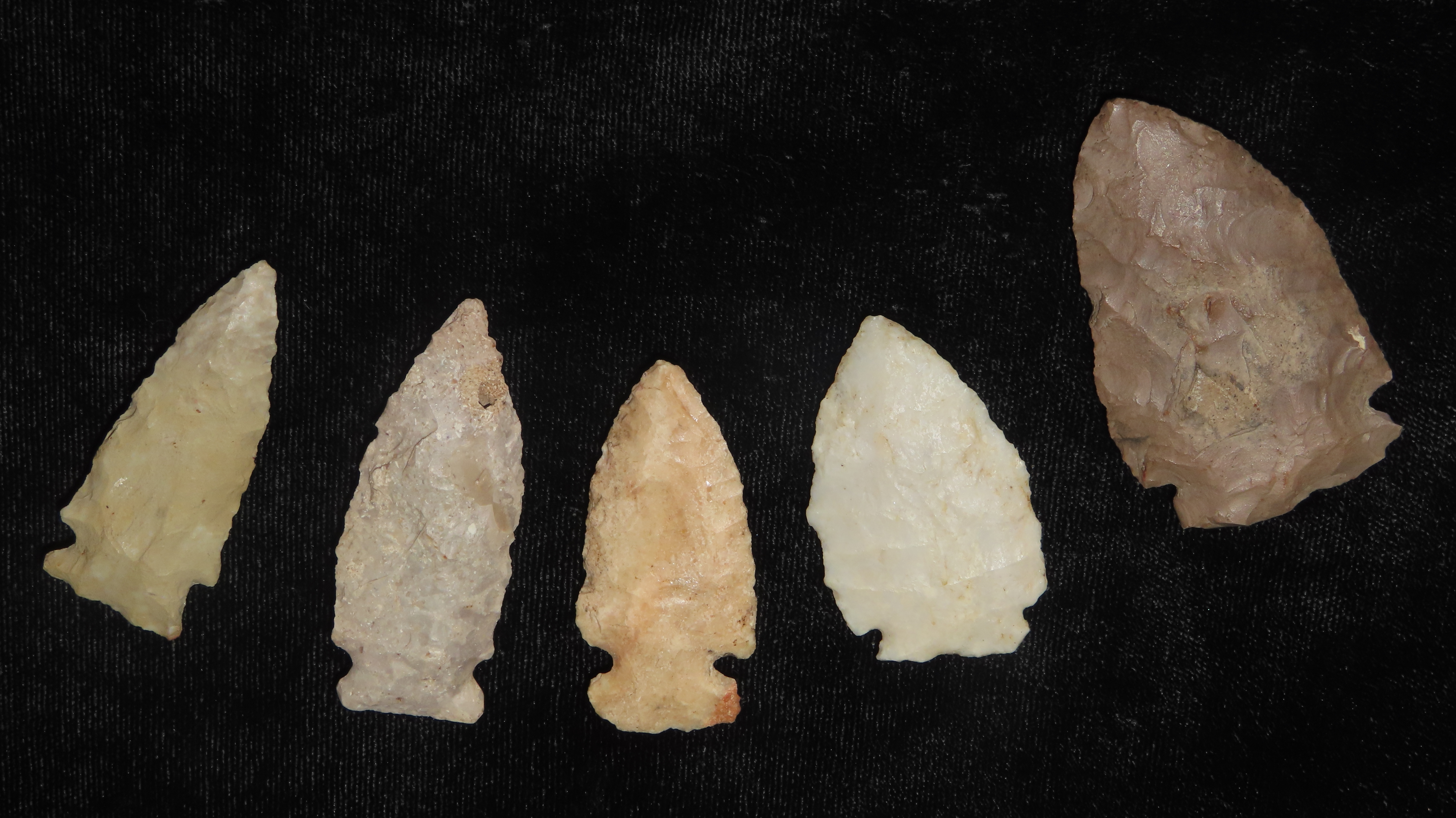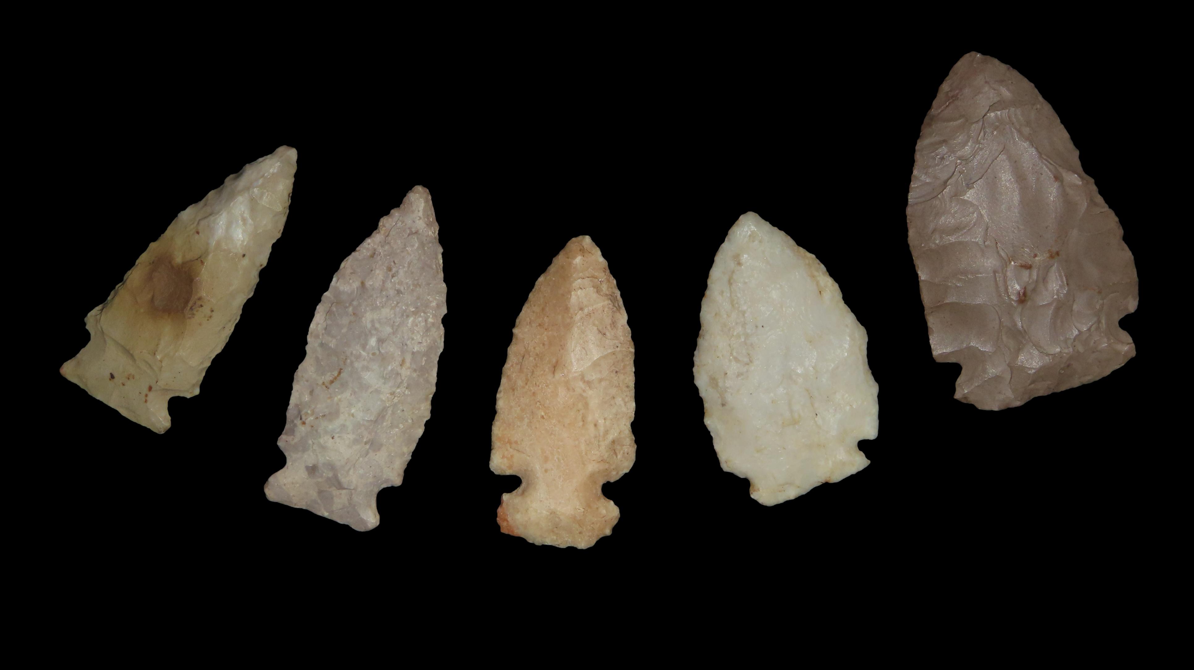 Group of 5 Robinson Pts, Late Archaic, 4000-3000 BP., For Identification Reference Overstreet 12th Edition Pg. 808