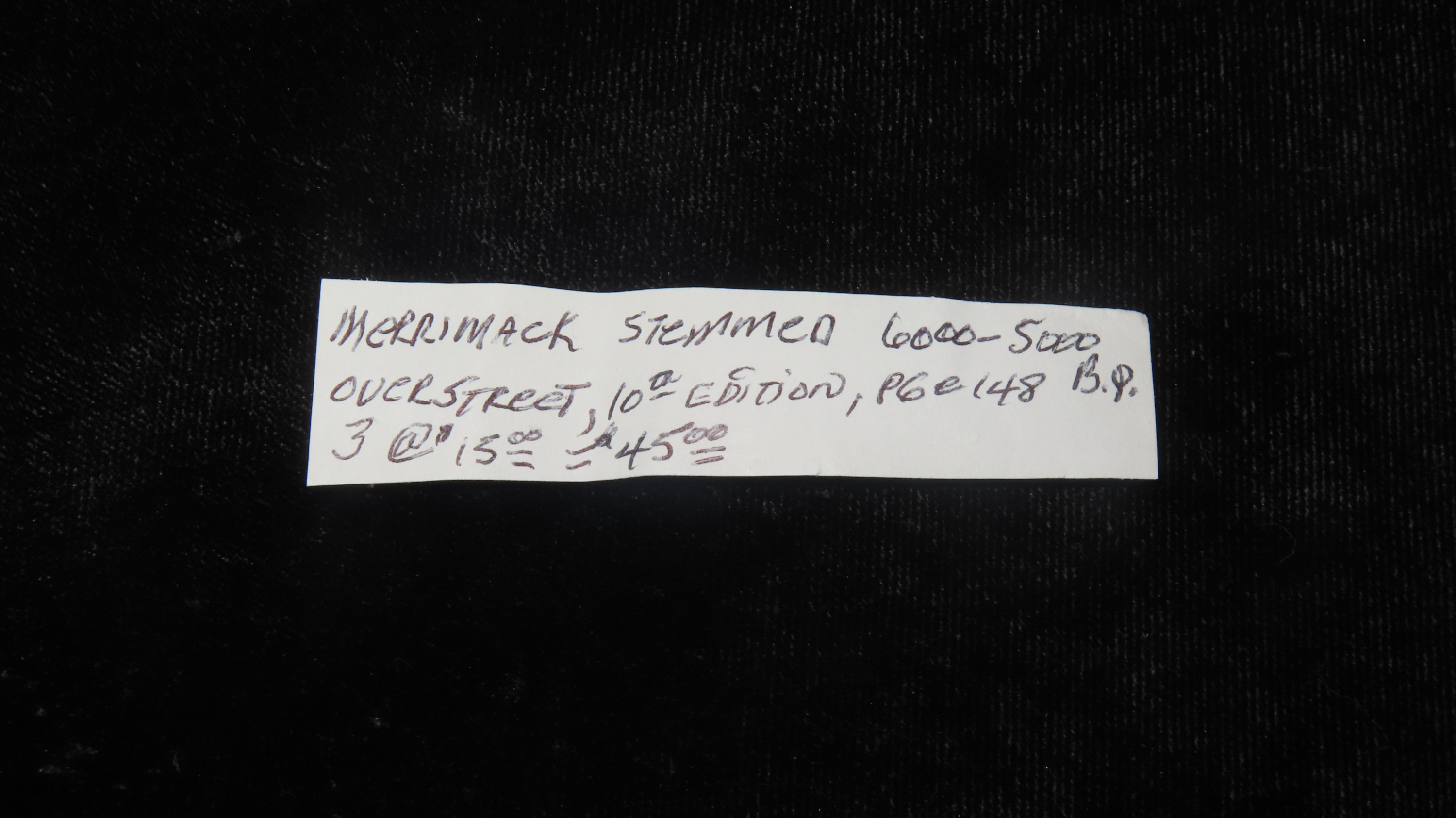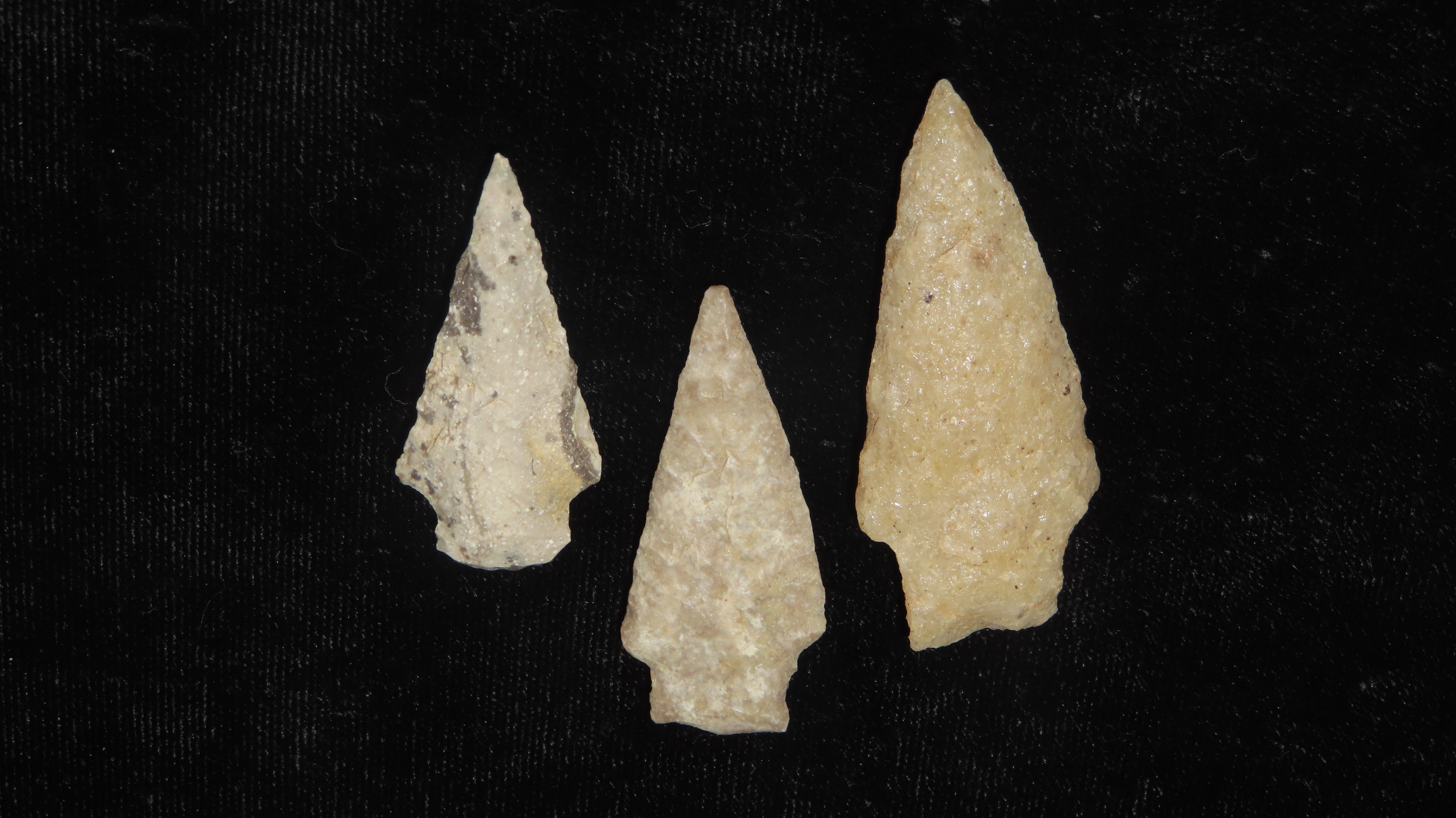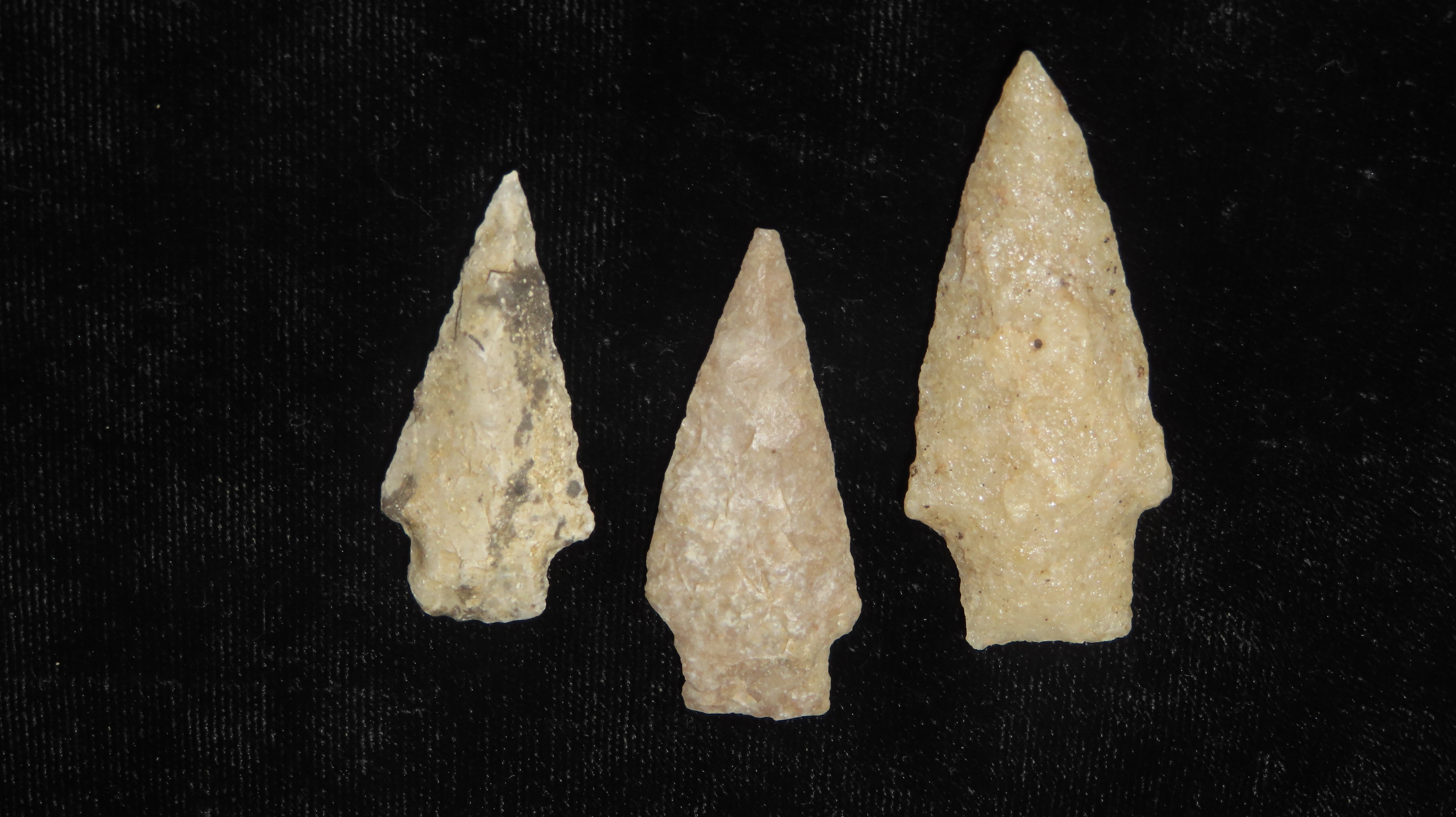Group of 3 Merrimak Stemmed Pts., 6000-5000 BP, For Identification Reference Overstreet 10th Edition Pg. 148
