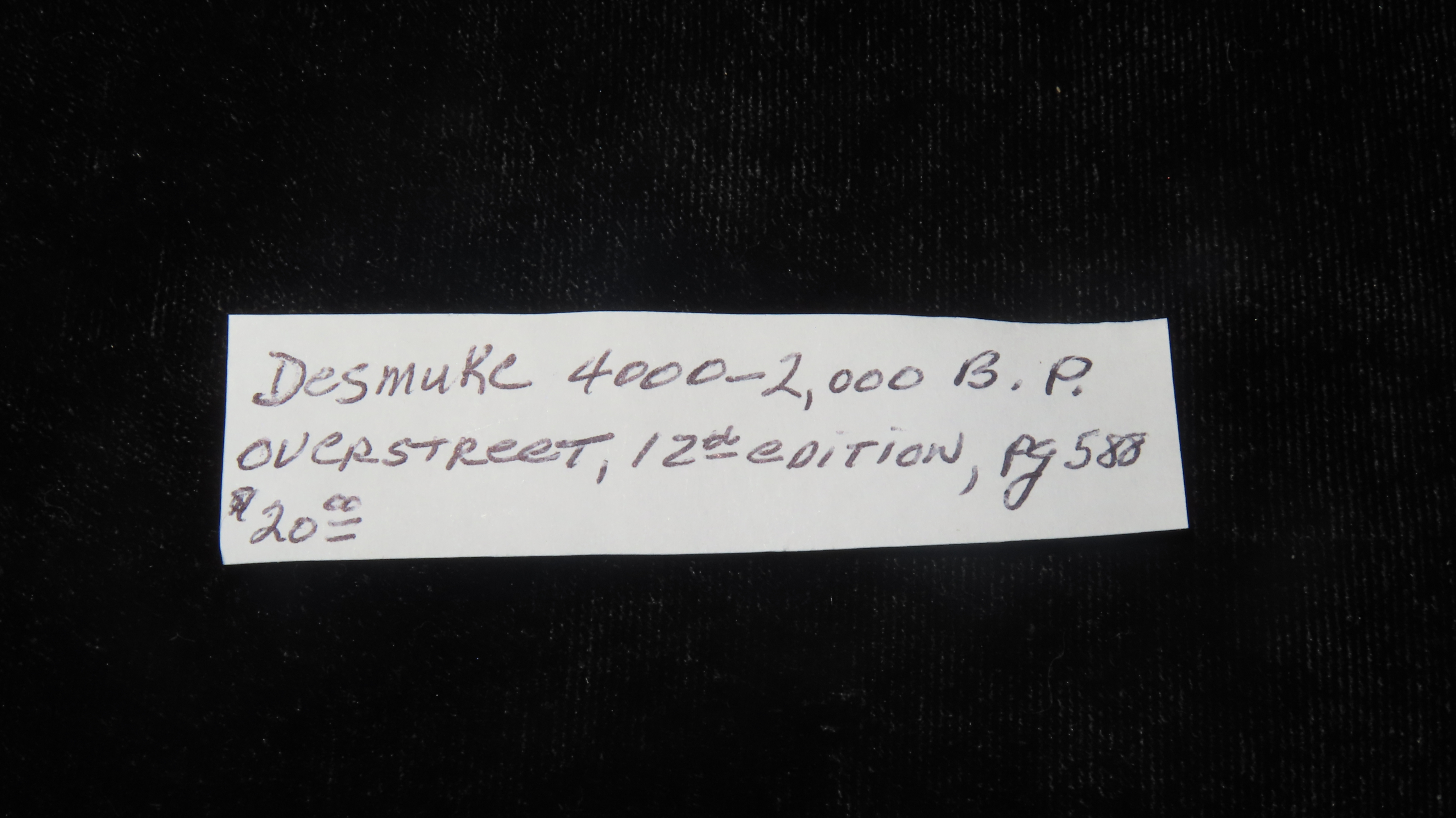 1 1/2″ Desmuke Pt, 4000-2000 BP, For Identification Reference Overstreet 12th Edition Pg. 588