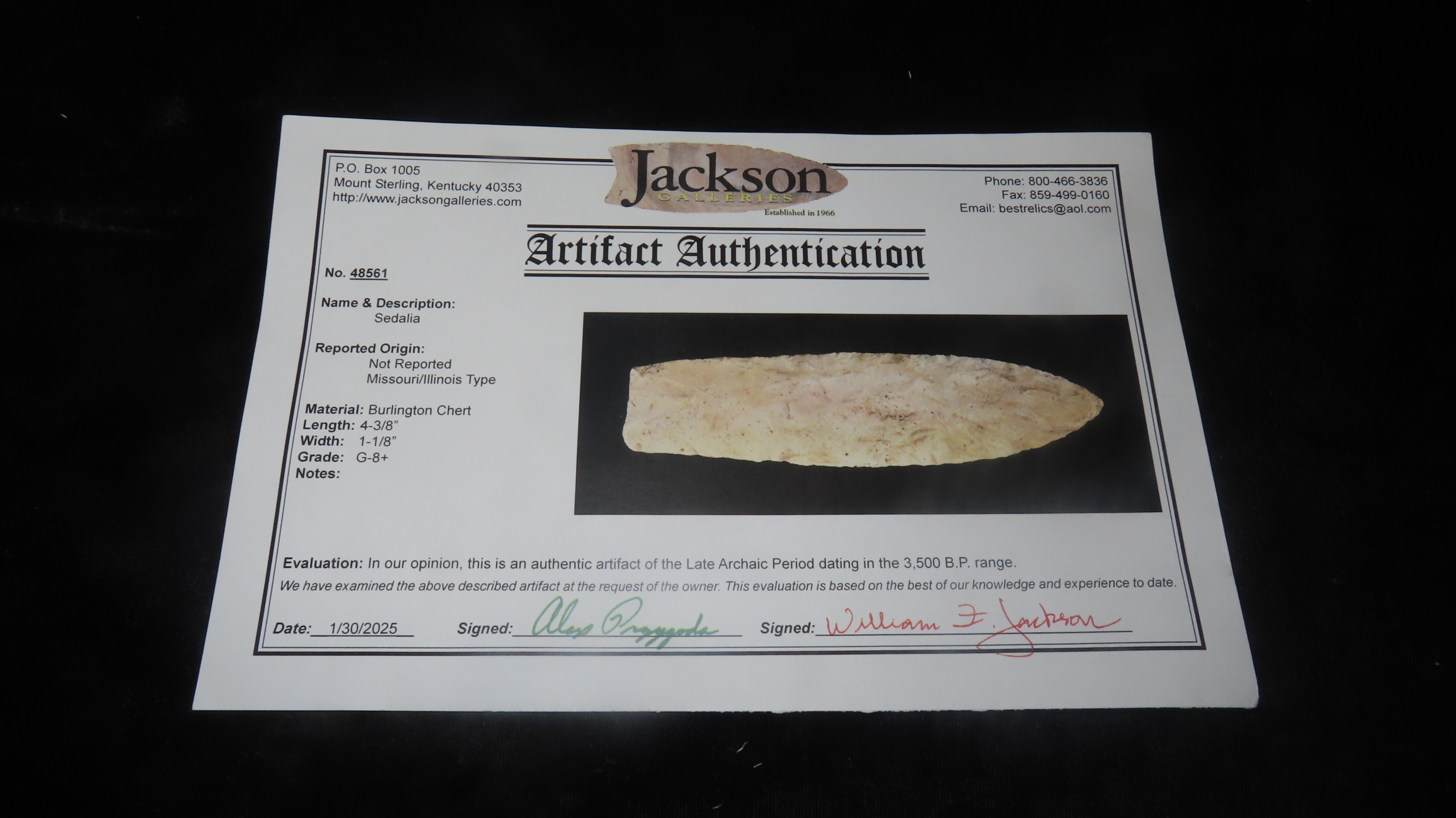 4 3/8″ Sedalia, Jackson COA, Found in Missouri / Illinois