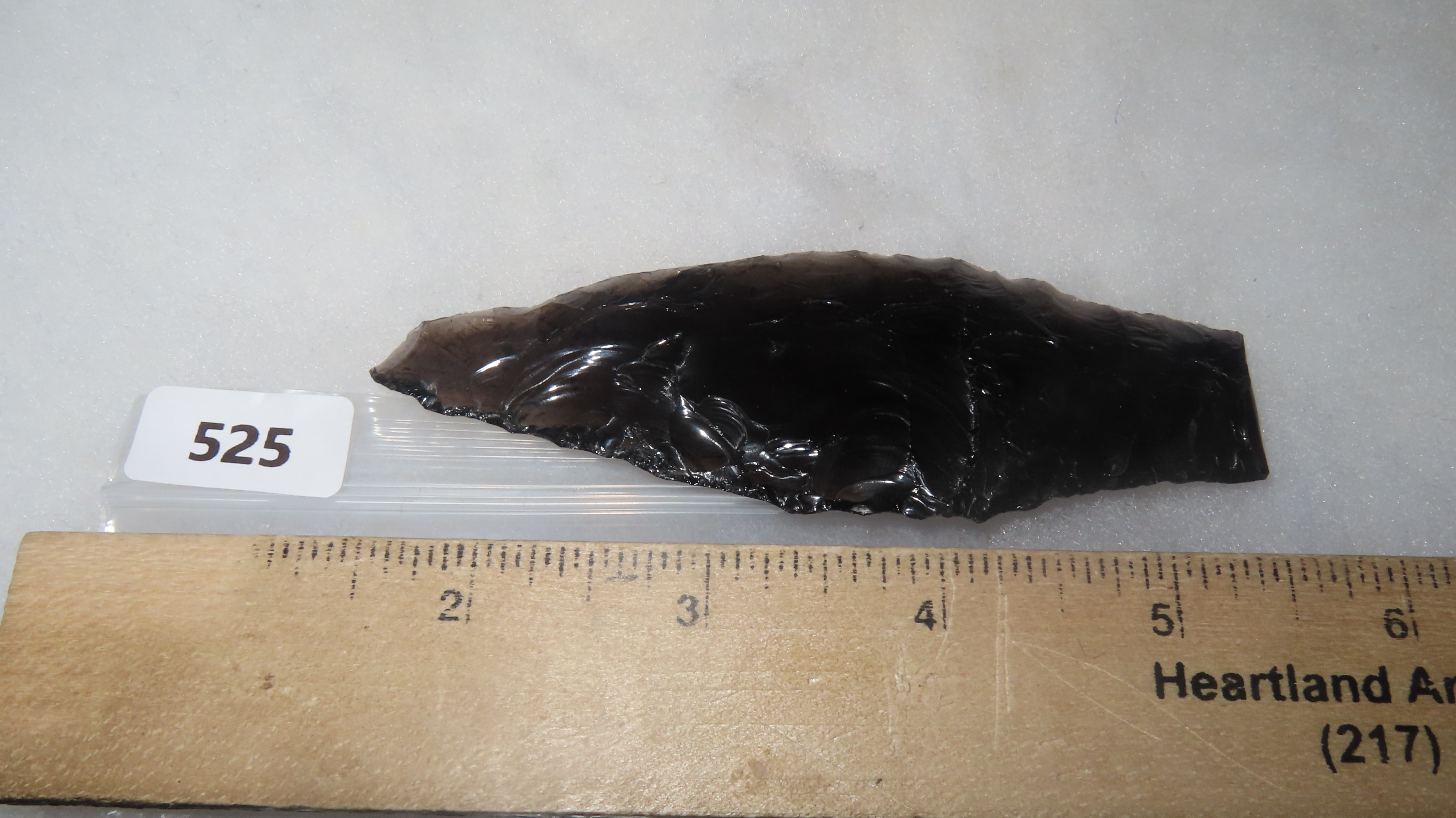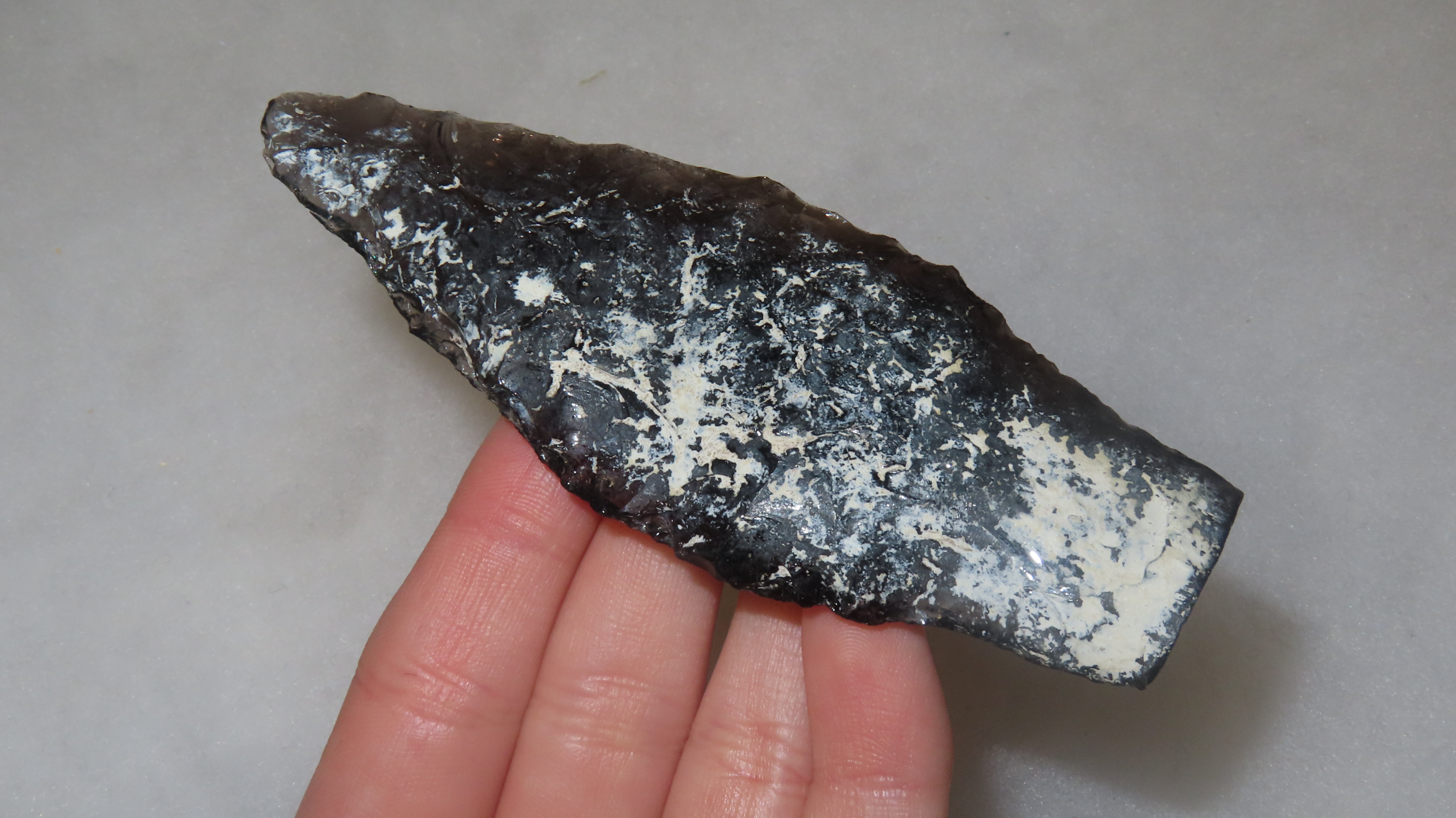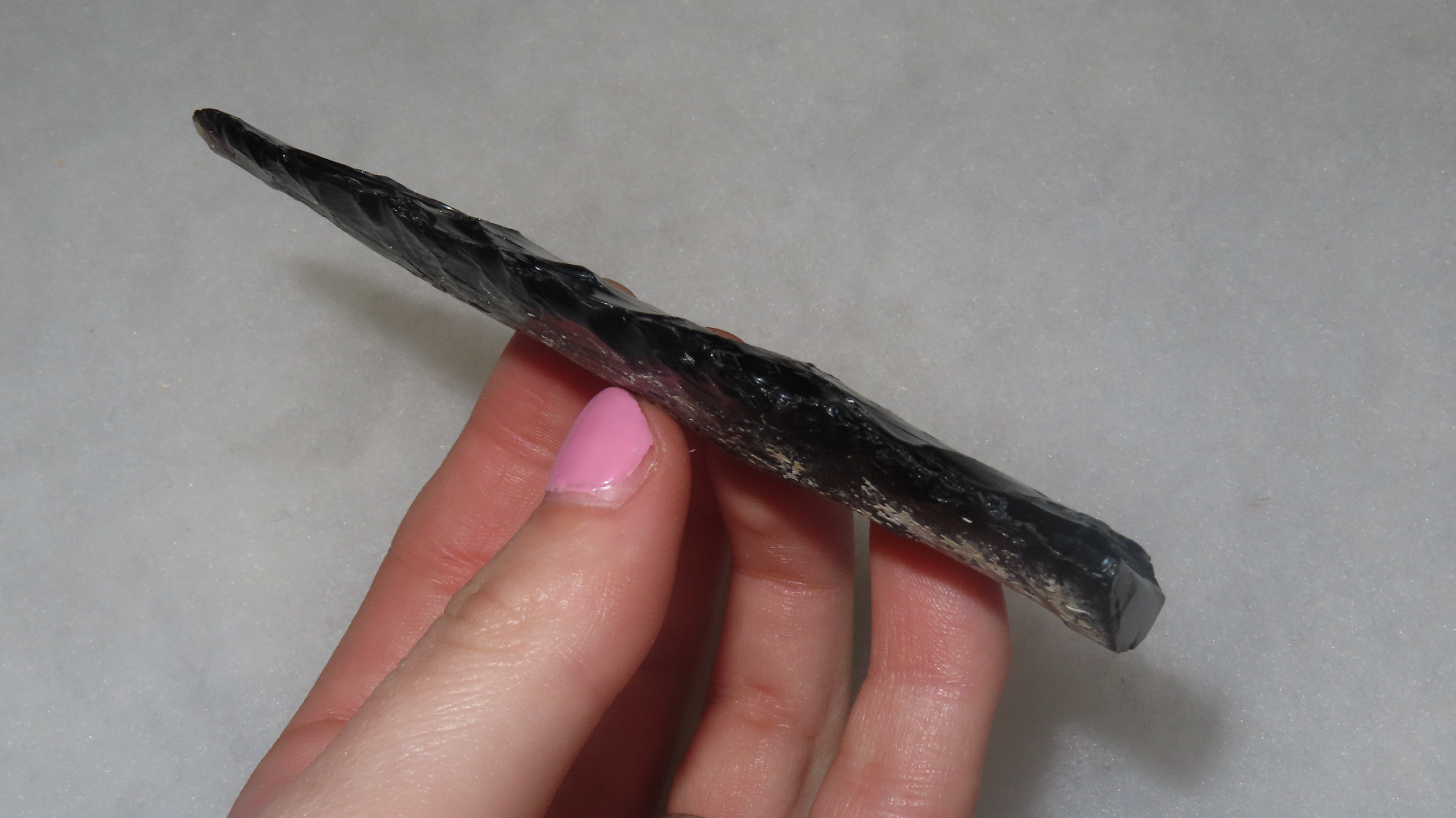 4 1/4″ Obsidian Blade, Broken Base, Found in Cougar Mountain