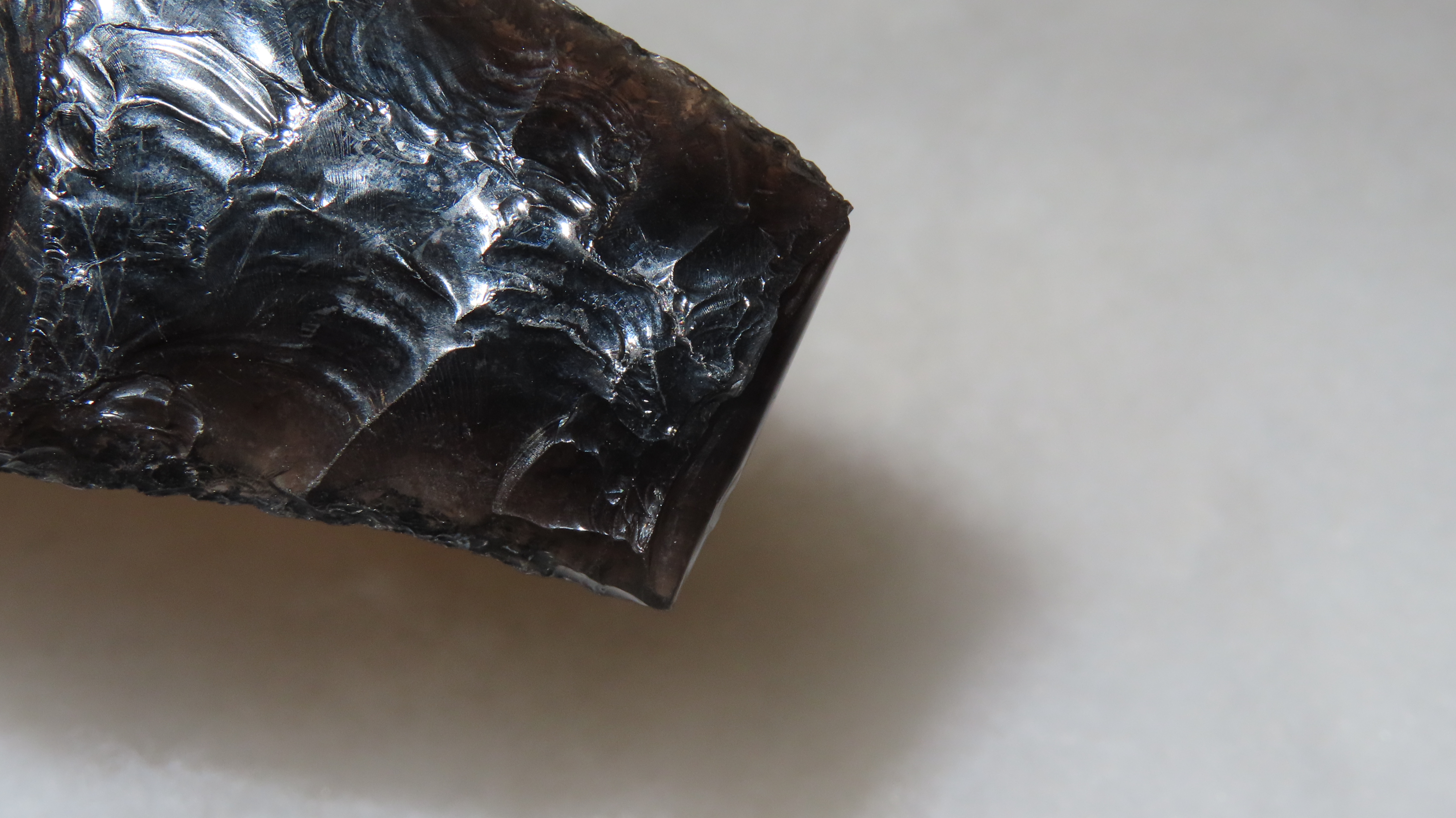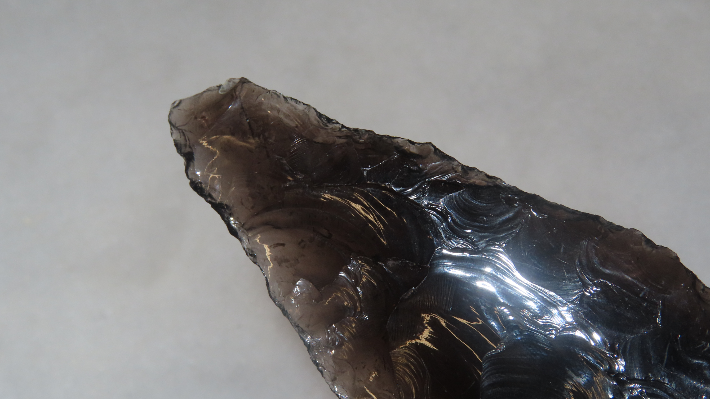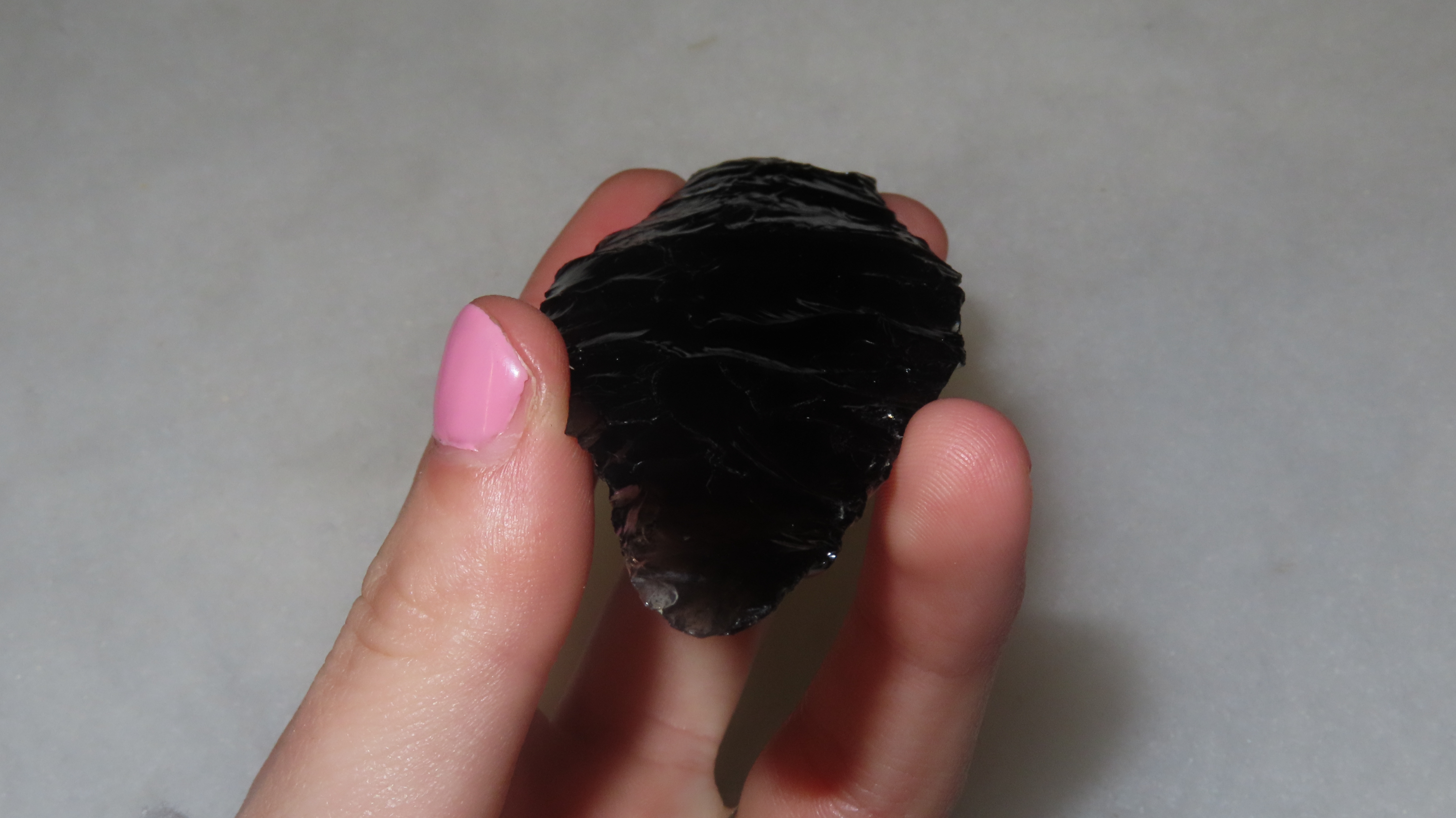 4 1/4″ Obsidian Blade, Broken Base, Found in Cougar Mountain