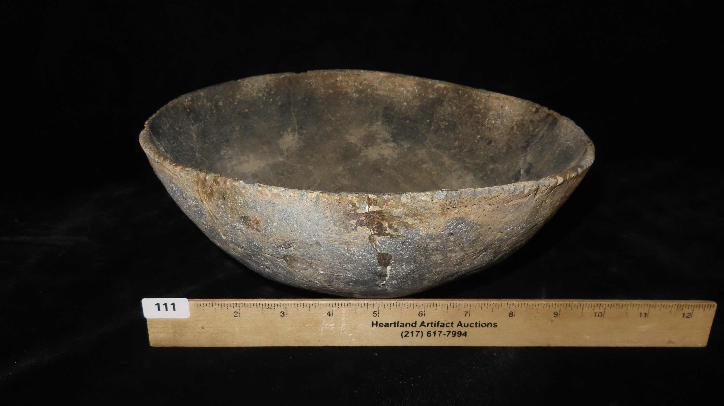 10 1/2″ Diameter, Bowl, Pie Crust Pottery, Restored, New Madrid Co., Missouri