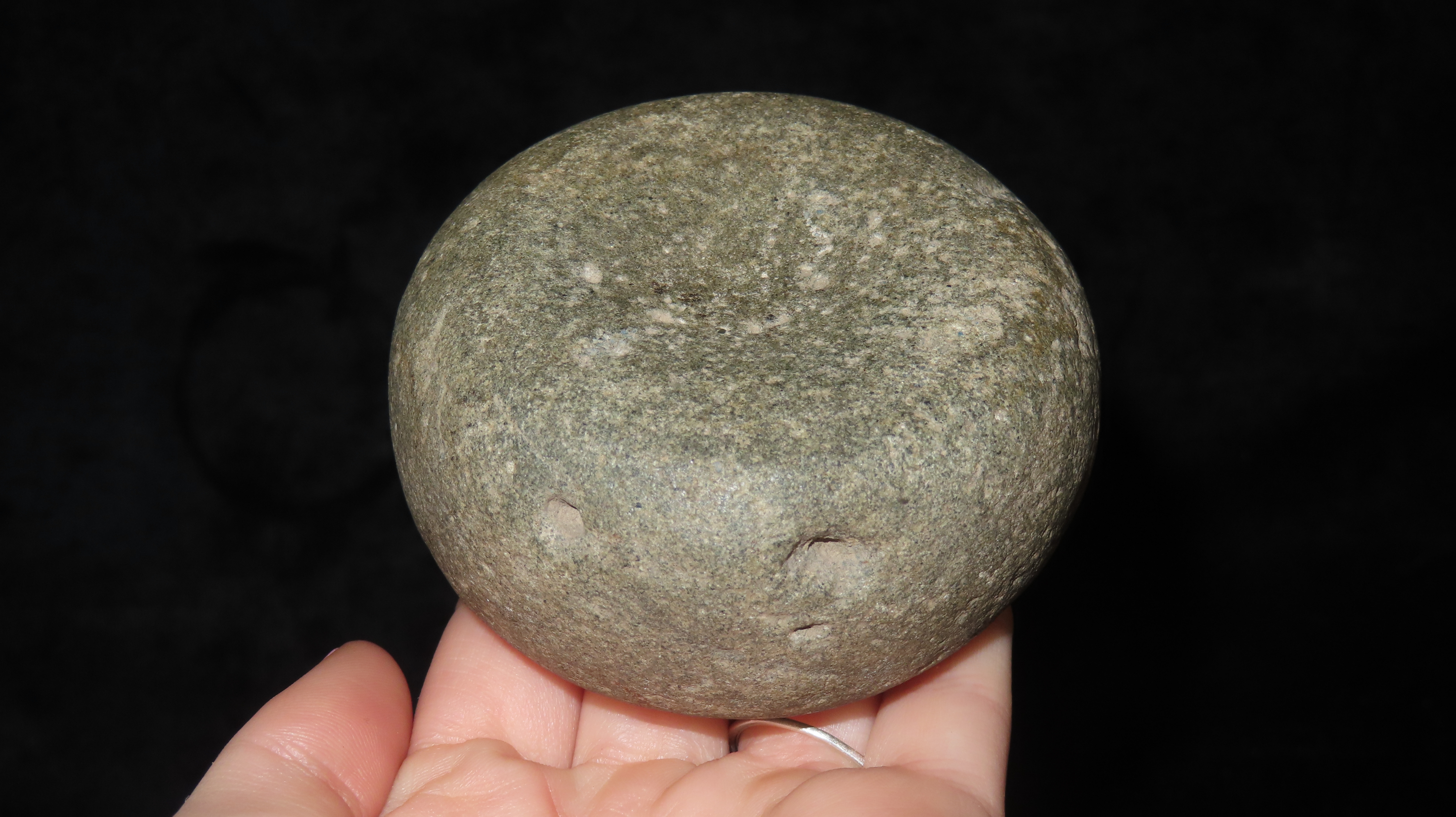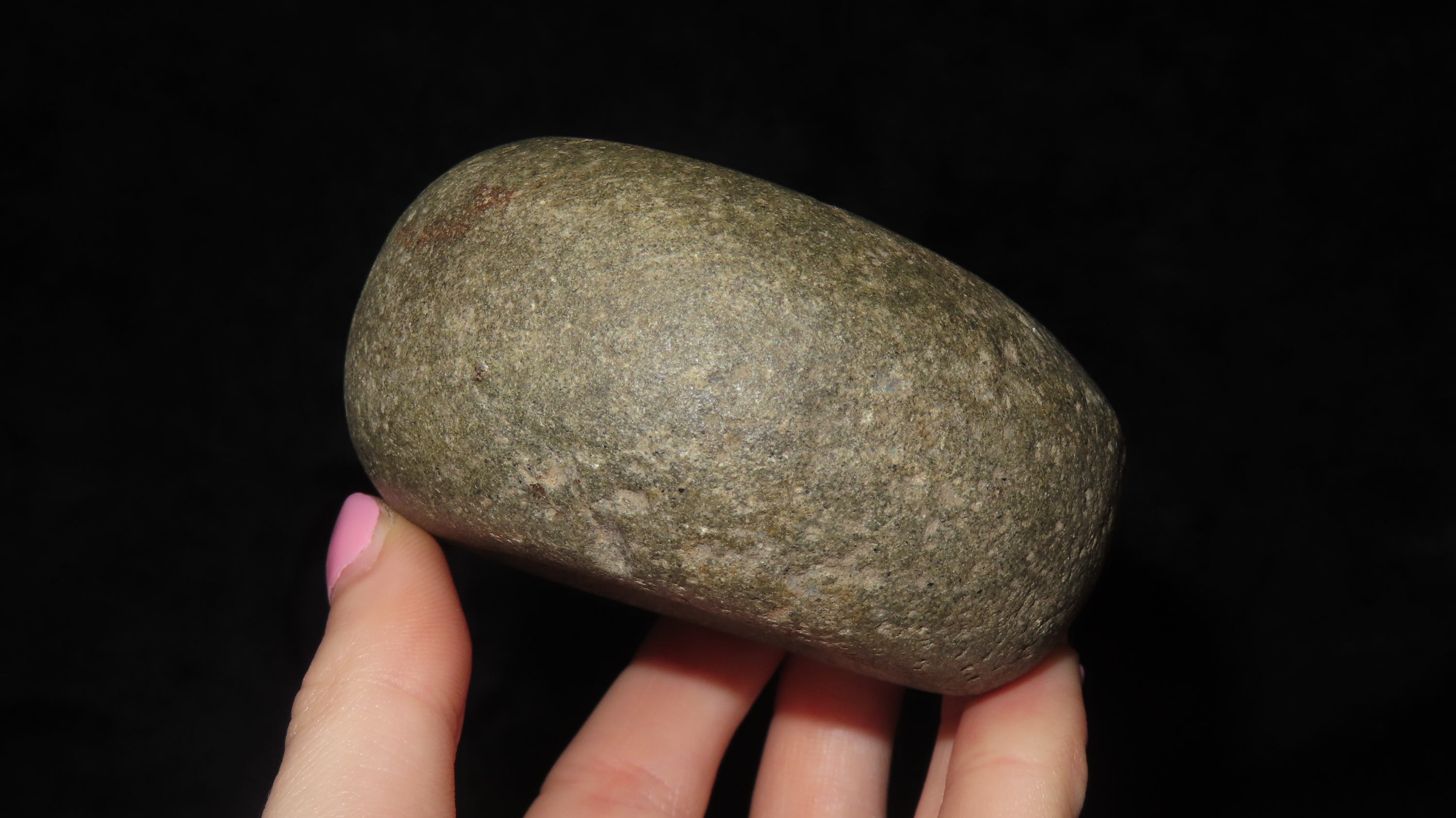 3 x 1 7/16″ Discoidal, Green Colored Granite, Adams Co., Illinois, COA Motley and Leithoff