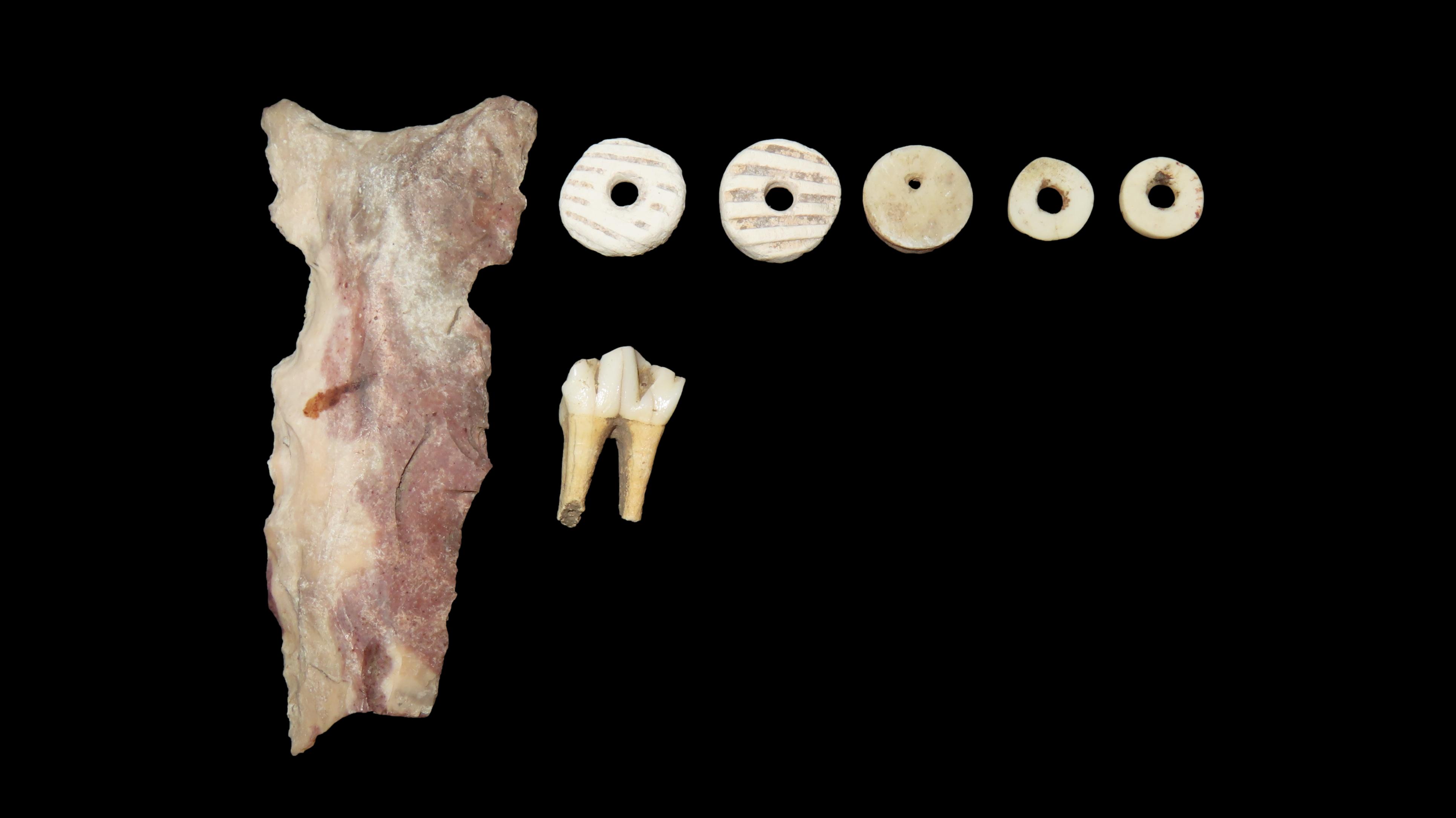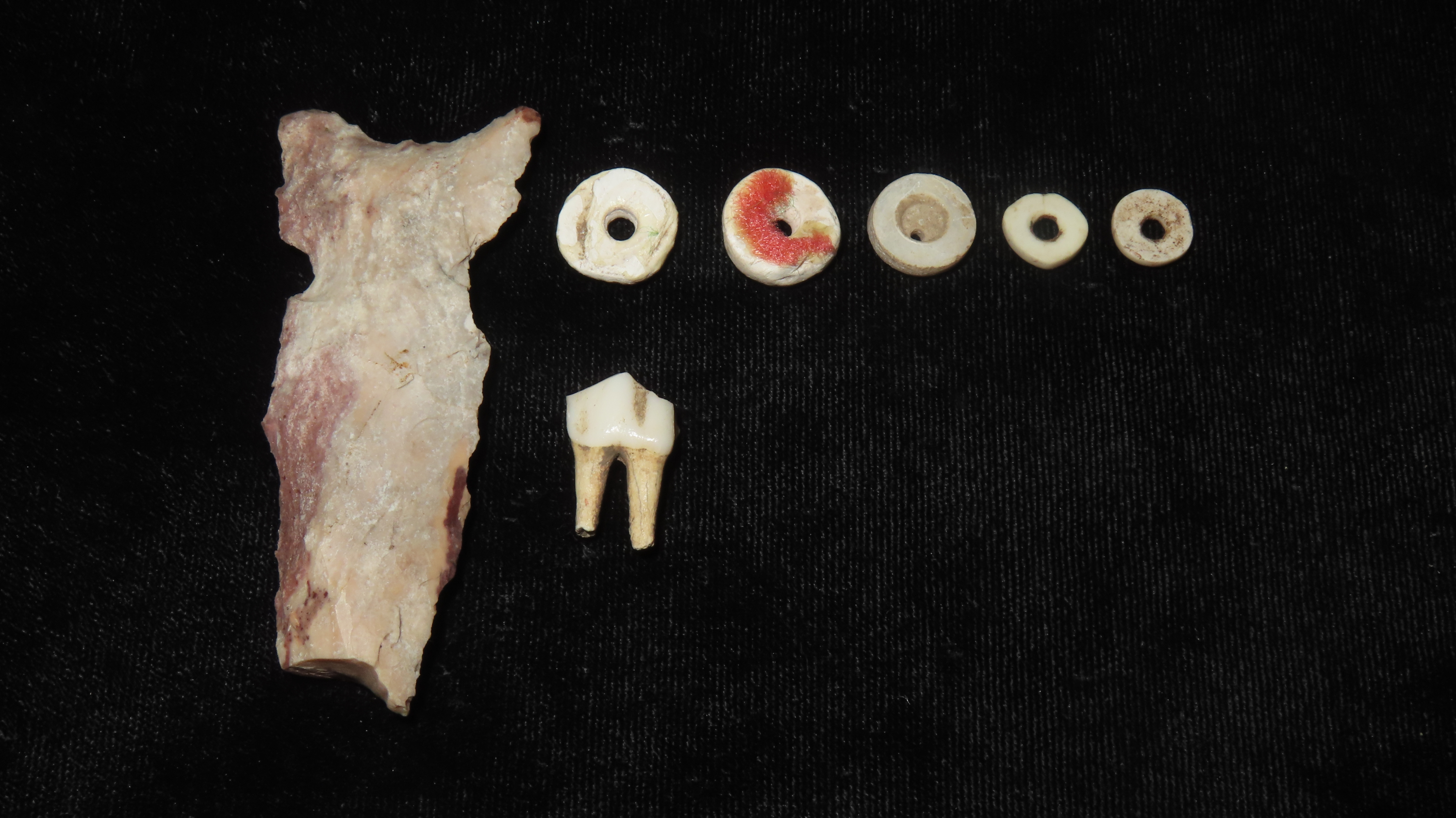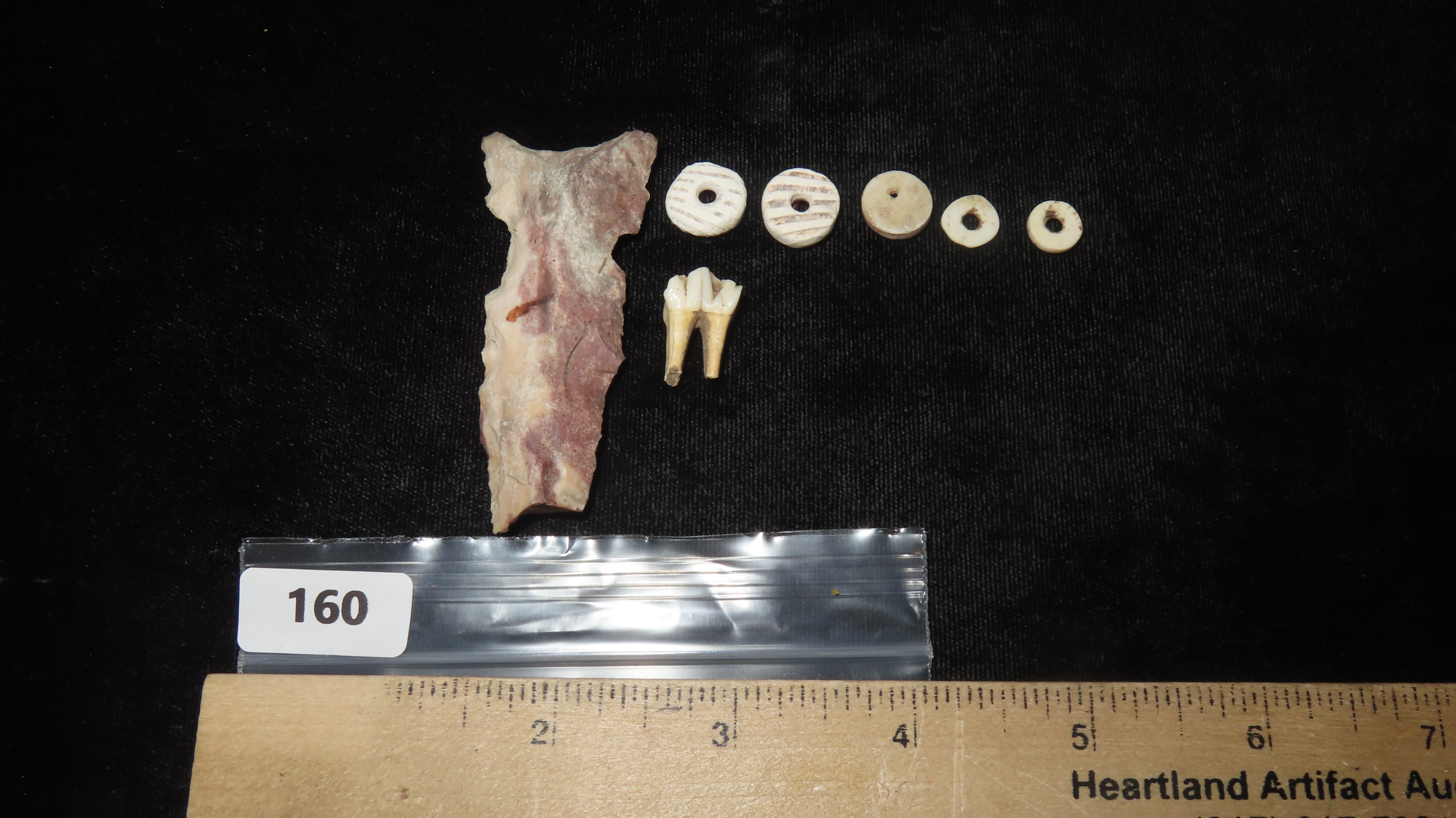 Cache of an Point, Beads, and tooth, Dug from a shelter in Western Kentucky