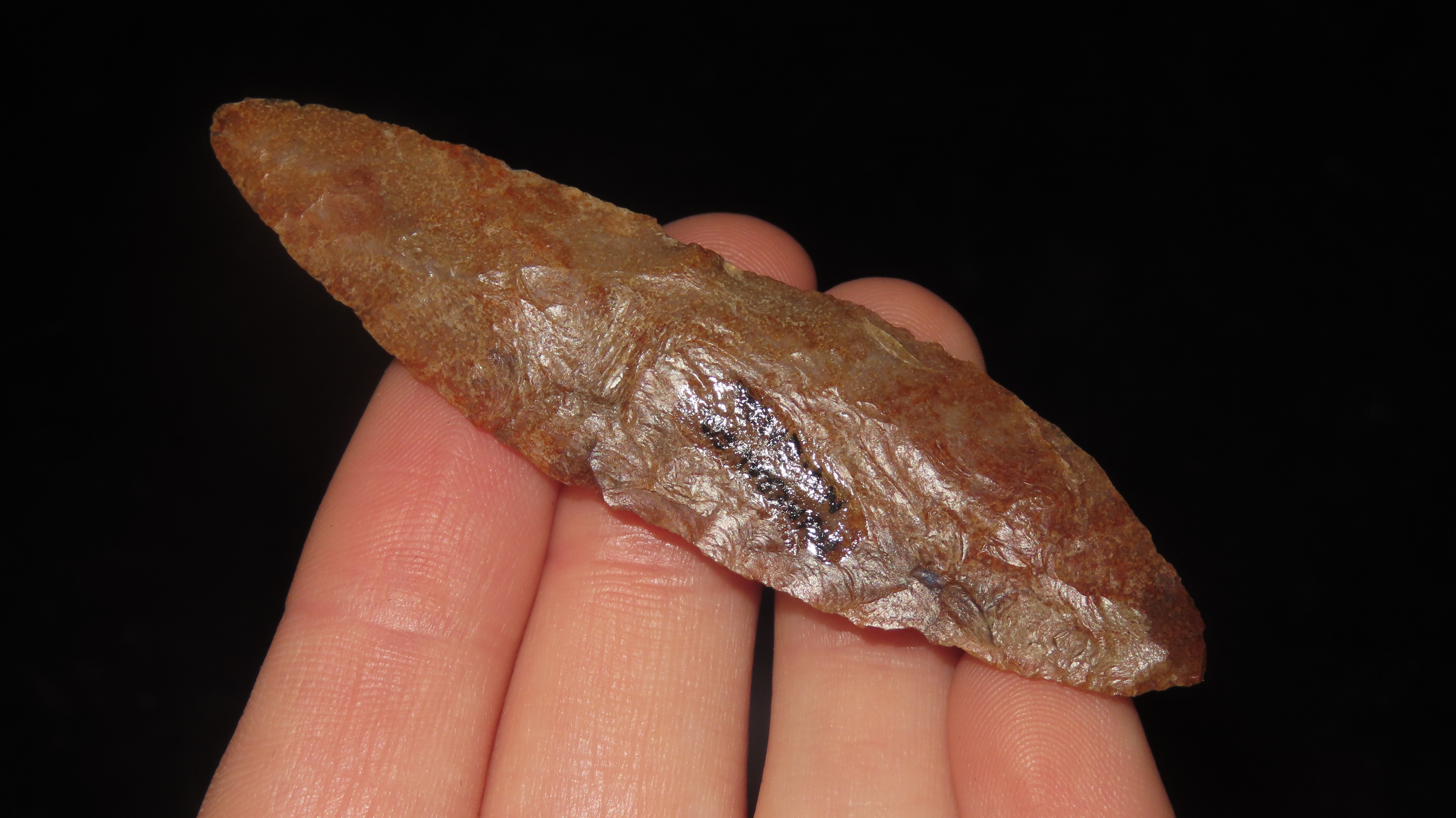 2 7/8″ Jasper Knife, Mineral Co., Nevada, Nice Material and Flaking, Median Ridge on One Side, Ex. Jim Lee, Ex. Dickey