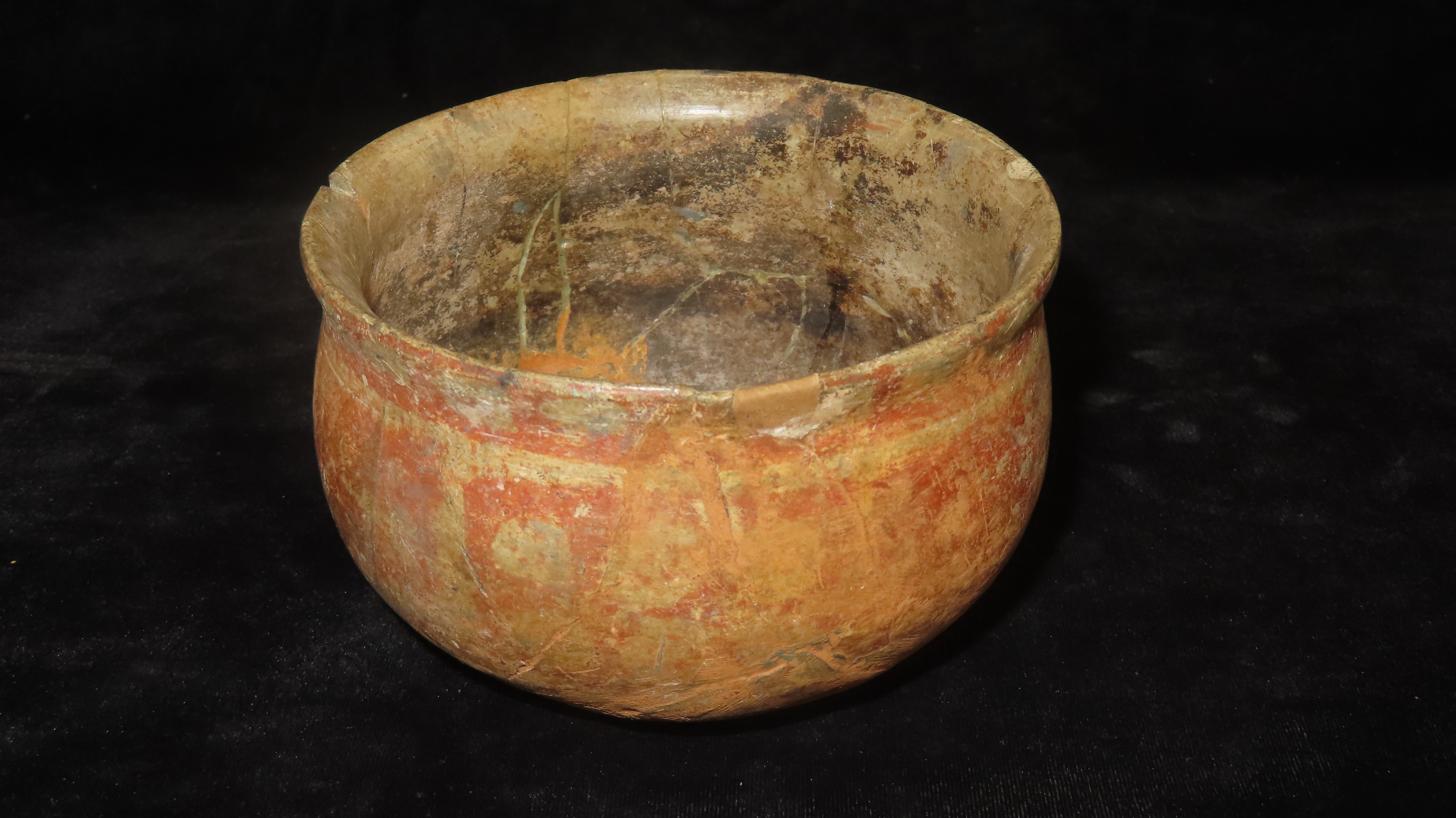 Painted Pre-Columbian Pottery Vessel, Mayan, 3 1/2 x 5″