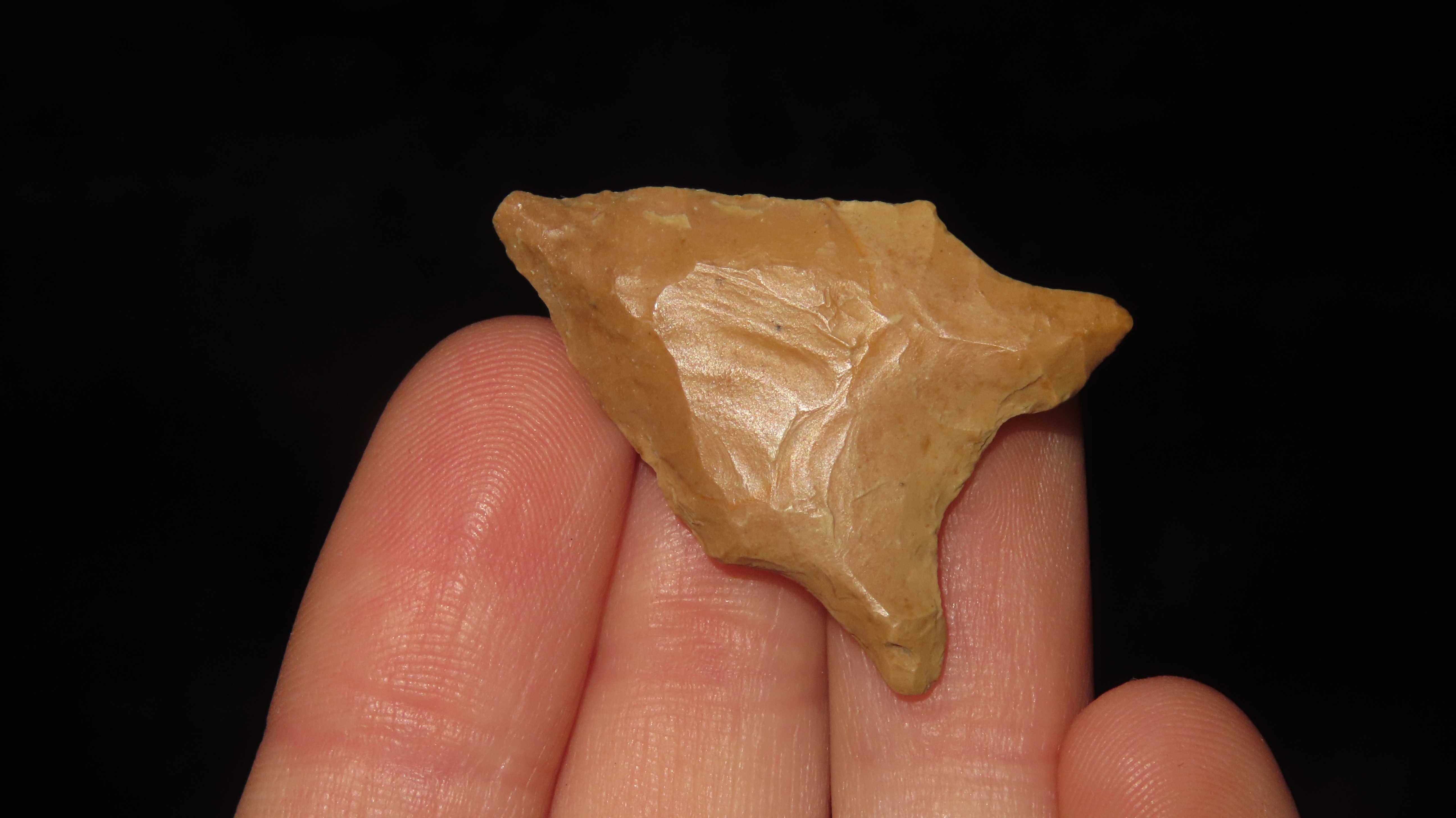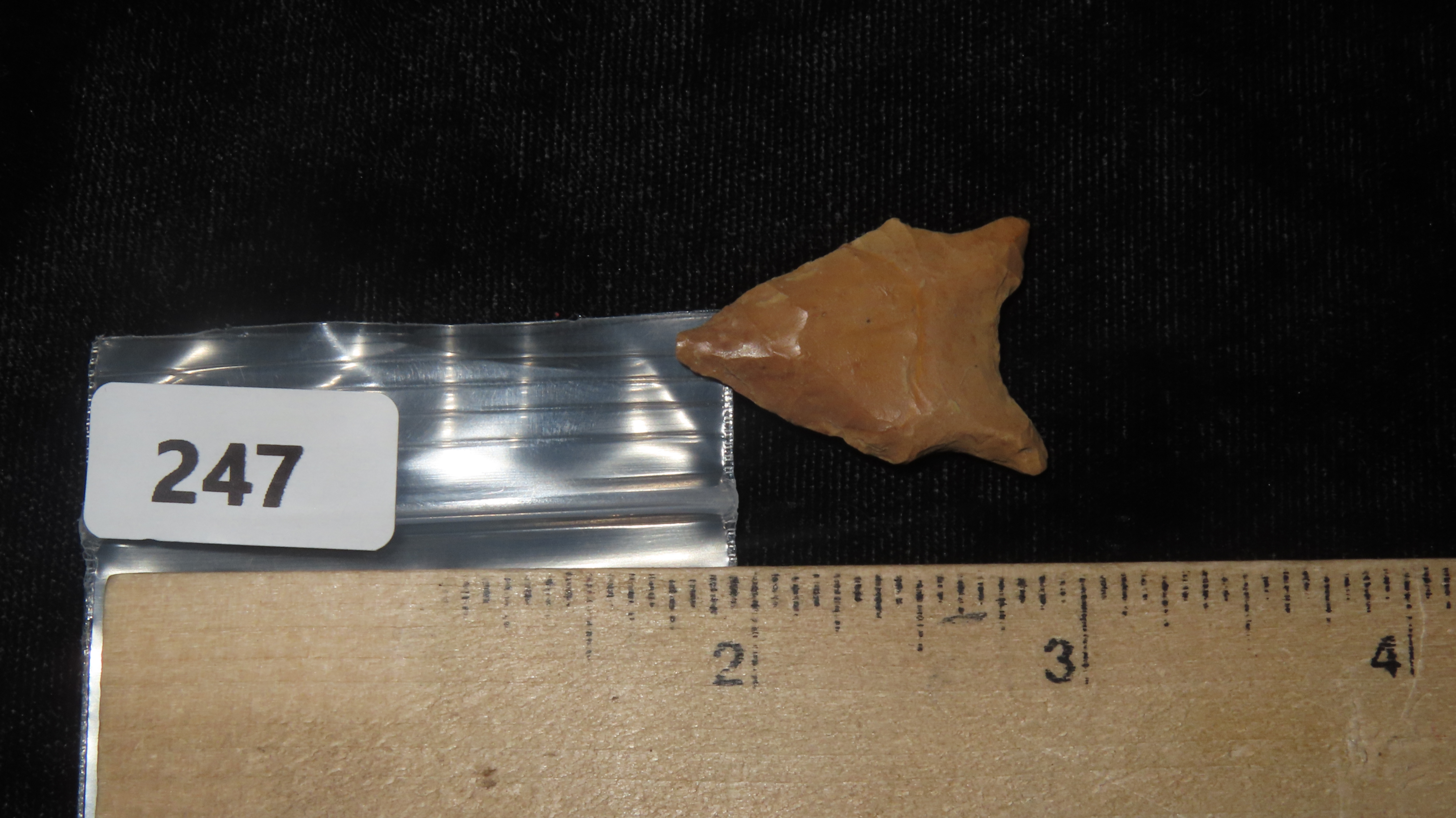 1 1/8″ San Patrice, Fluted Transitional Paleo, 10, 000 – 8, 000 B.P., Found in Louisiana / Texas, by Joshua Ream, Ex. Jim Bennett