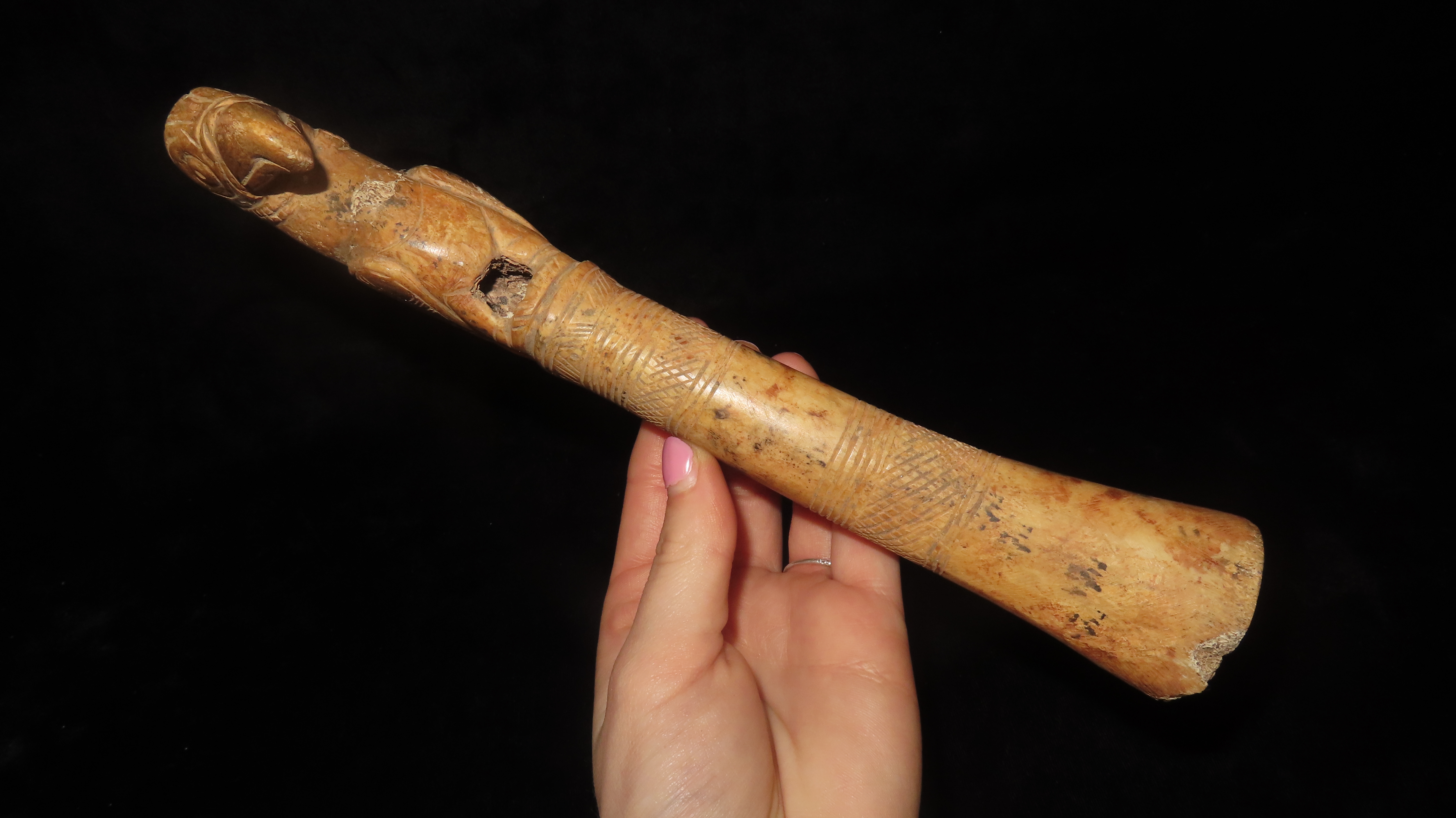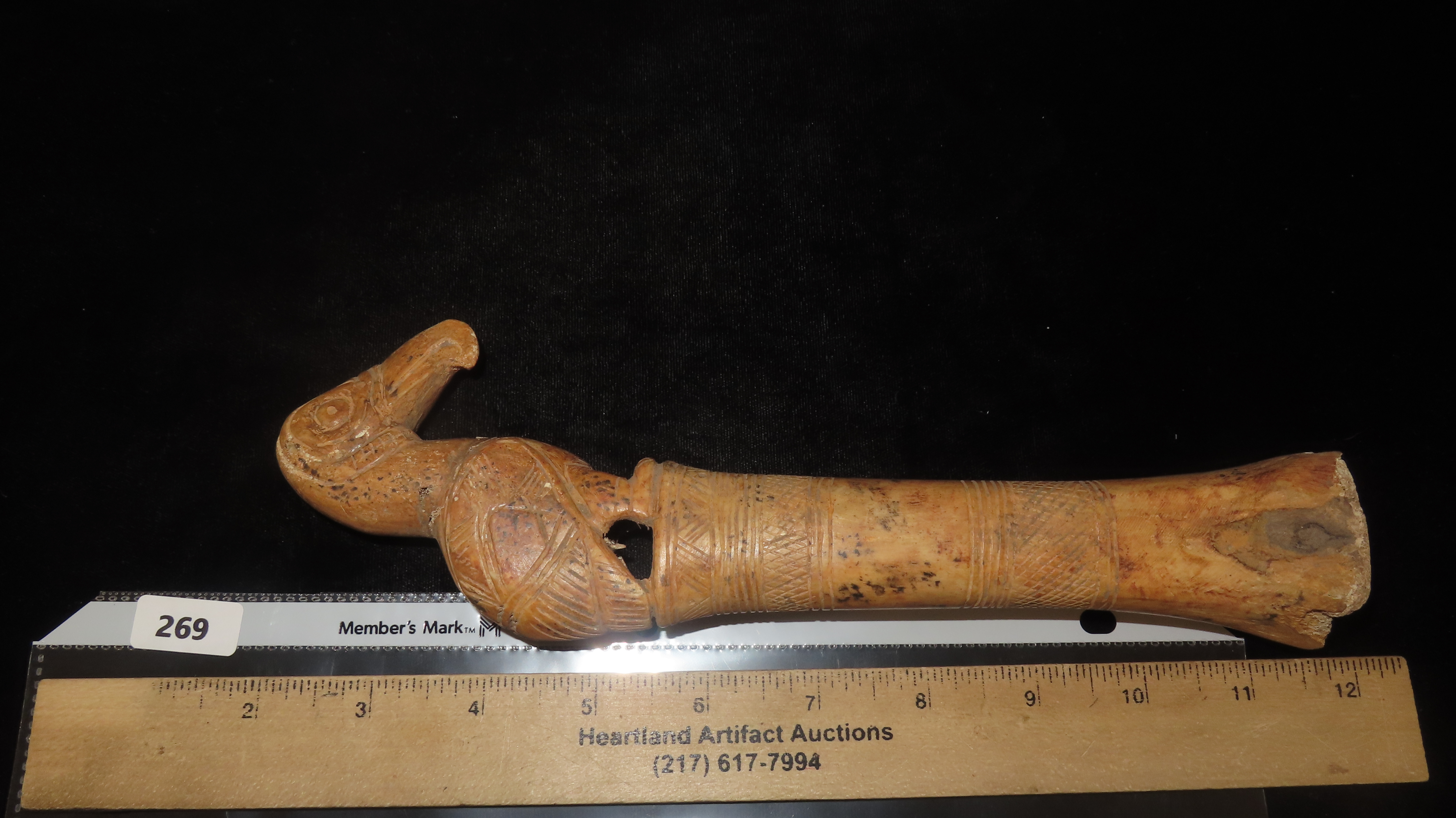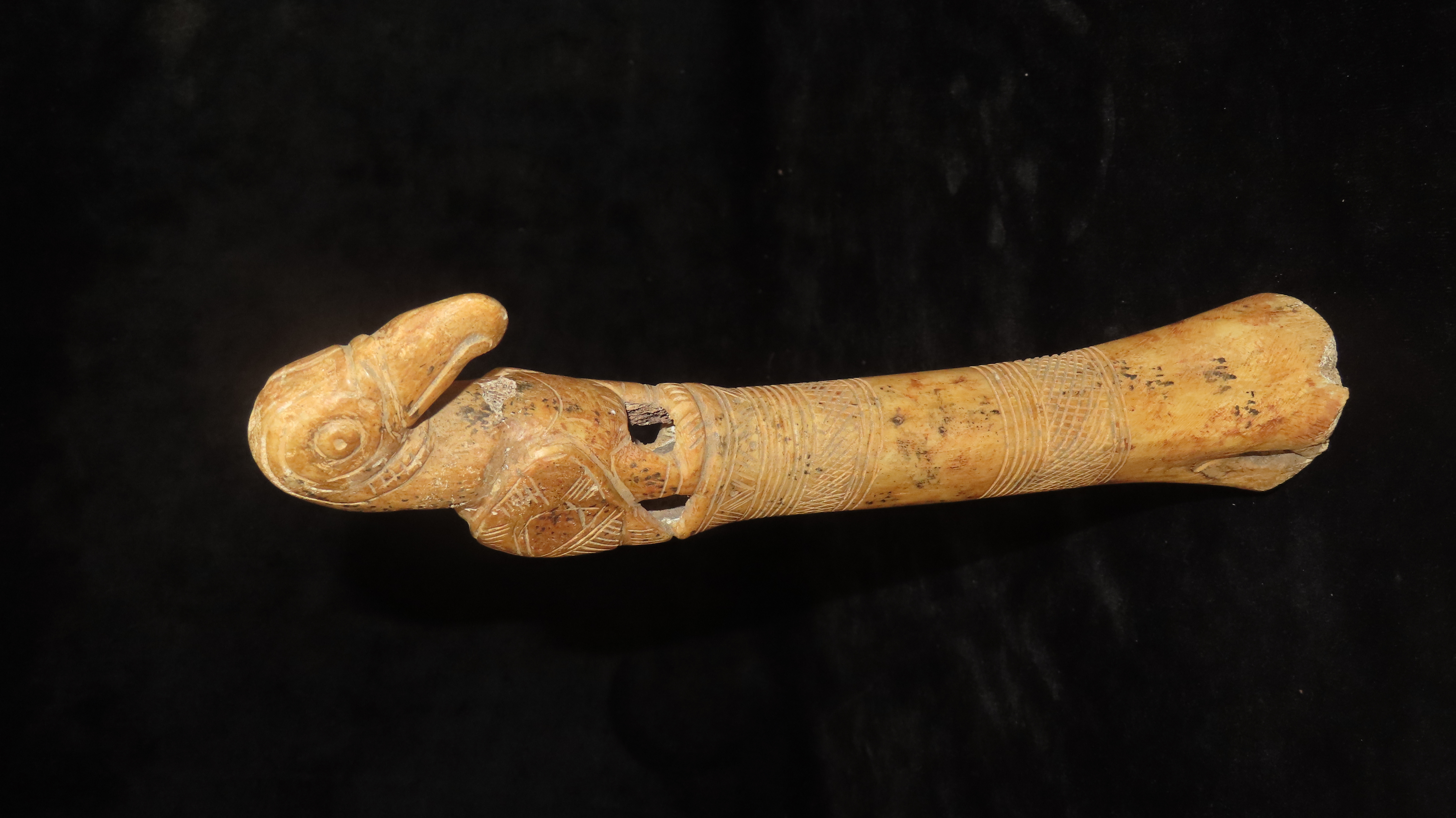 9-1/2" Bird Effigy Scepter, COA Roy Motley & John Leithoff, Made of Bone, Found in Peru, Ex. Steve Barras Estate