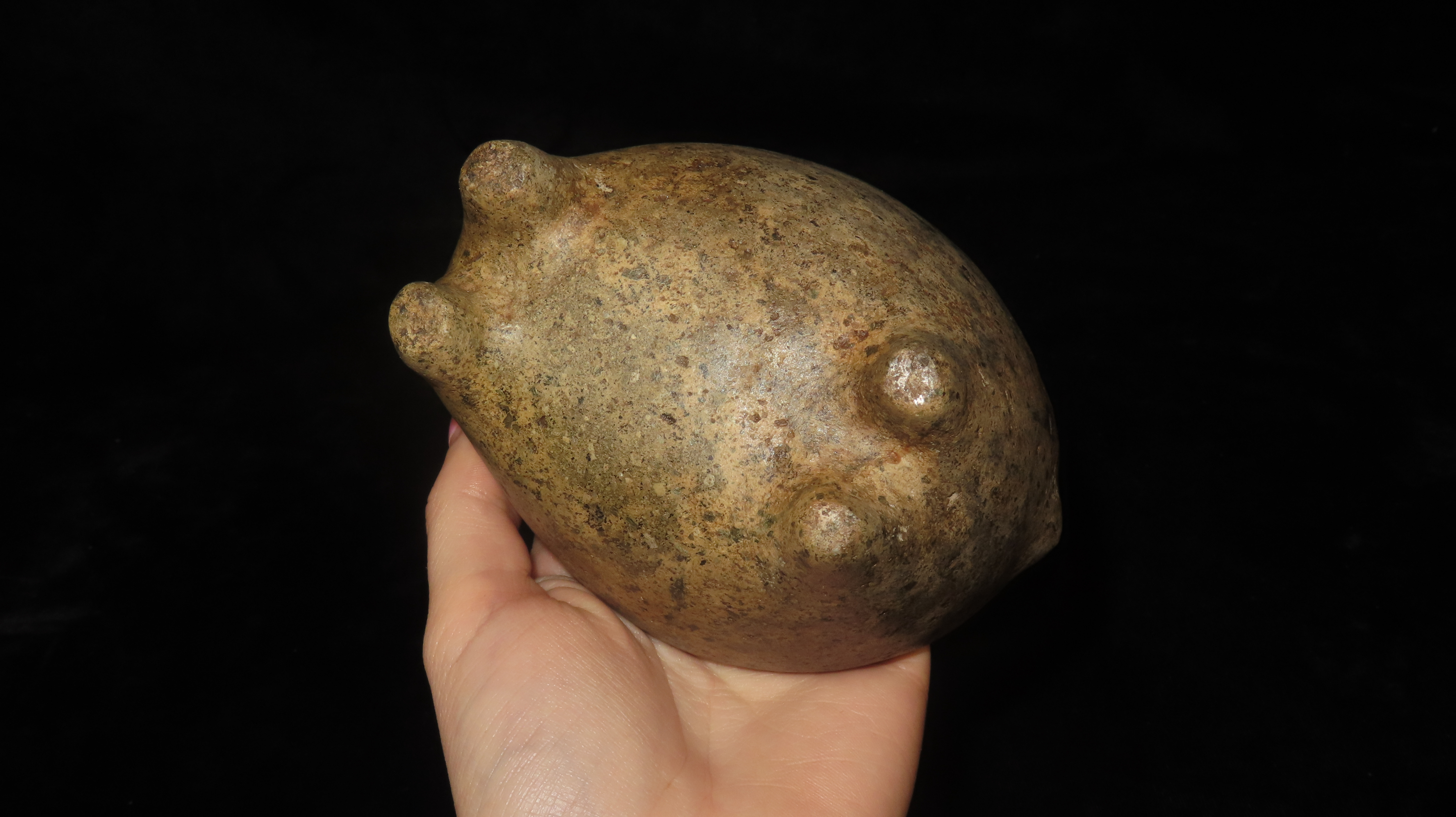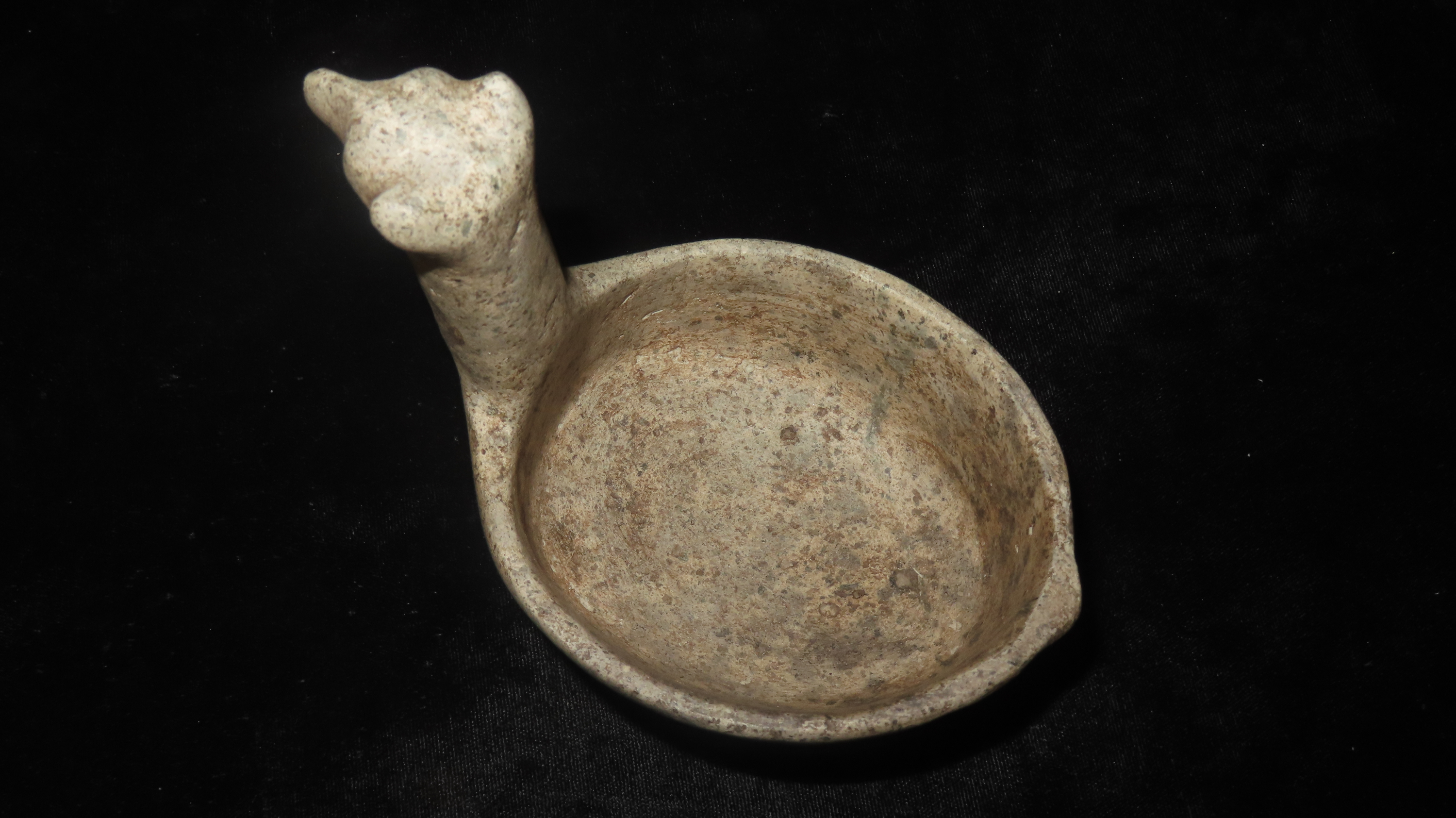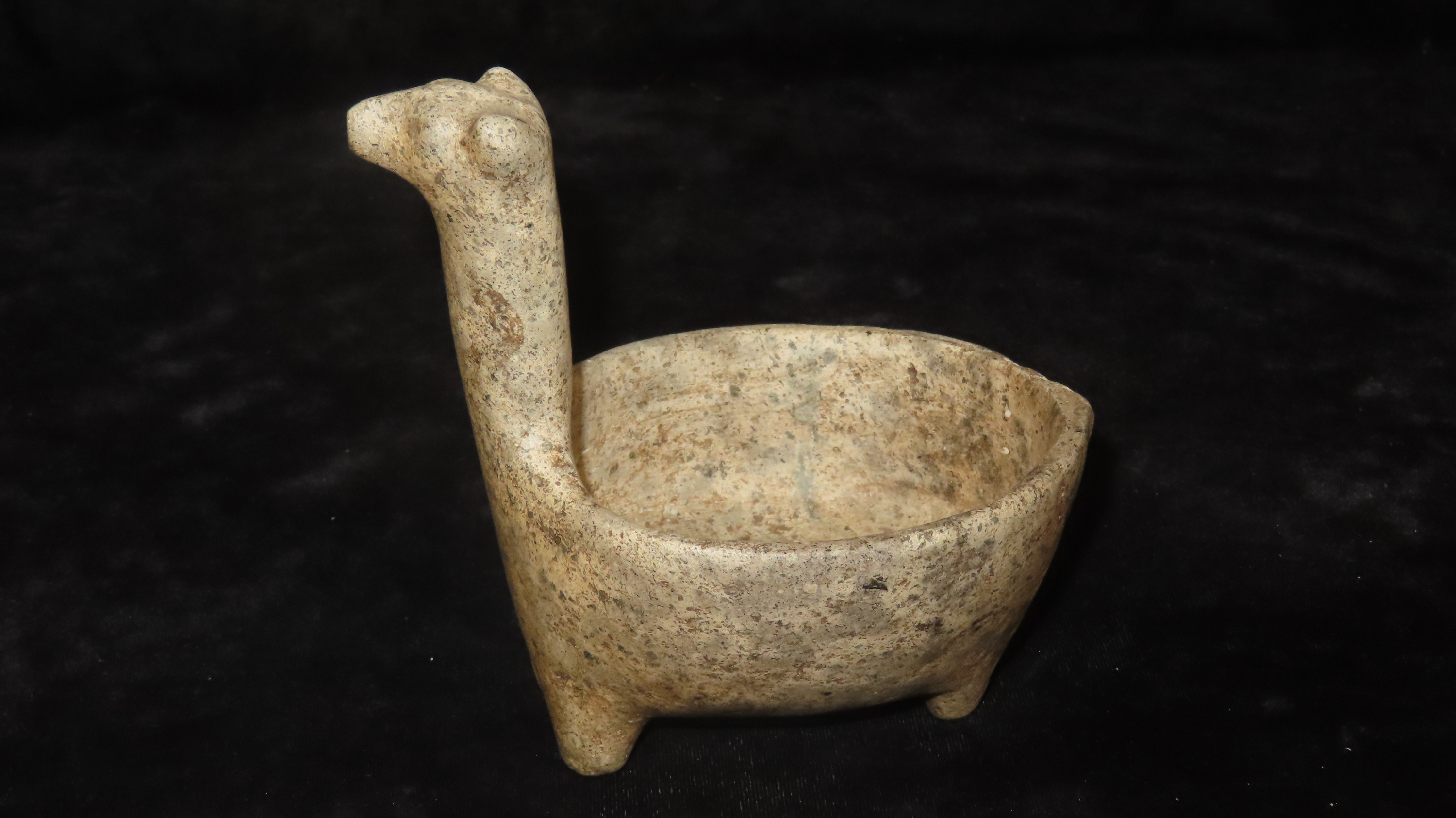 4 3/4" x 5" Llama Effigy Bowl, Soapstone, Motley/Leithoff COA, Reportedly found in Peru, Ex. Steve Barras Estate