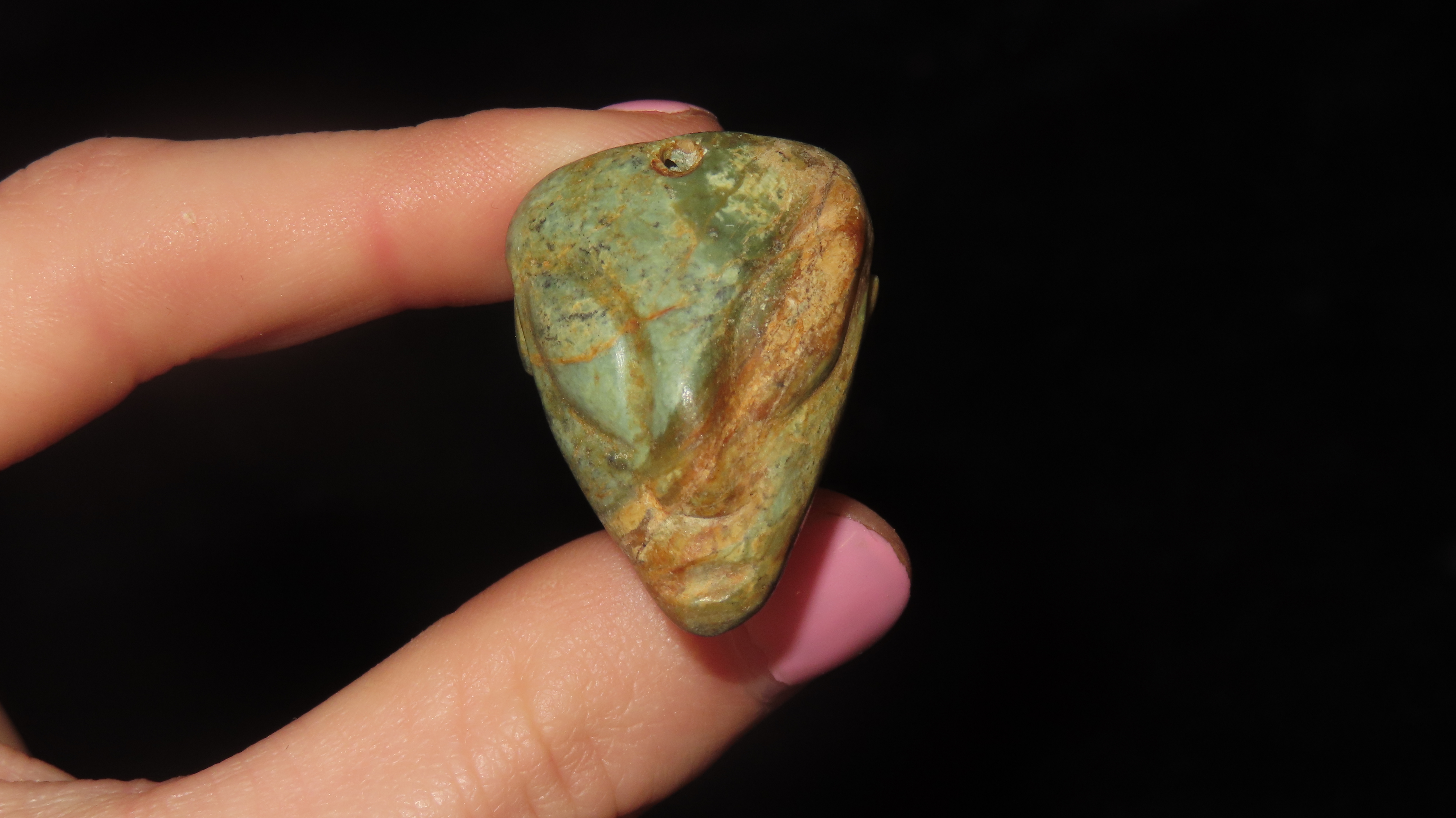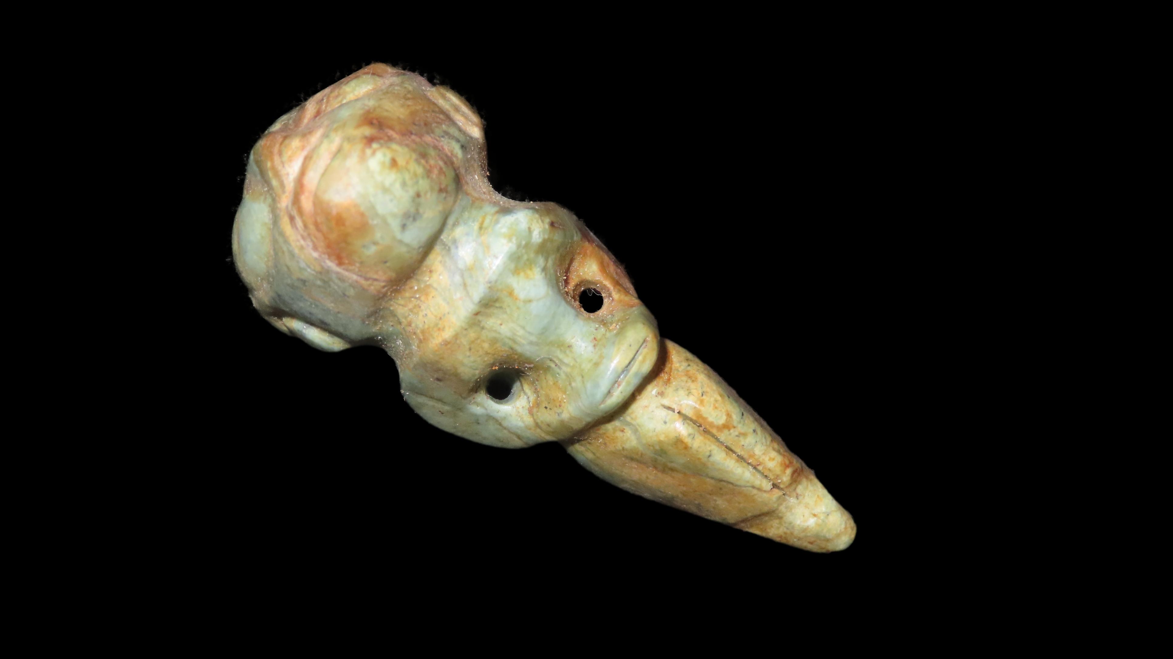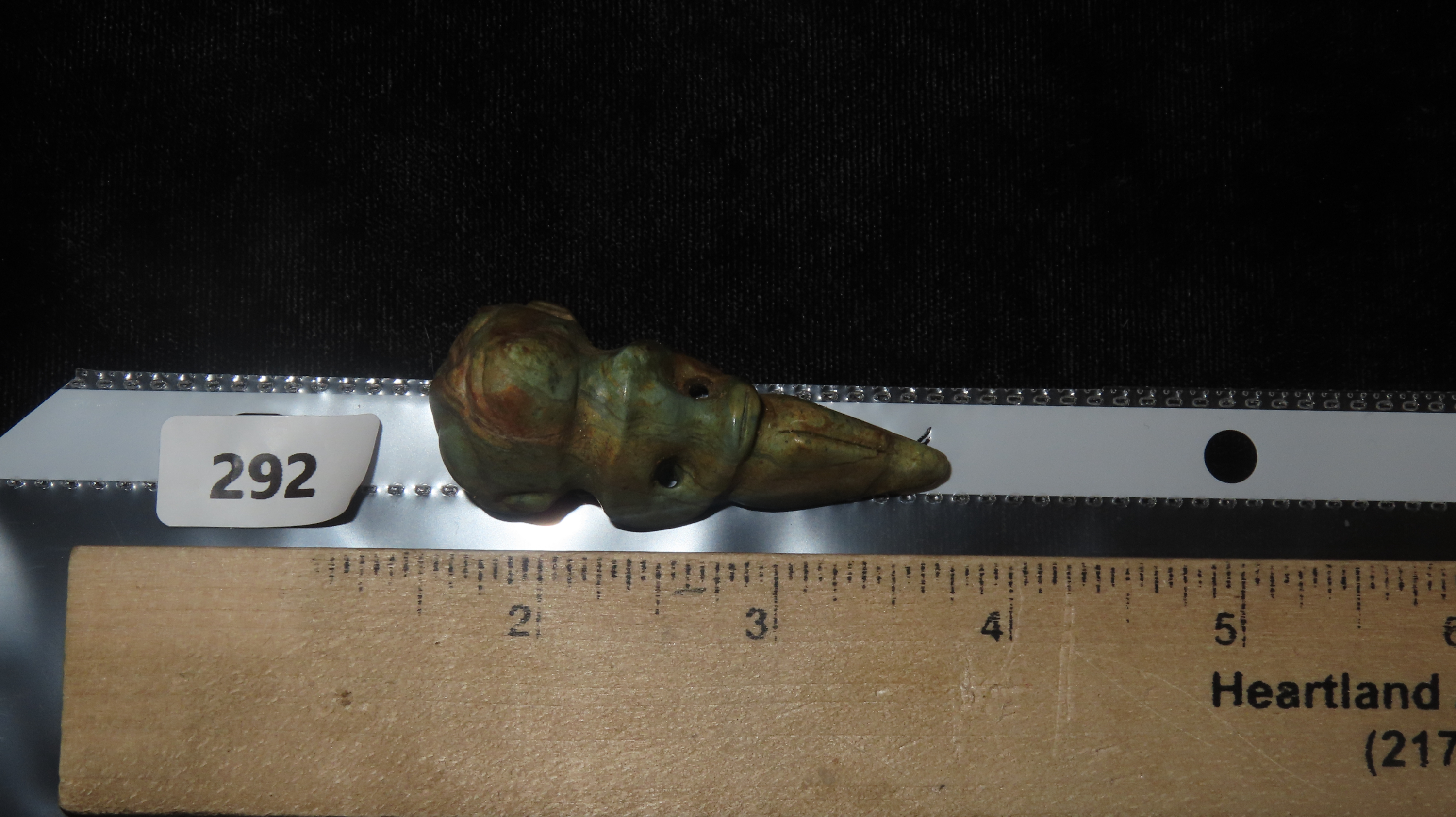 1 1/8″ x 2 1/16″ Pre-Columbian Parrot Effigy Pendant, Jade, Motley/Leithoff COA, Reportedly found in South America, Ex. Steve Barras Estate