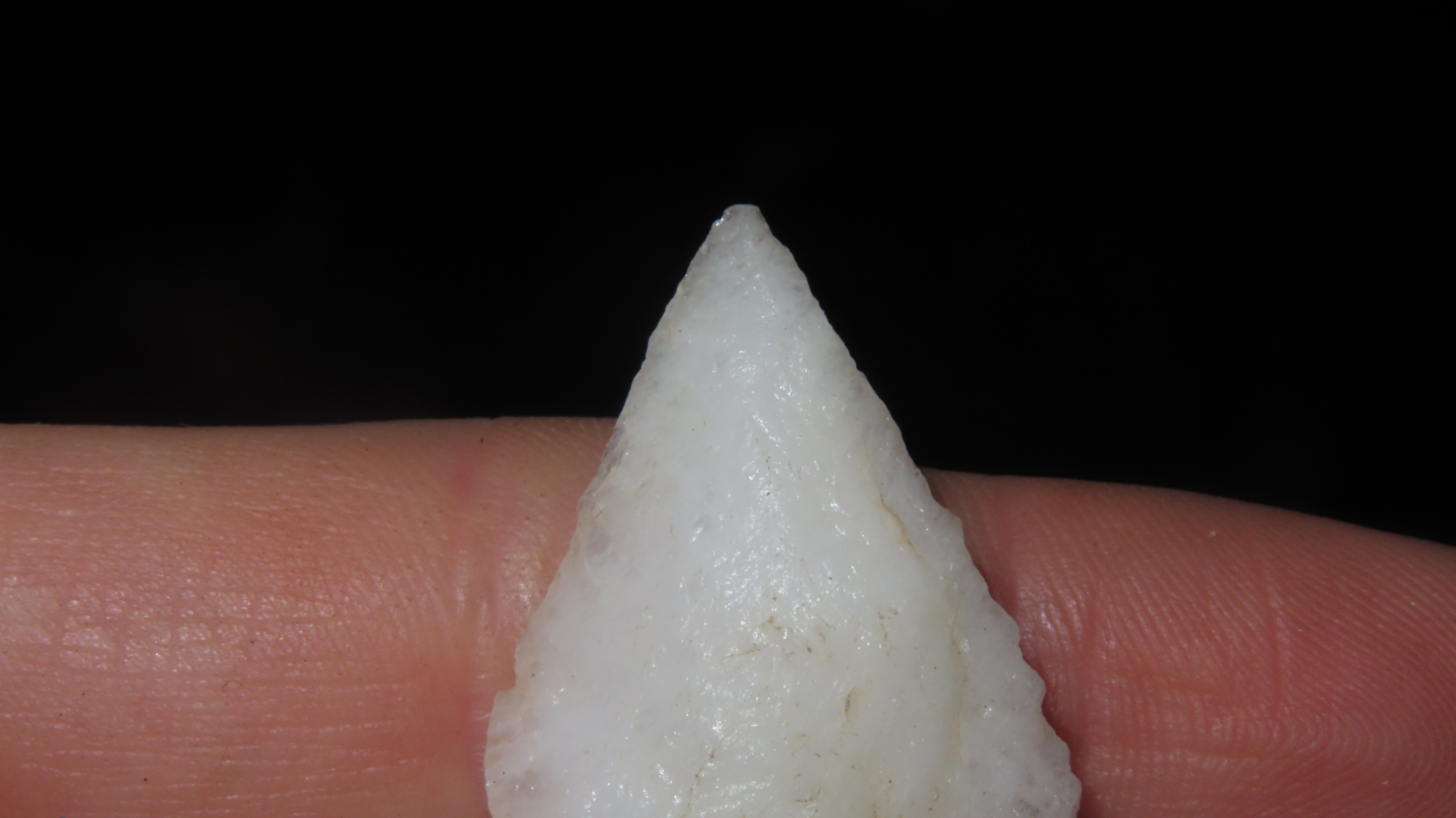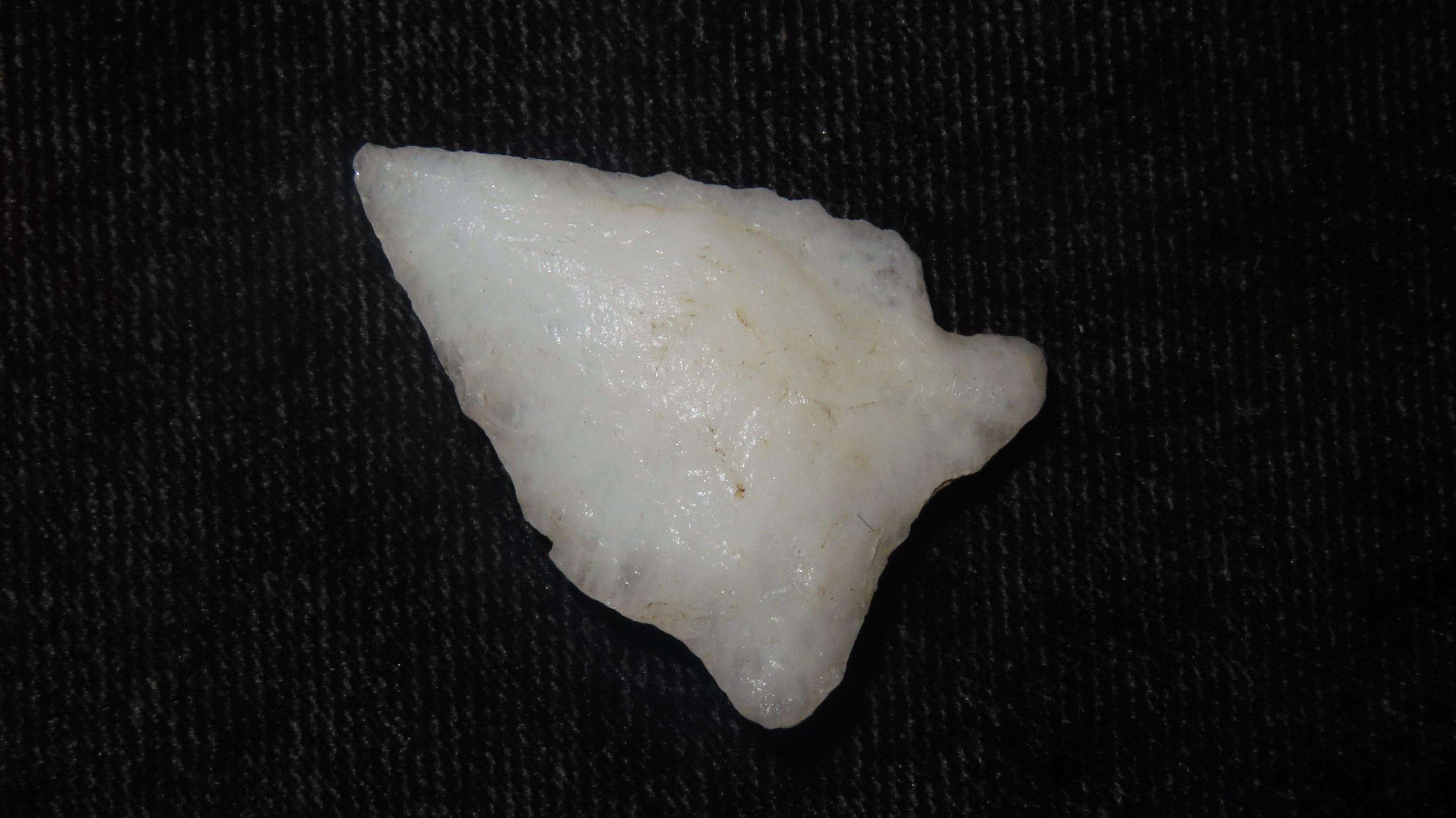 Super Crystal Quartz Beveled Arrowhead, Found by Bill Smith in Marshall Co., Alabama, Related types – Dalton, Palmer, Kirk, Big Sandy, Early Archaic