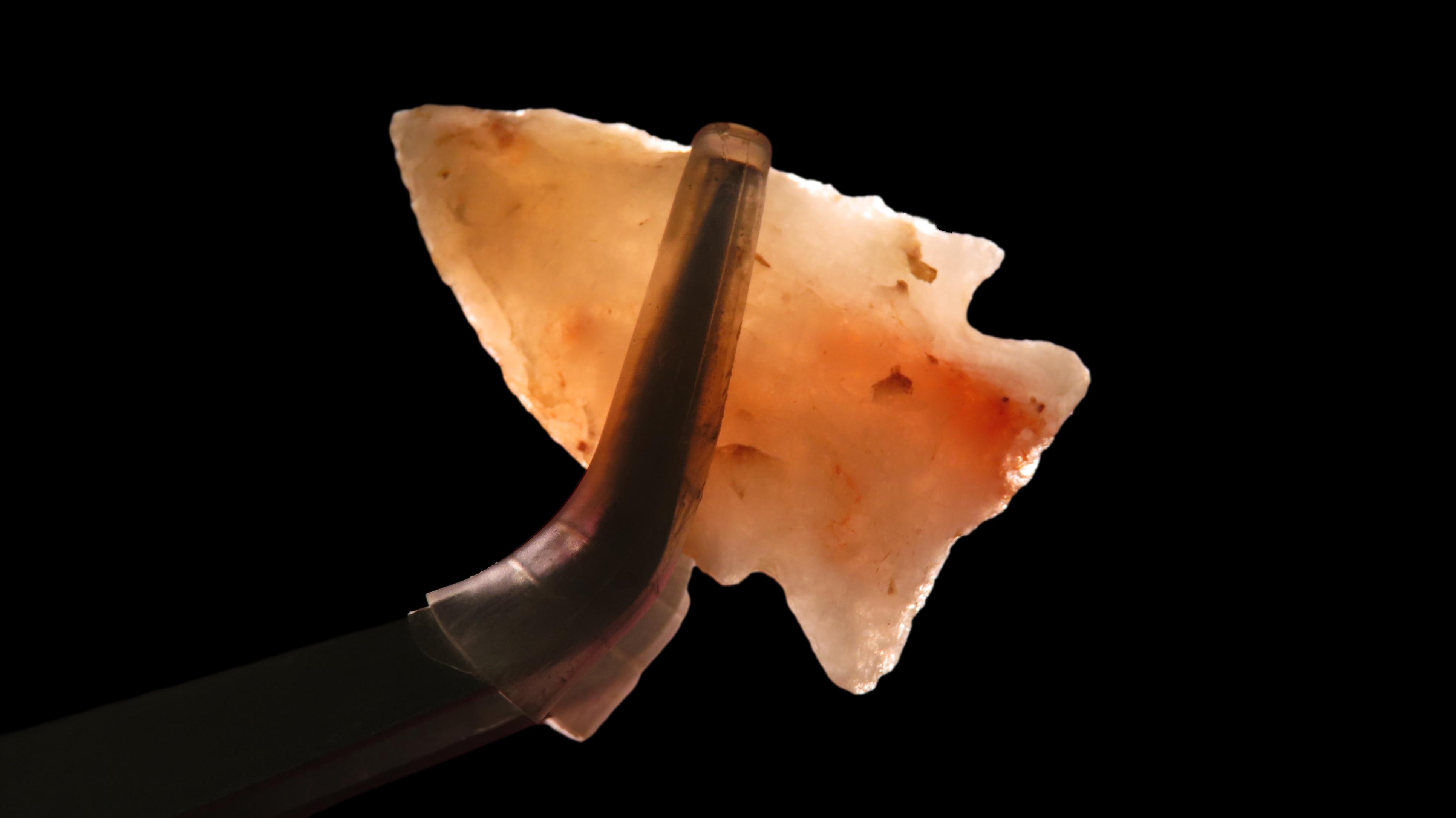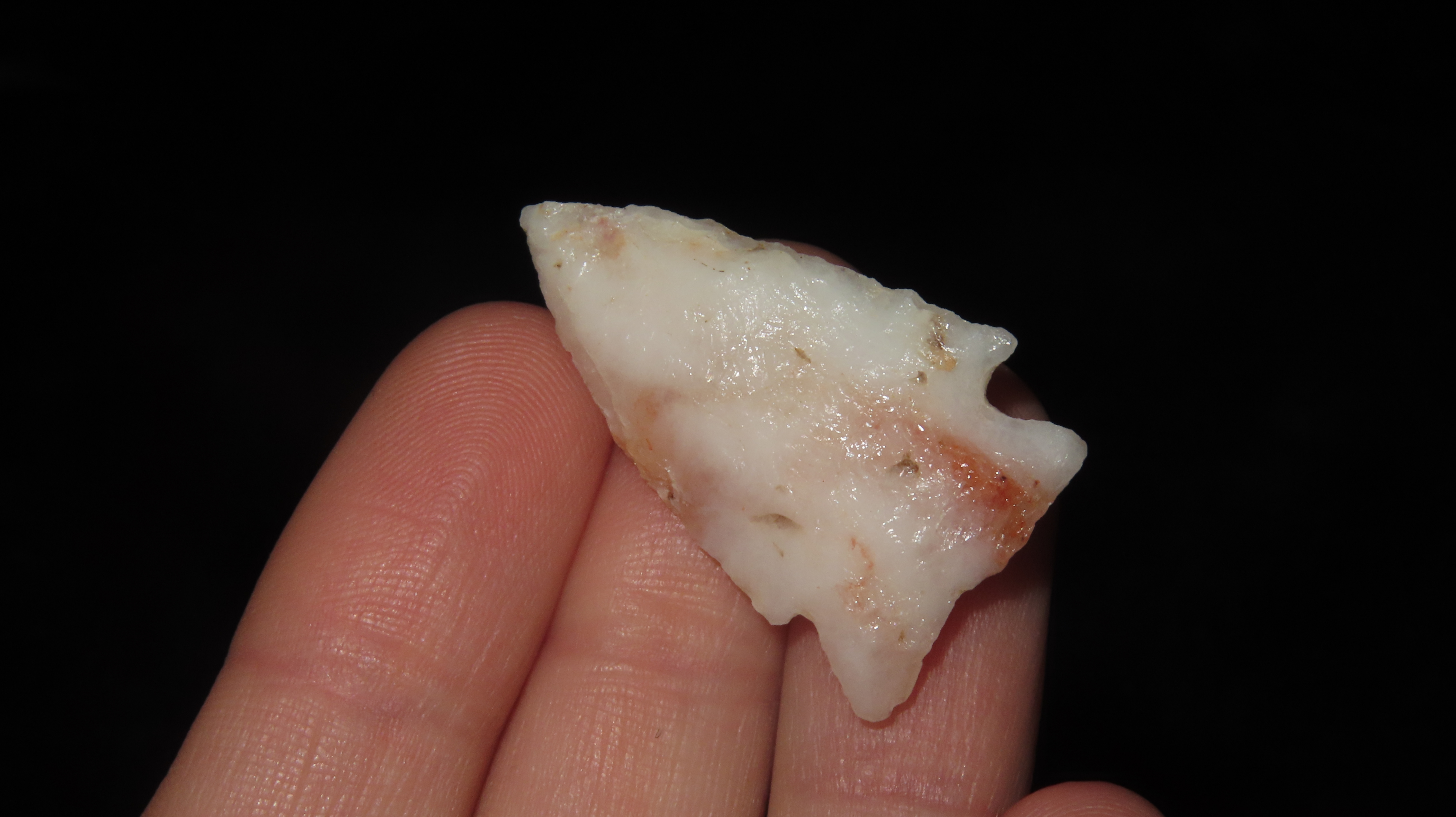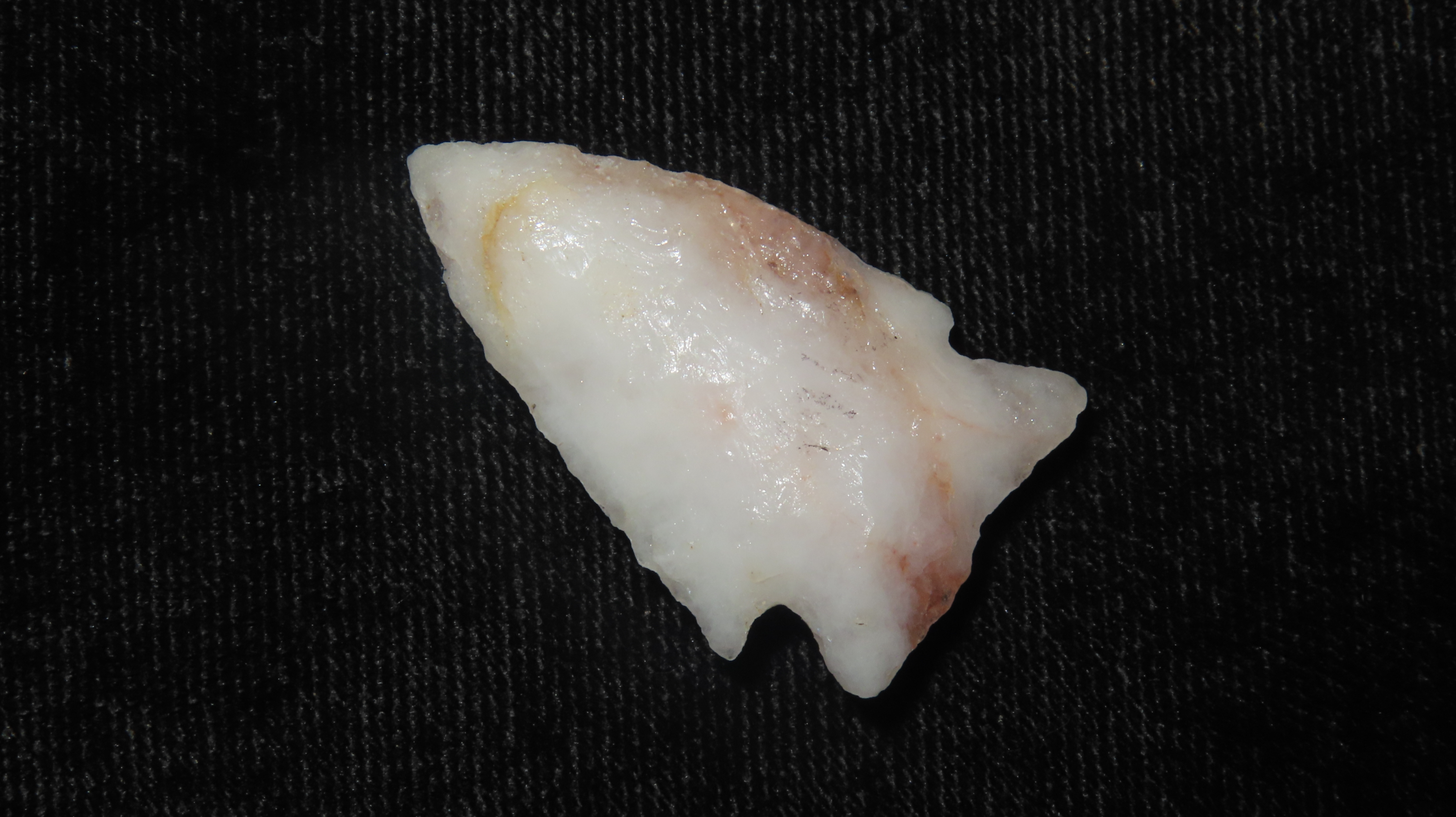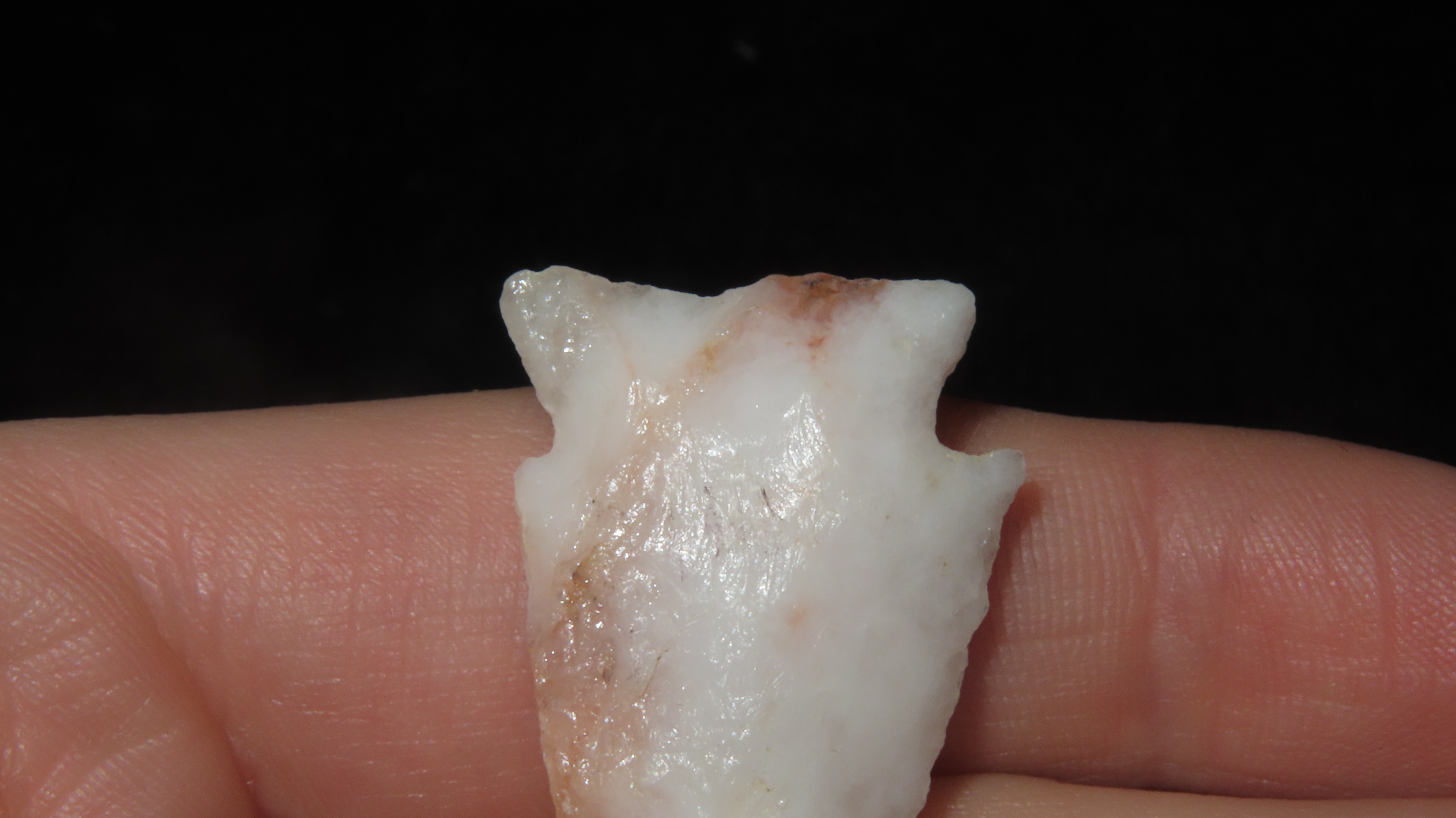 Super Crystal Quartz Beveled Arrowhead, Found by Bill Smith in Marshall Co., Alabama, Related types – Dalton, Palmer, Kirk, Big Sandy, Early Archaic