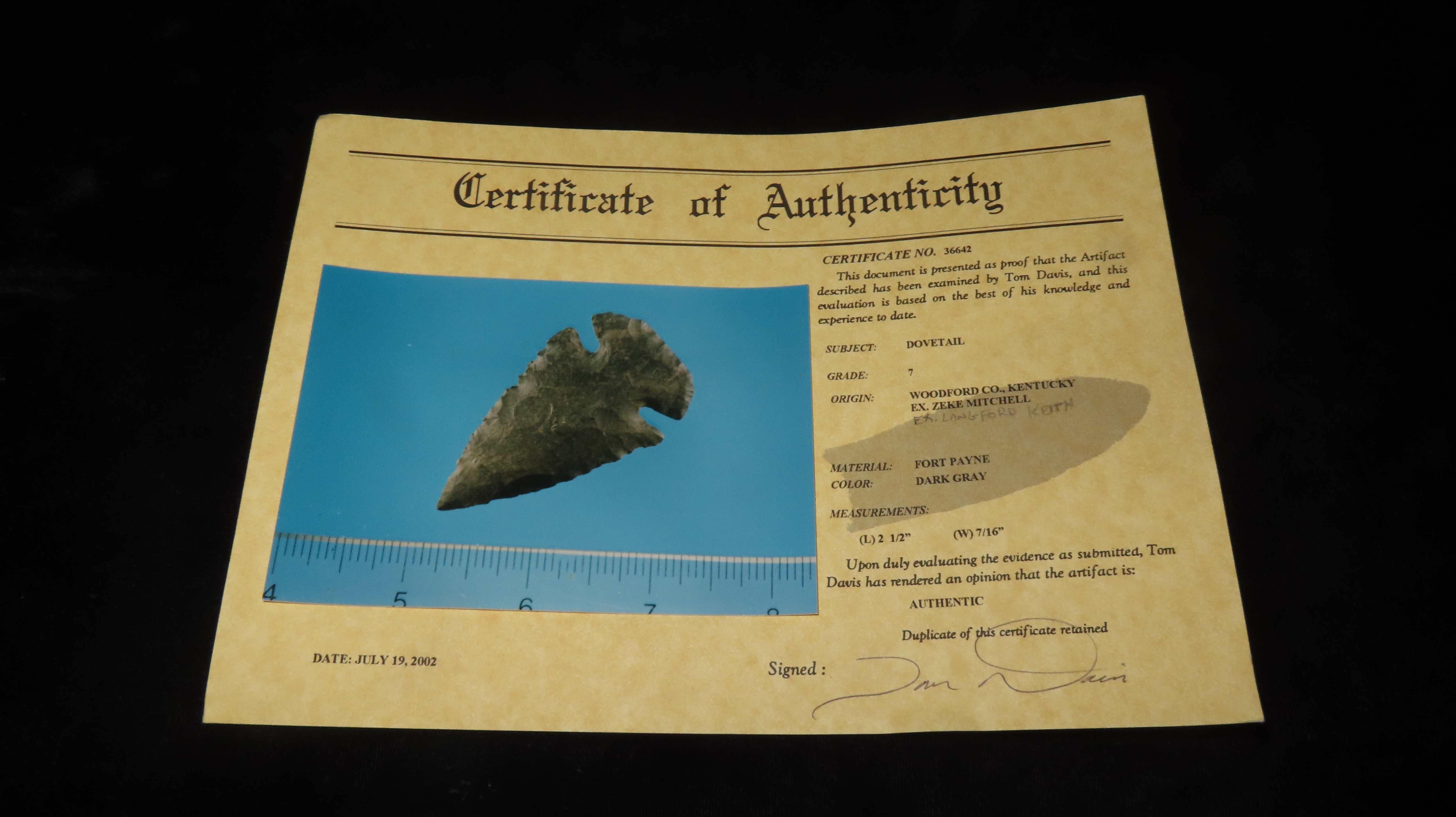 2 1/2″ x 7/16″ Dovetail, Fort Payne, Woodford County Kentucky, COA Tom Davis