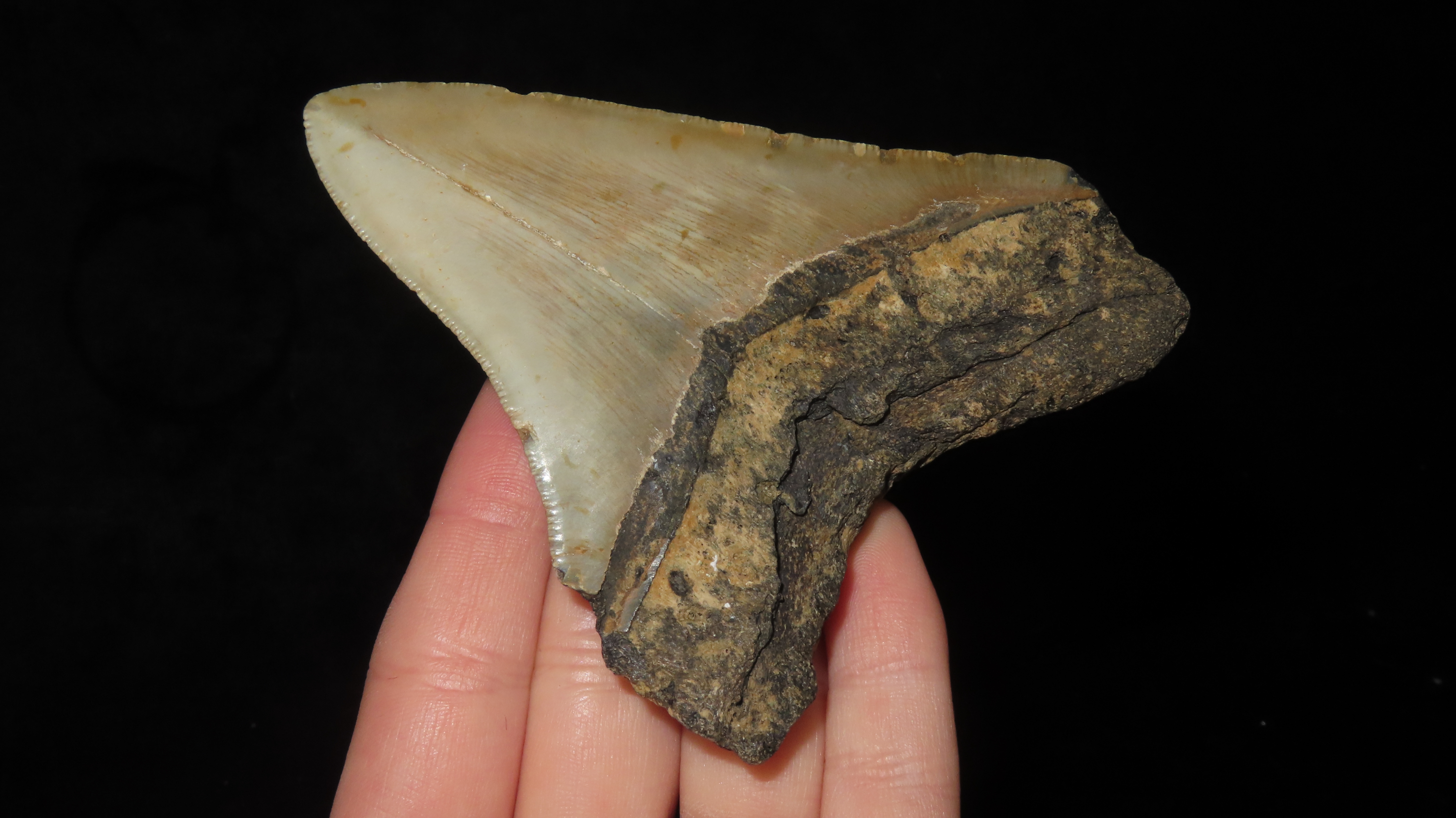 3.993 Megalodon Fossilized Sharks Tooth, South Carolina