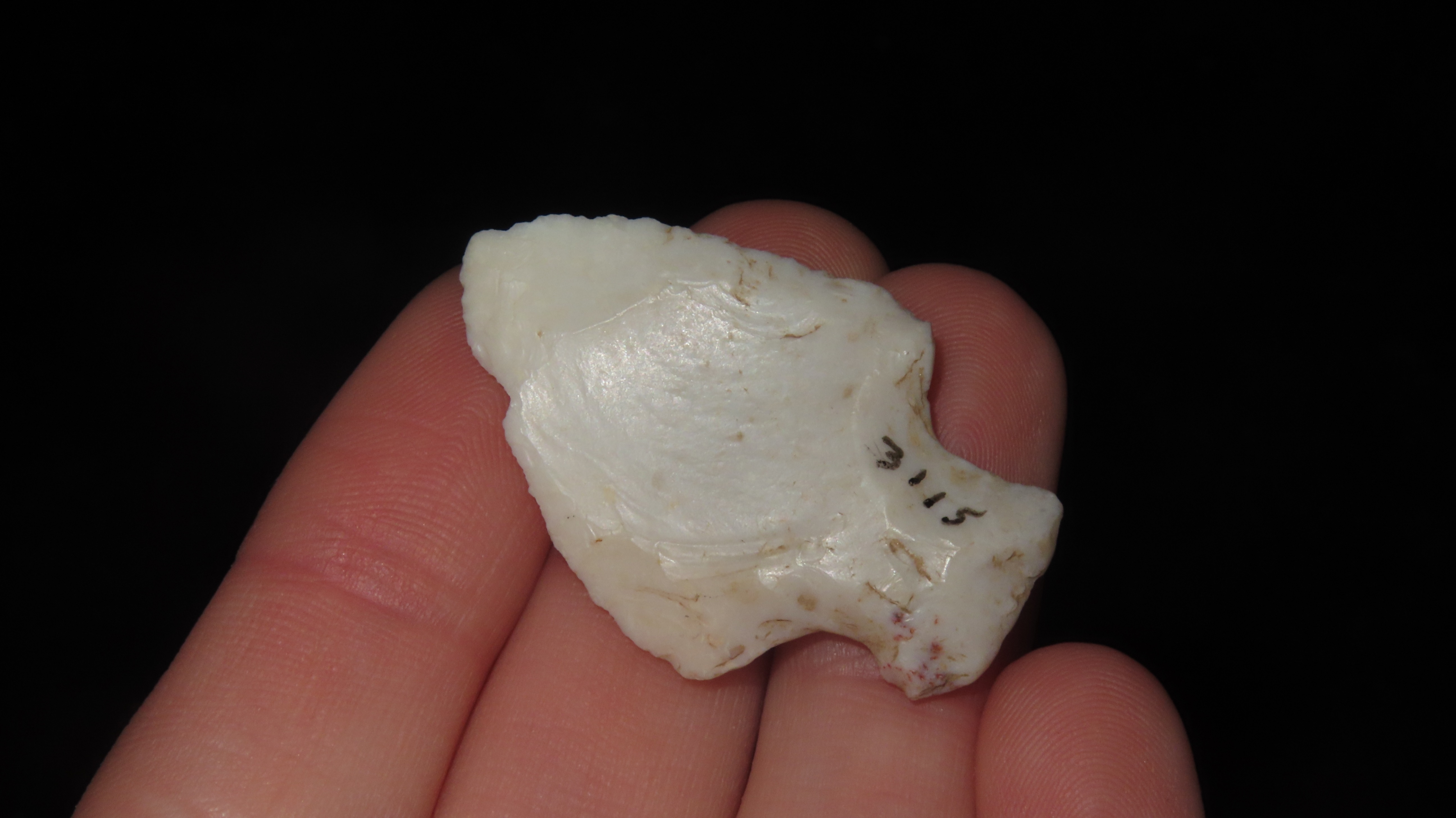 1 3/8″ Toy Tablerock, Crecent Chert, Ex. Steve Manos Collection, Calhoun Co., Illinois