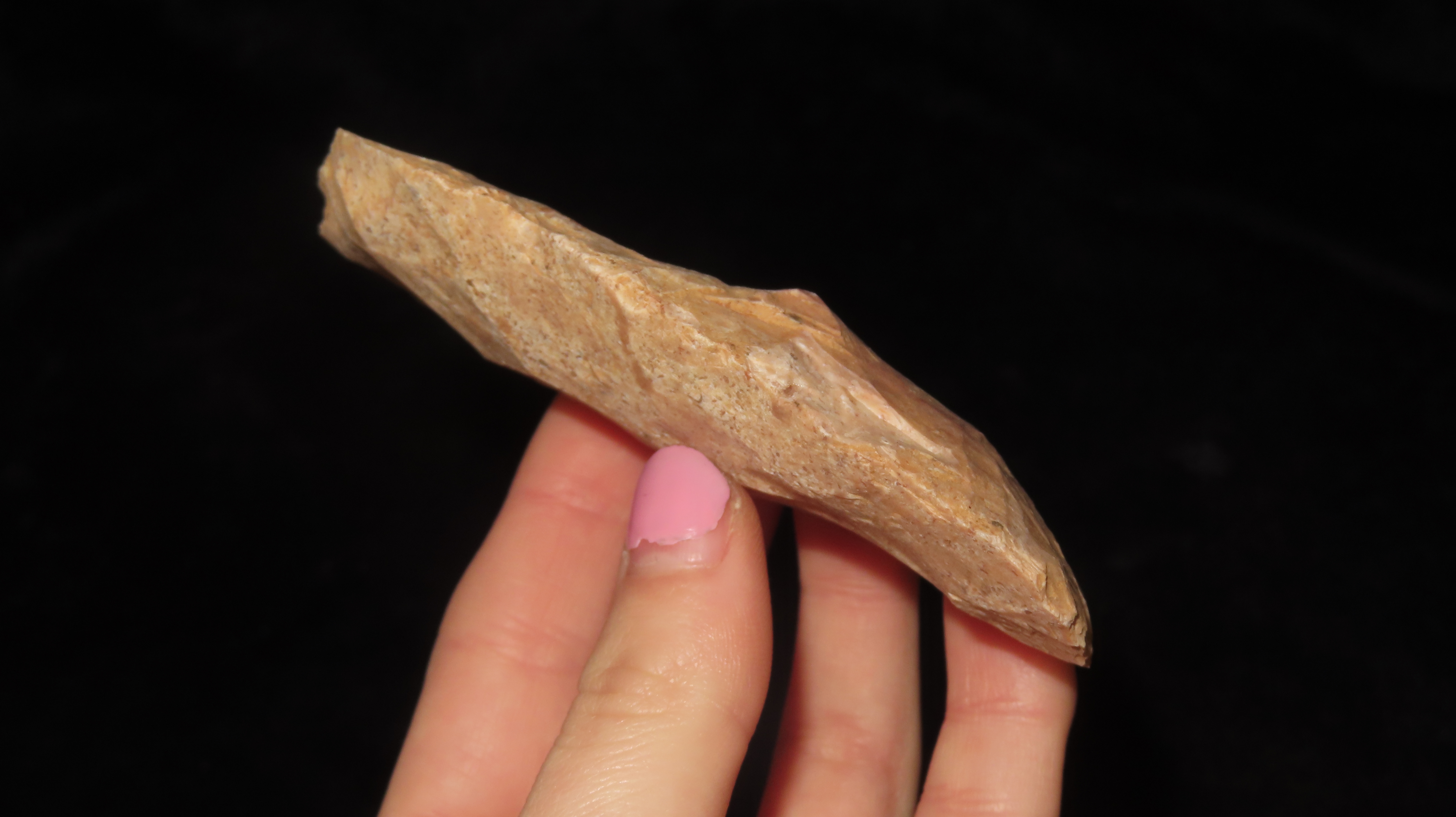 3 7/8″ Sedalia Digger, Nice Colors, Ground Edges, Found in Phelps Co., Missouri