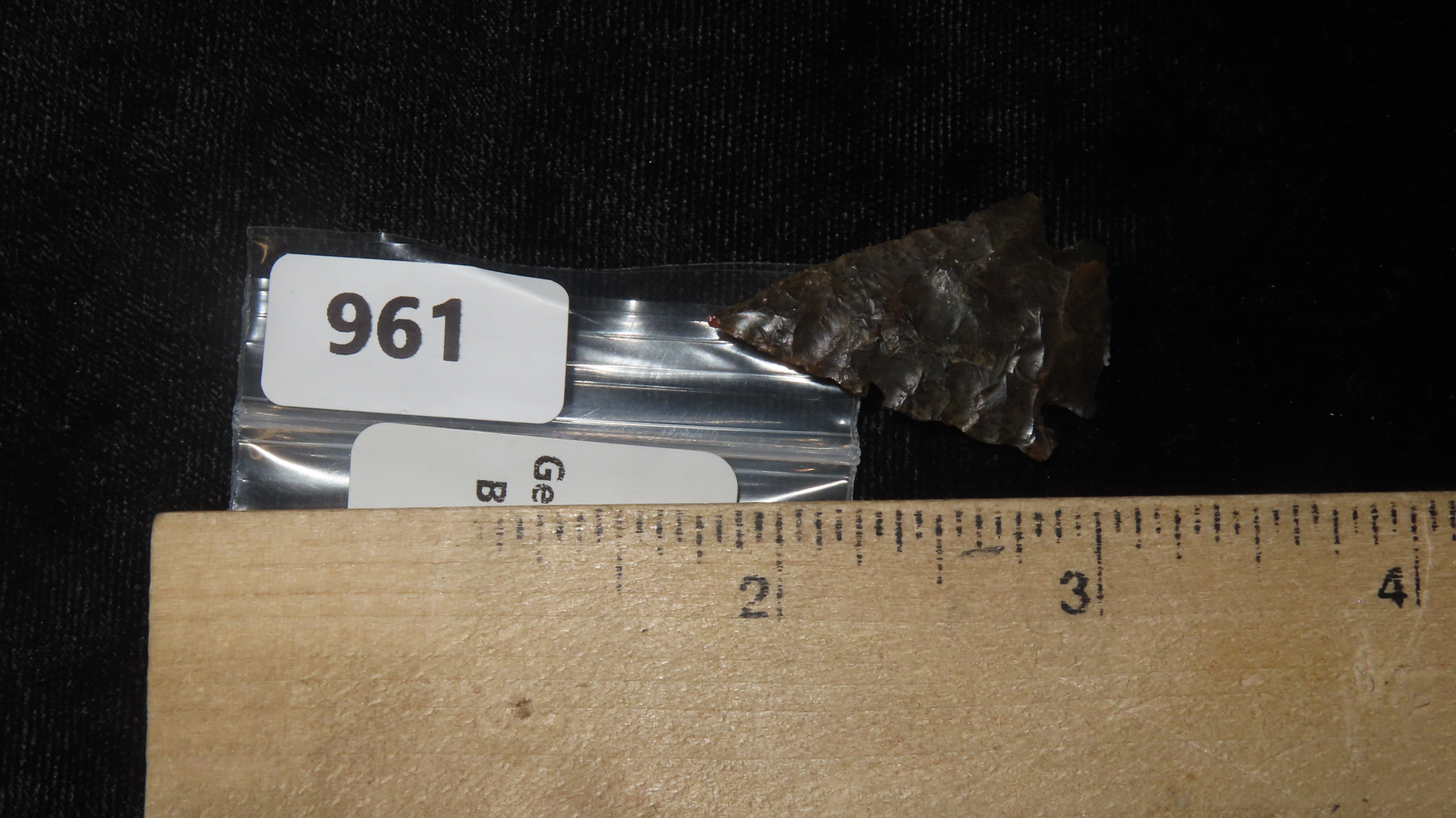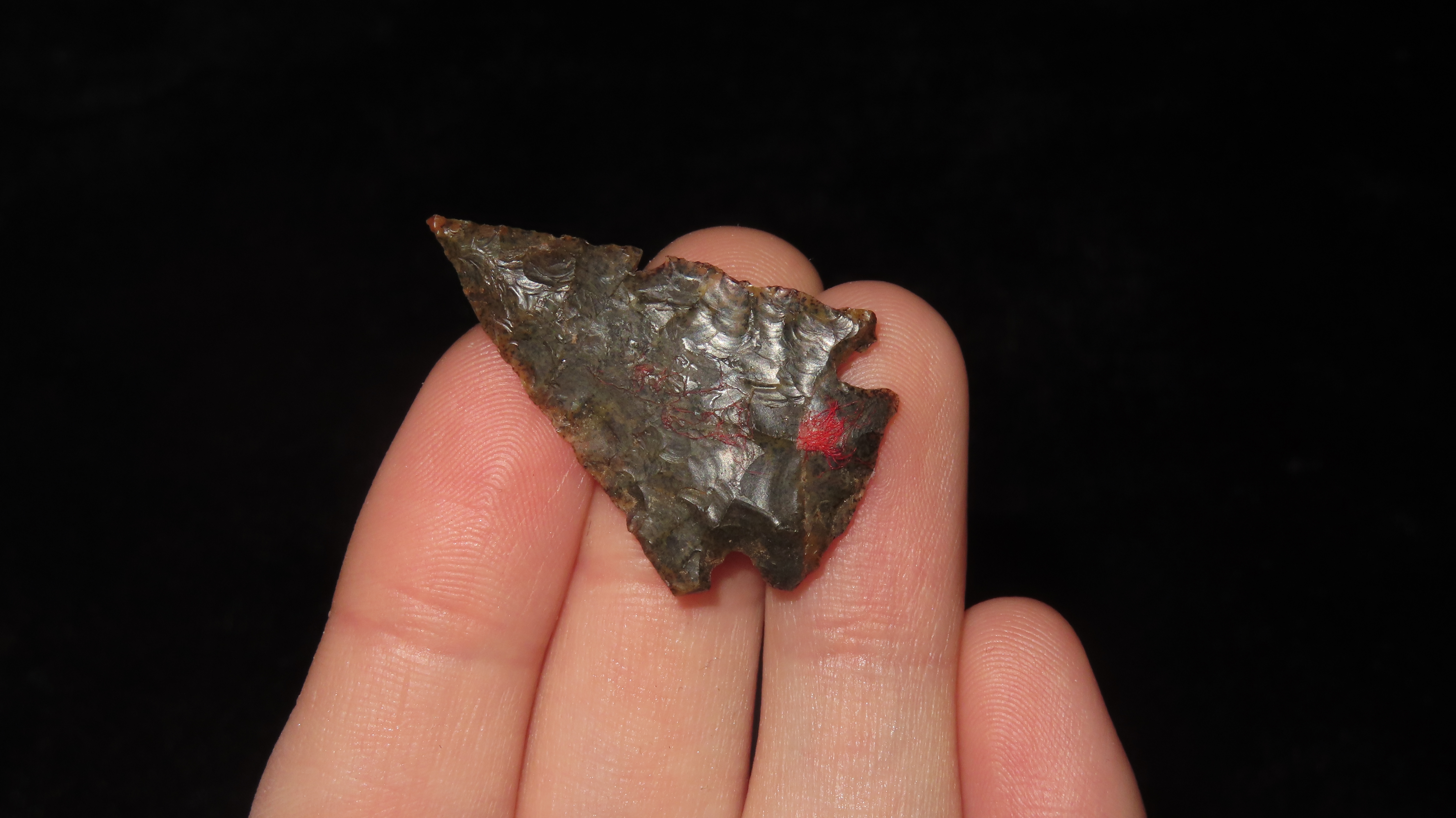 1 3/8″ High Plains Corner Notch, Gem Grade Translucent Material, Broken / Reglued at Midsection