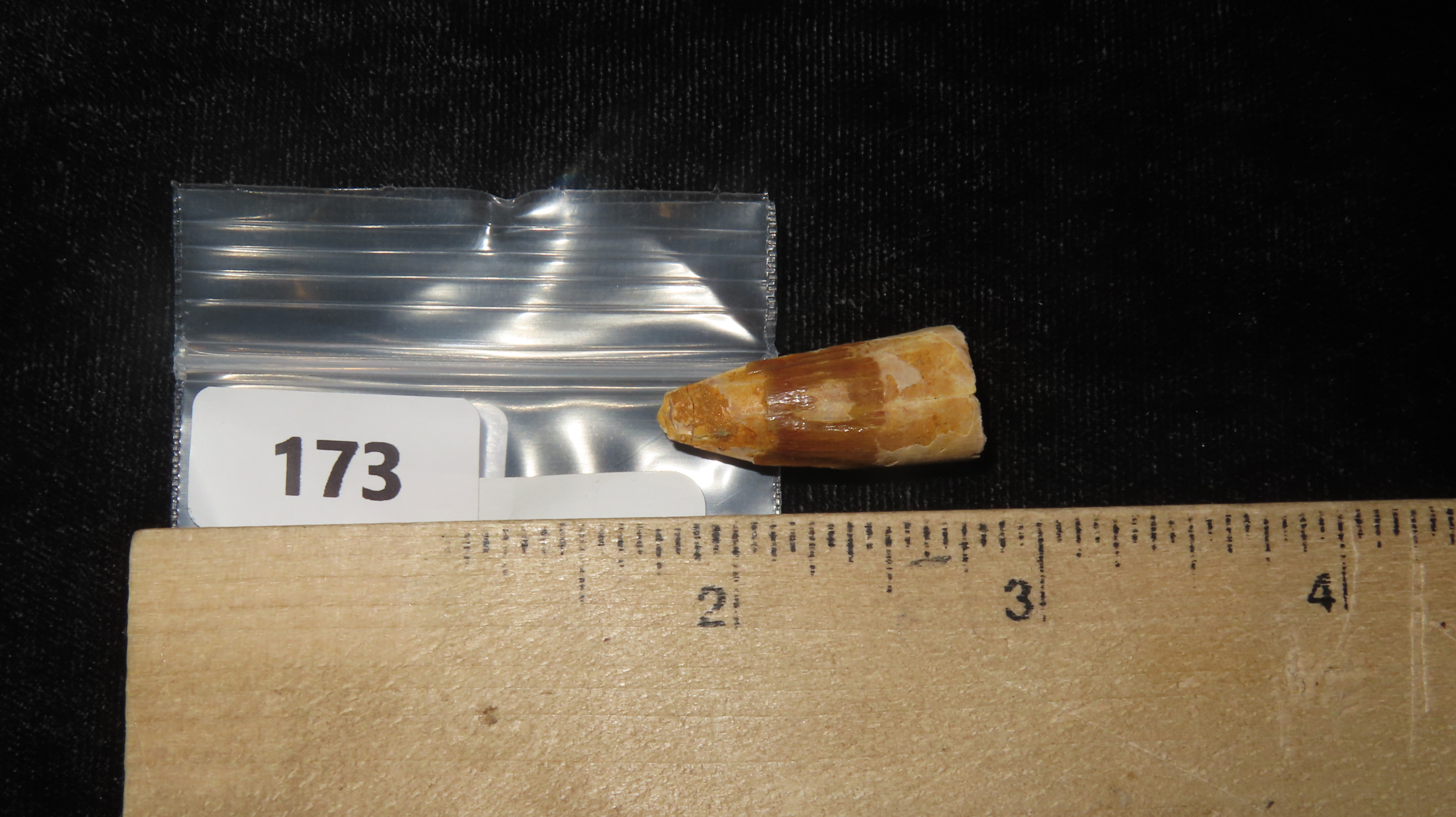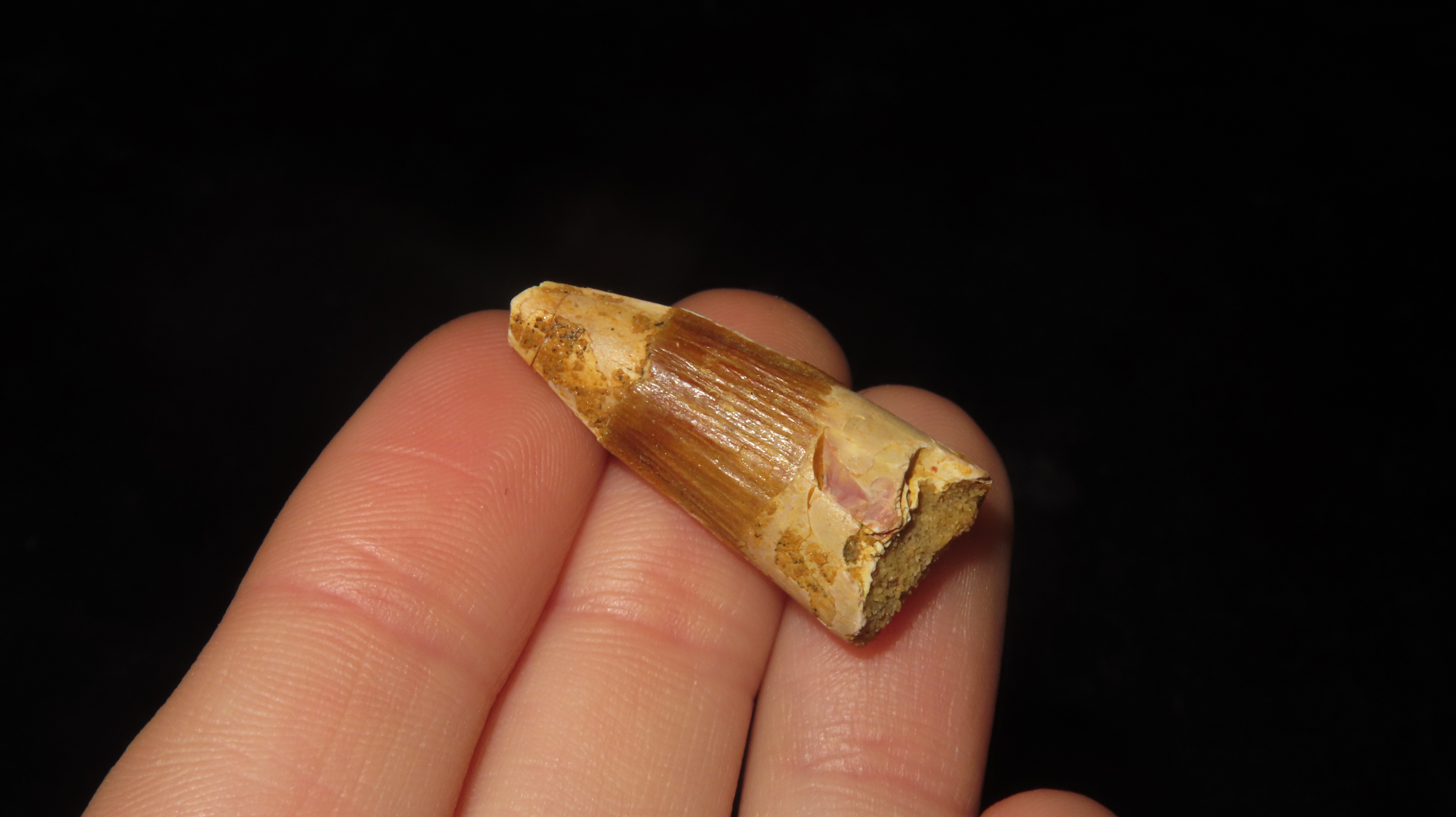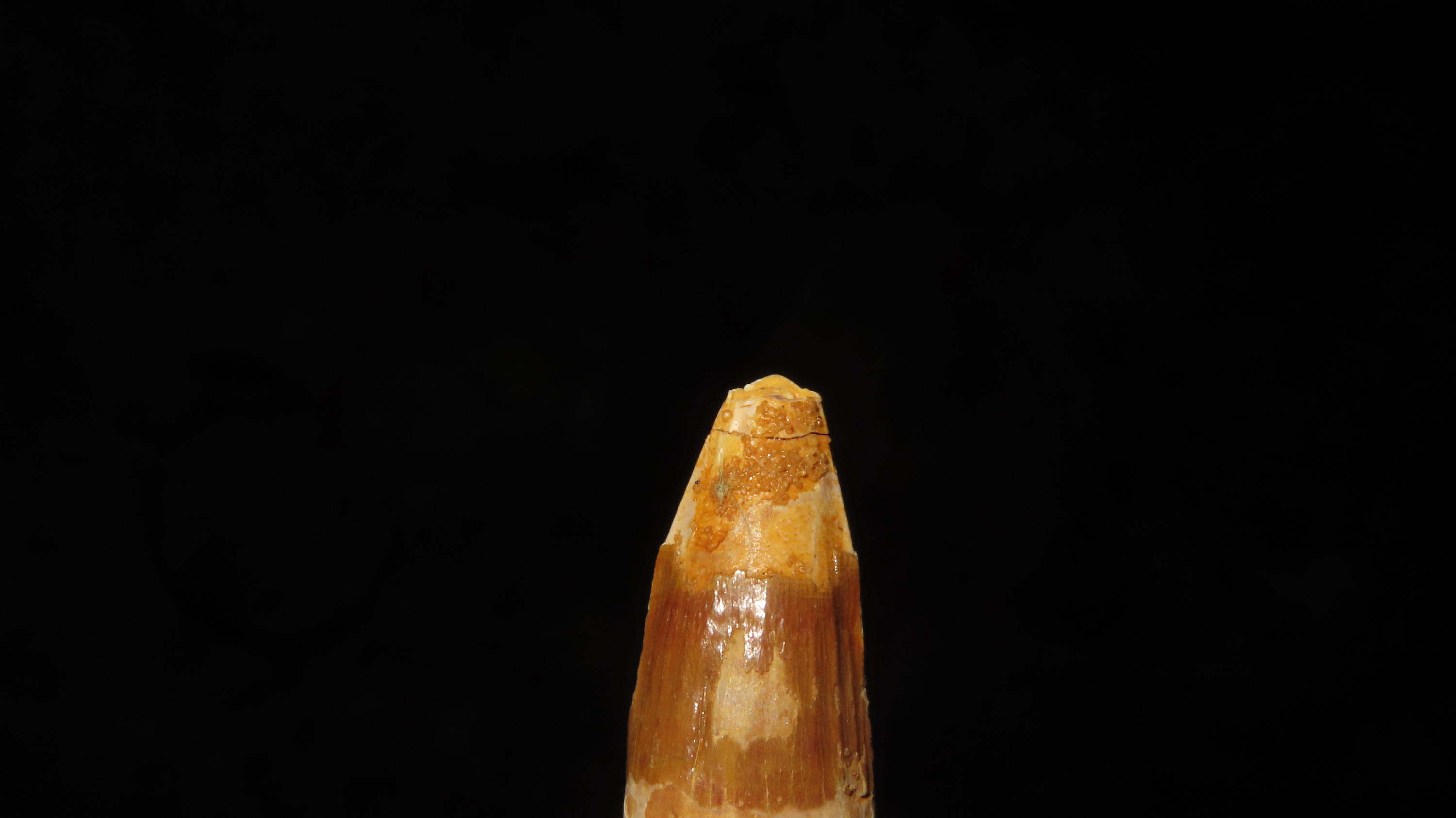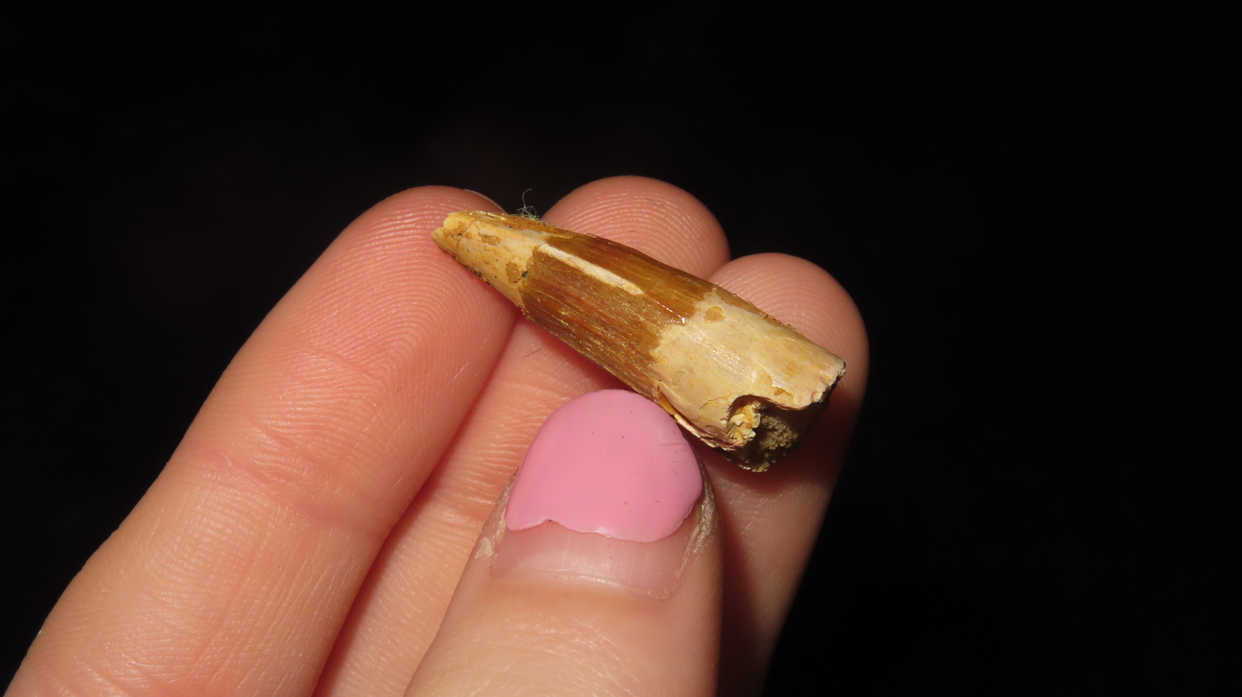 Fossil Spinosaurus Tooth Dinosaur. Upper Cretaceous Period. Prehistoric. Found in Egypt. 112 MYO – 72 MYO.