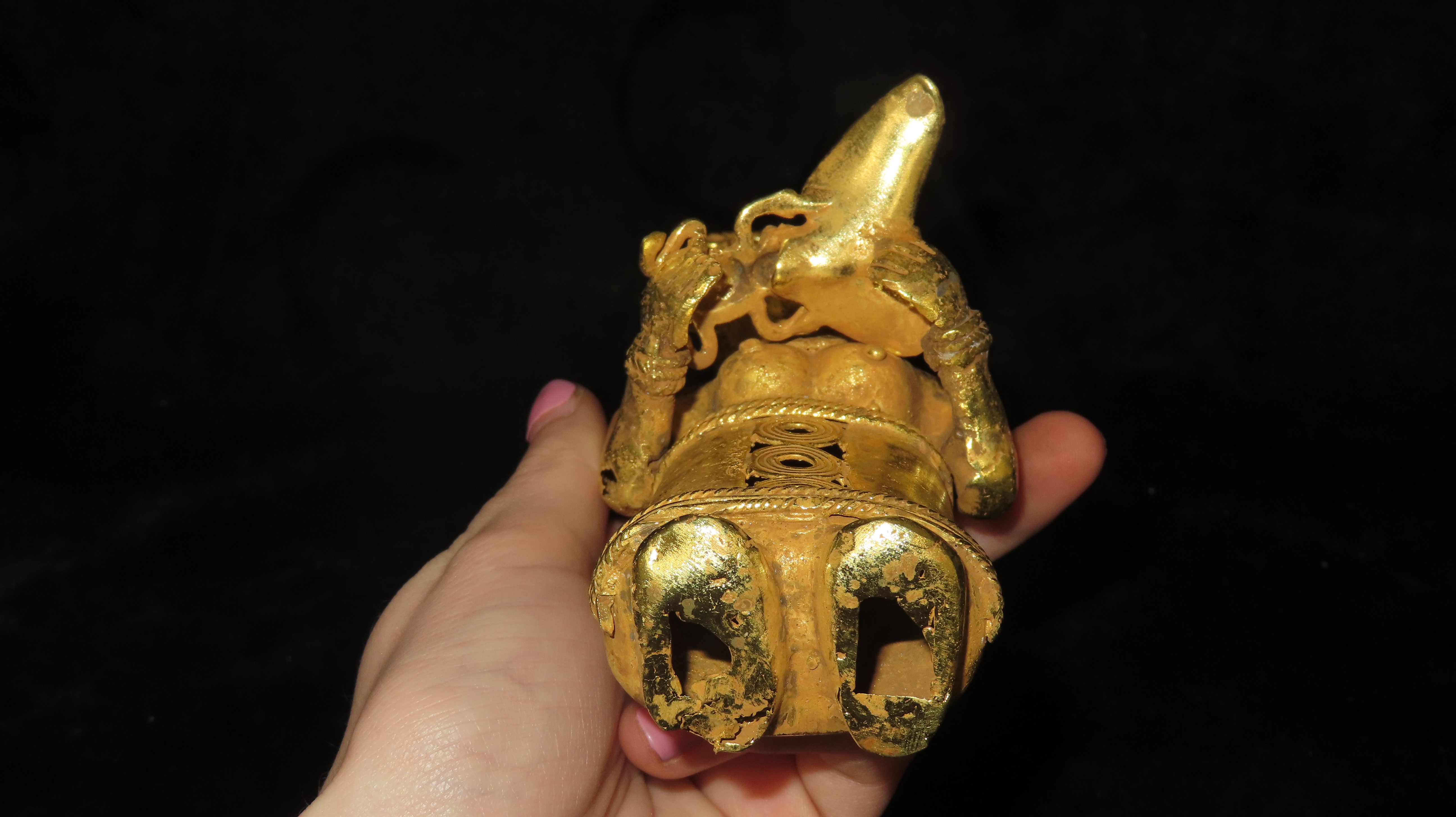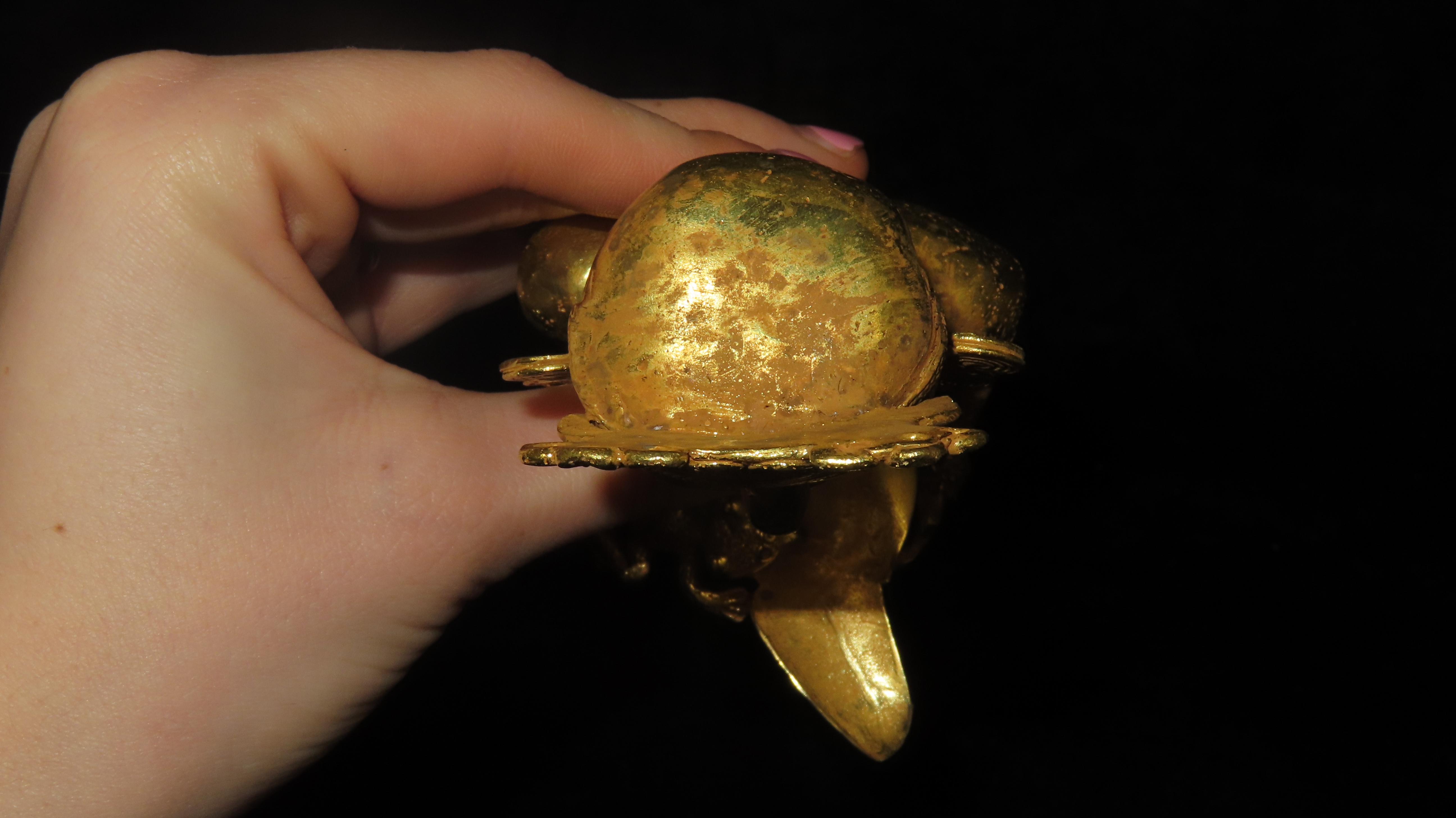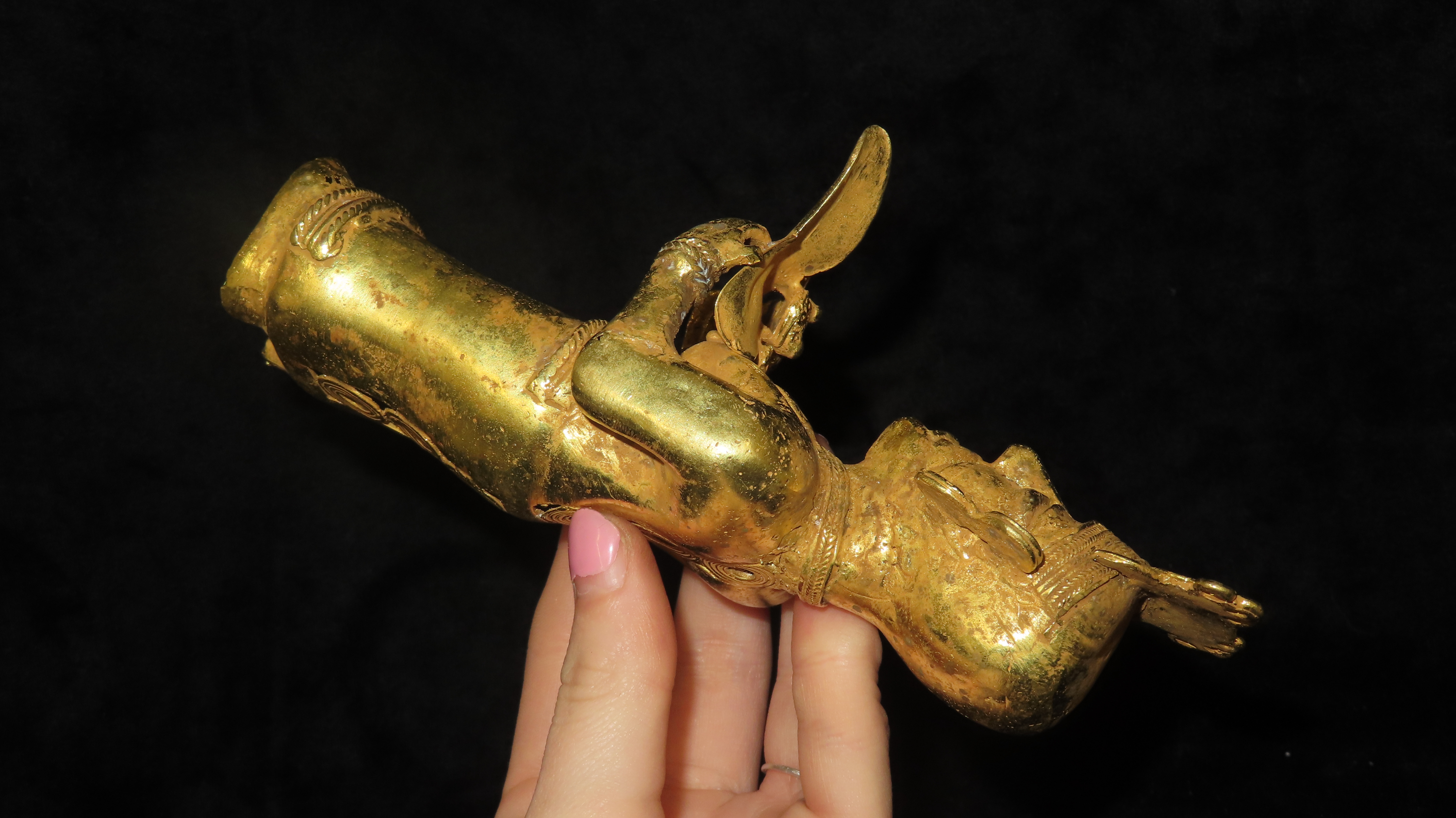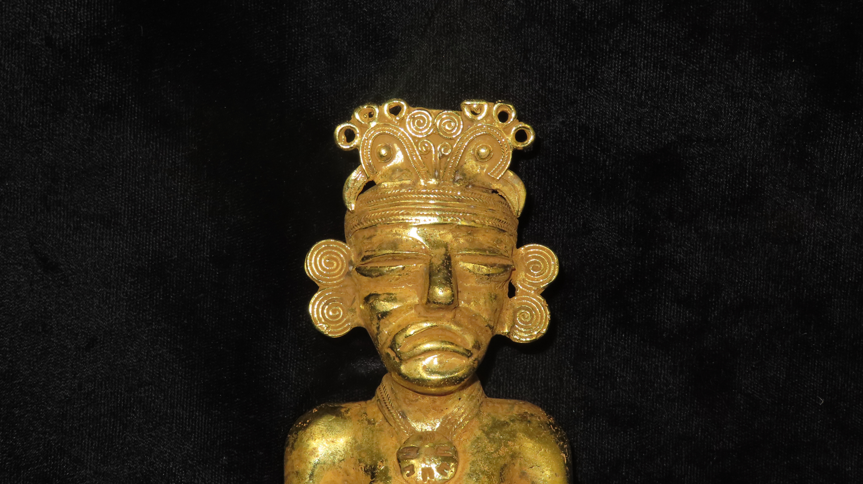 6 3/8″ x 2 1/2″ Pre-Columbian Tumbaga Offering Idol. Gold and Copper Mixture. Columbia. COA Motley and Leithoff. Exact Gold Contents Unknown.