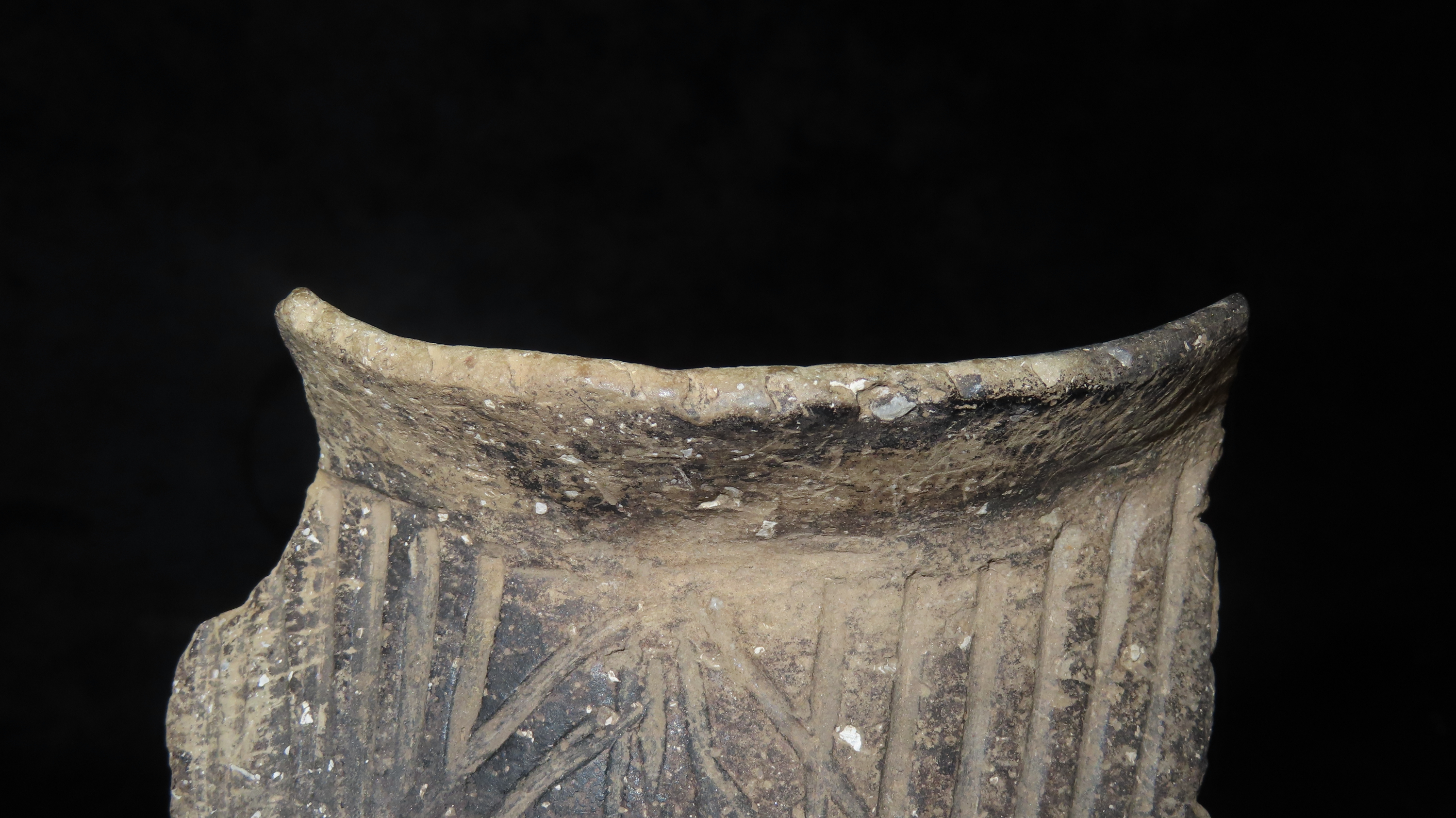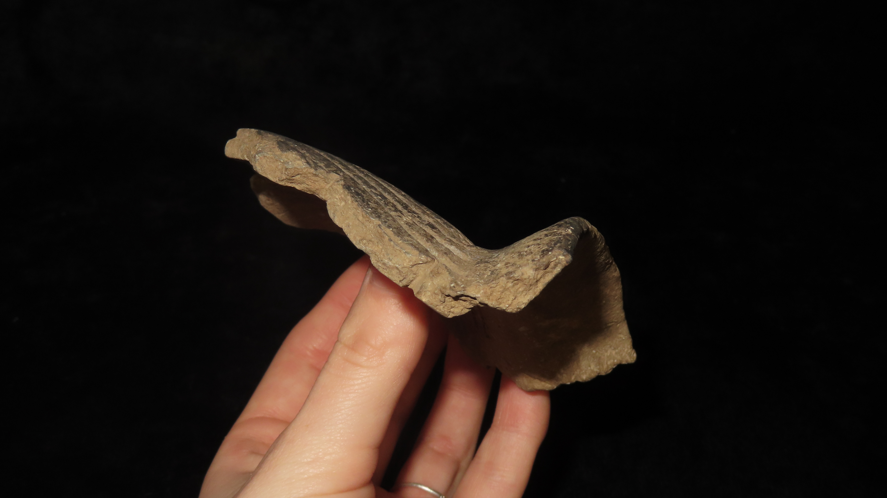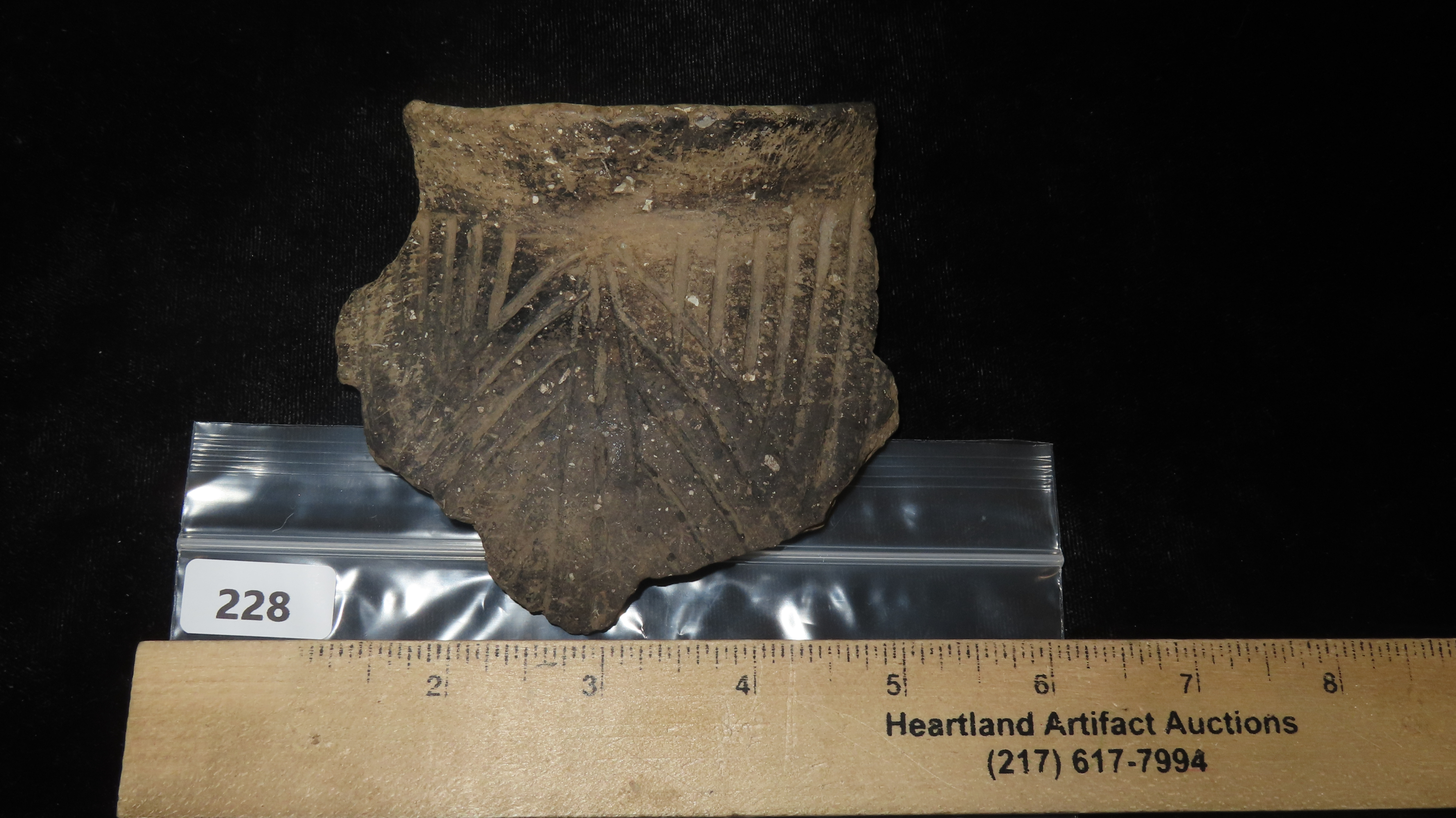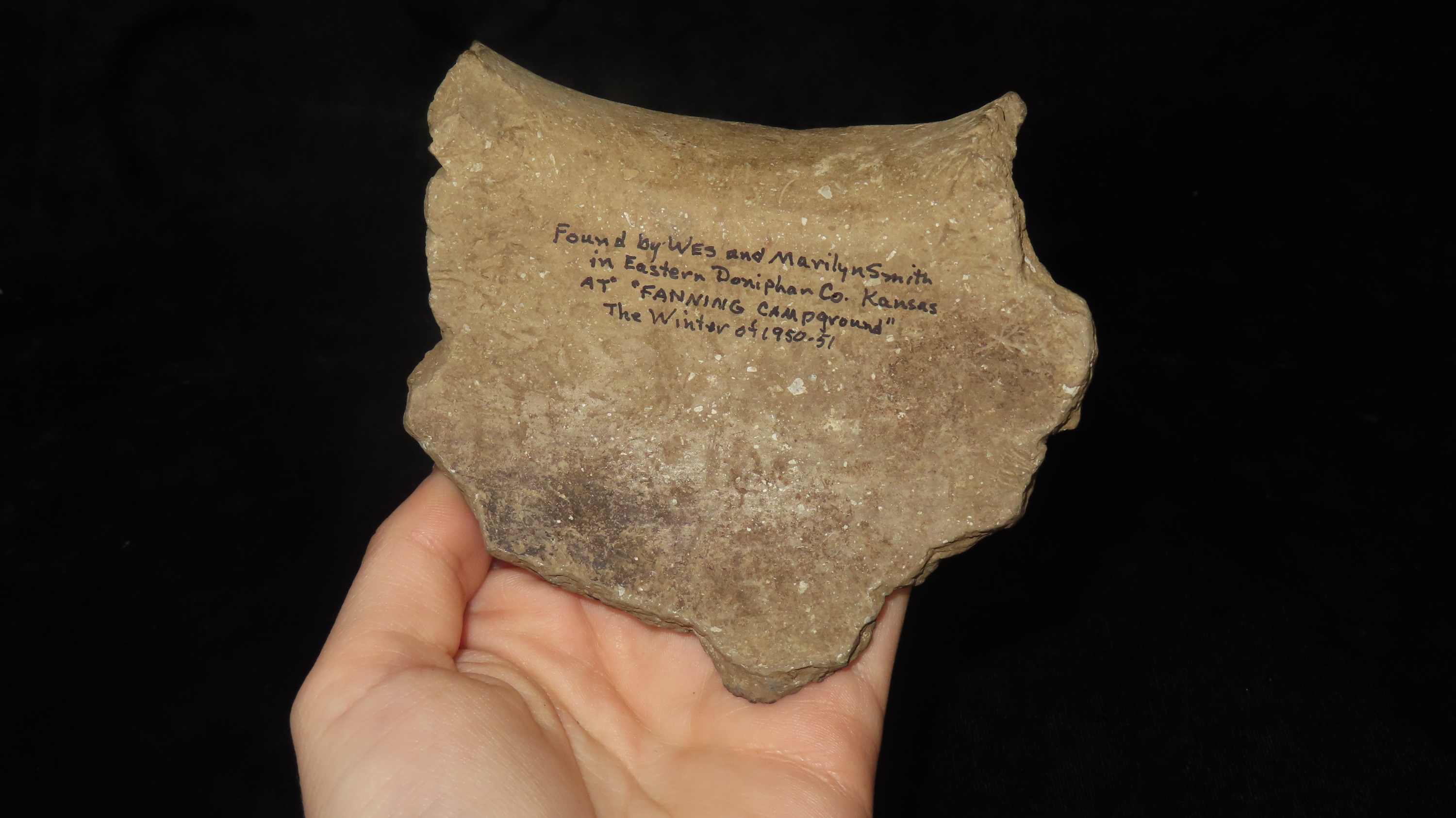 3 5/8″ x 3 3/4″ Large Pottery Shard, Found by Wes and Marilyn Smith in Eastern Doniphan Co. Kansas at Fanning Campground in the Winter of 1950-51